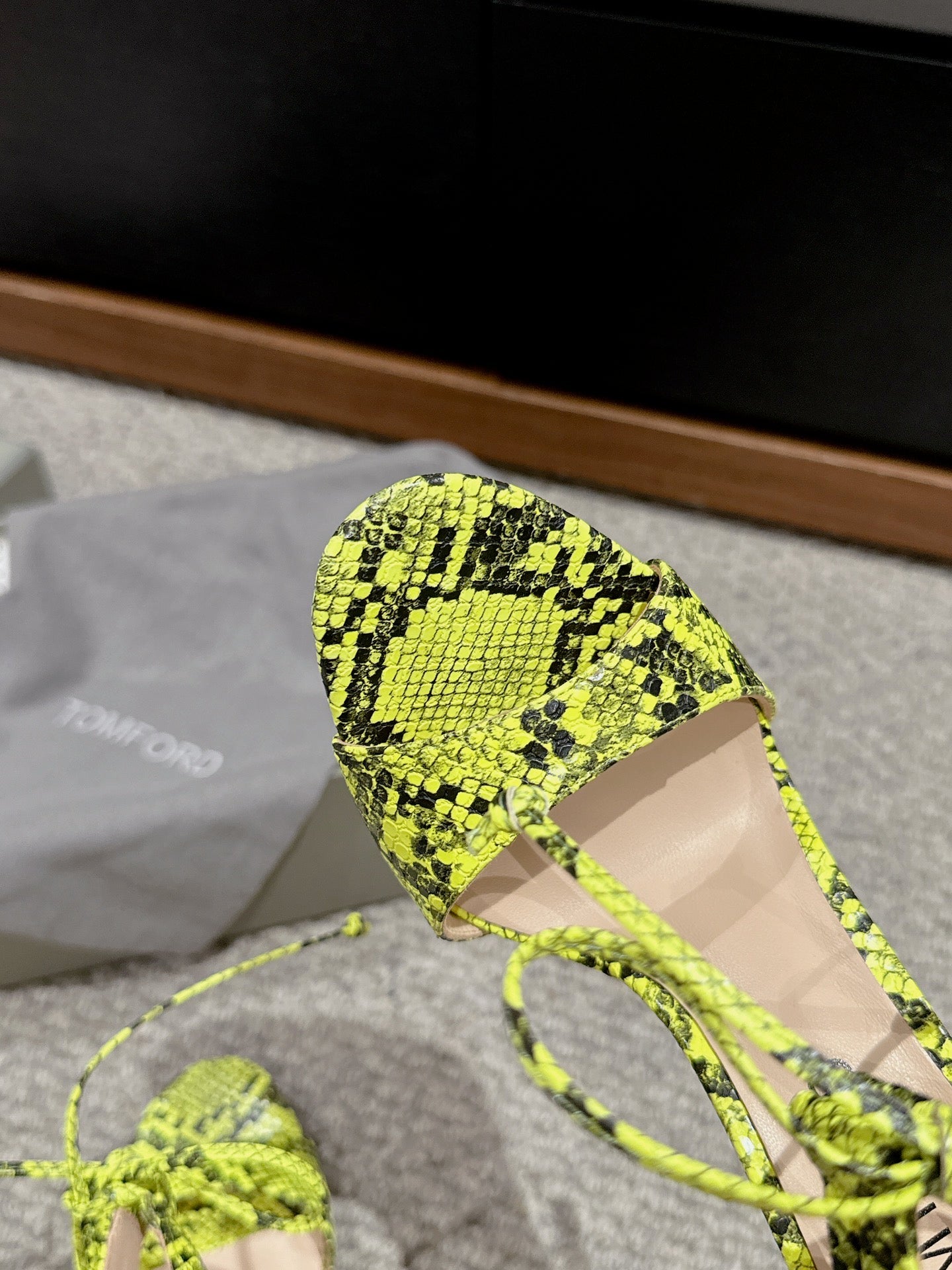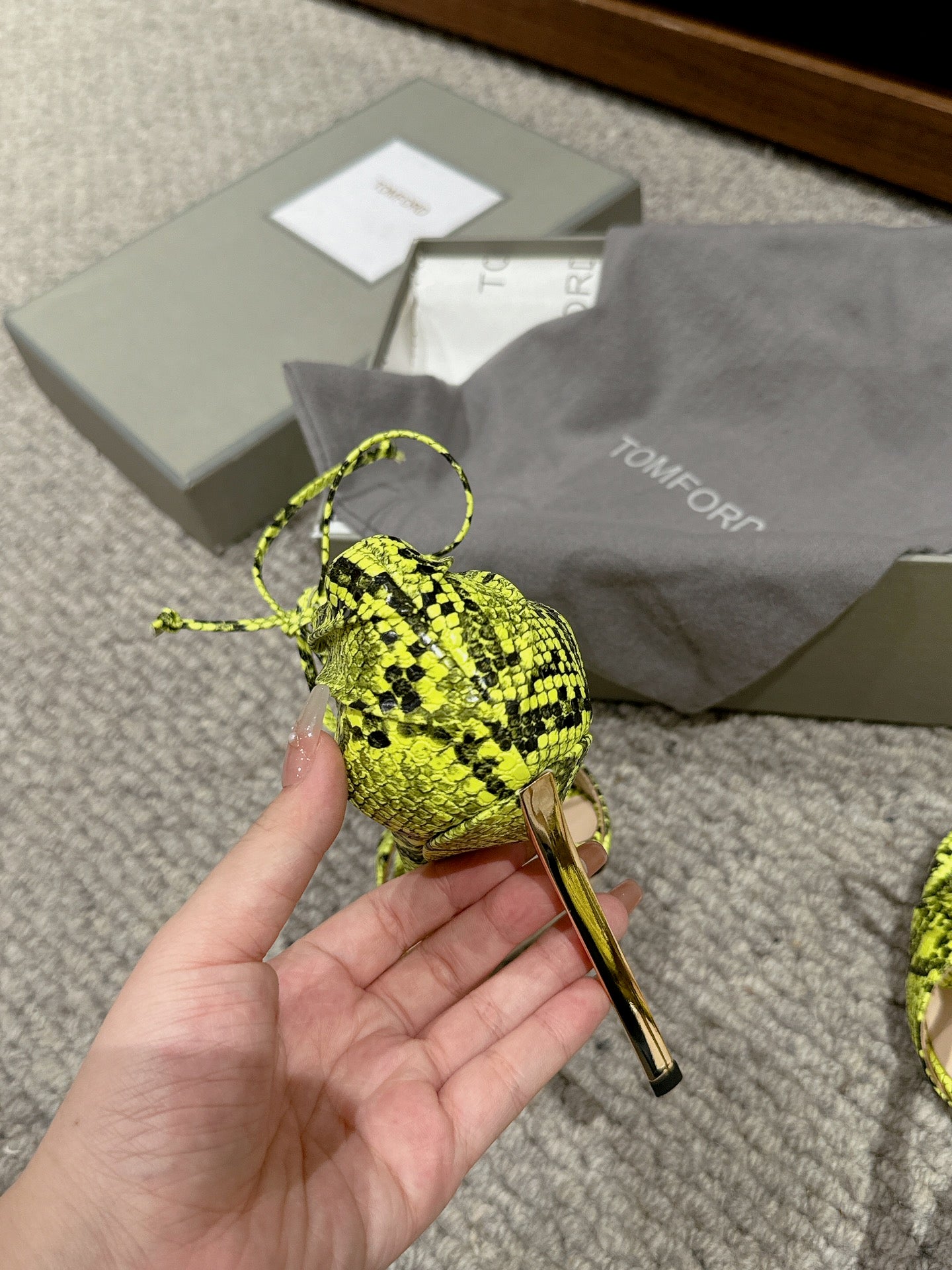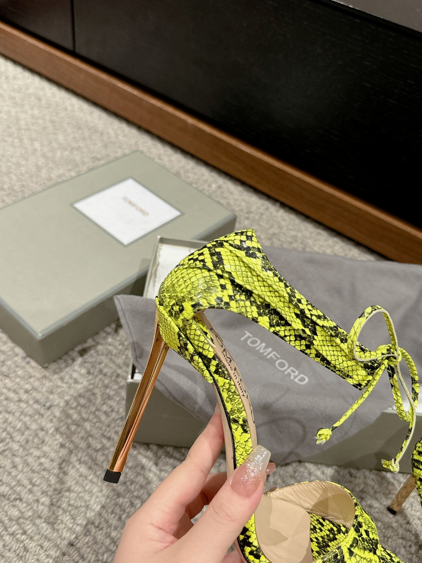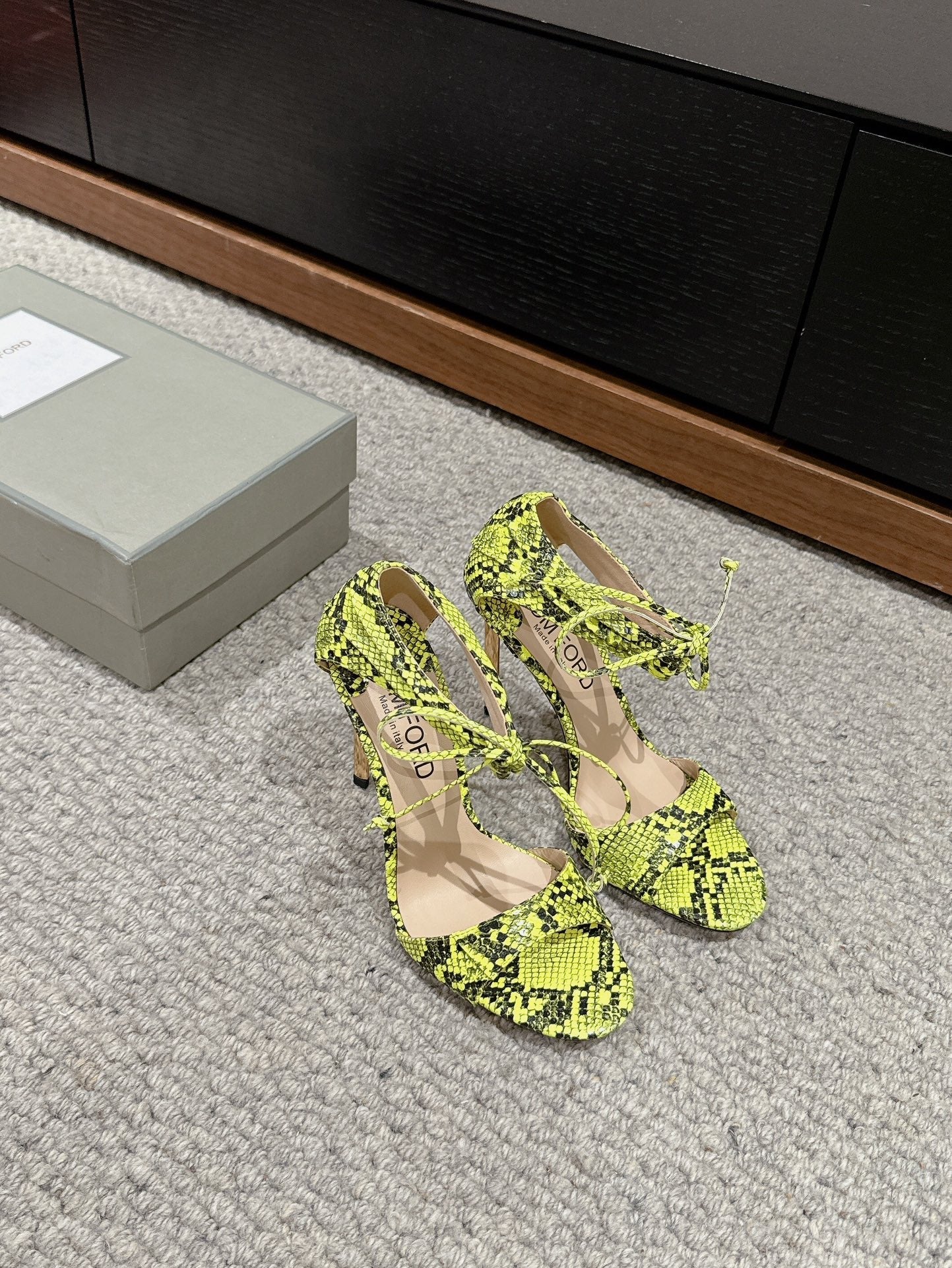 HIGH HEEL 10 CM SANDAL IN NEON YELLOW MIX BLACK CALFSKIN 684356