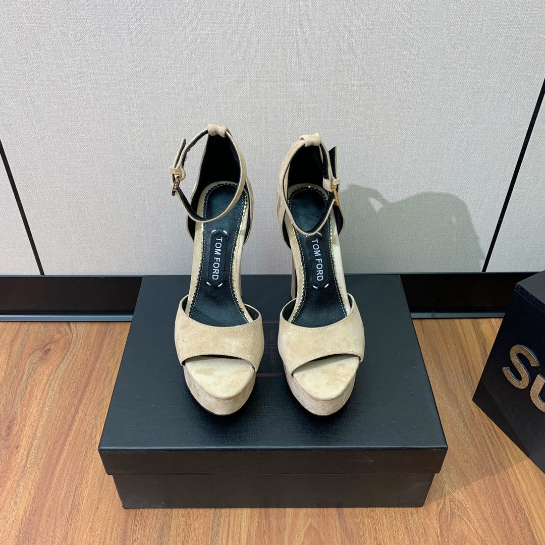 HIGH HEEL 14.5 CM SANDALS IN TORTILLA BROWN SUEDE