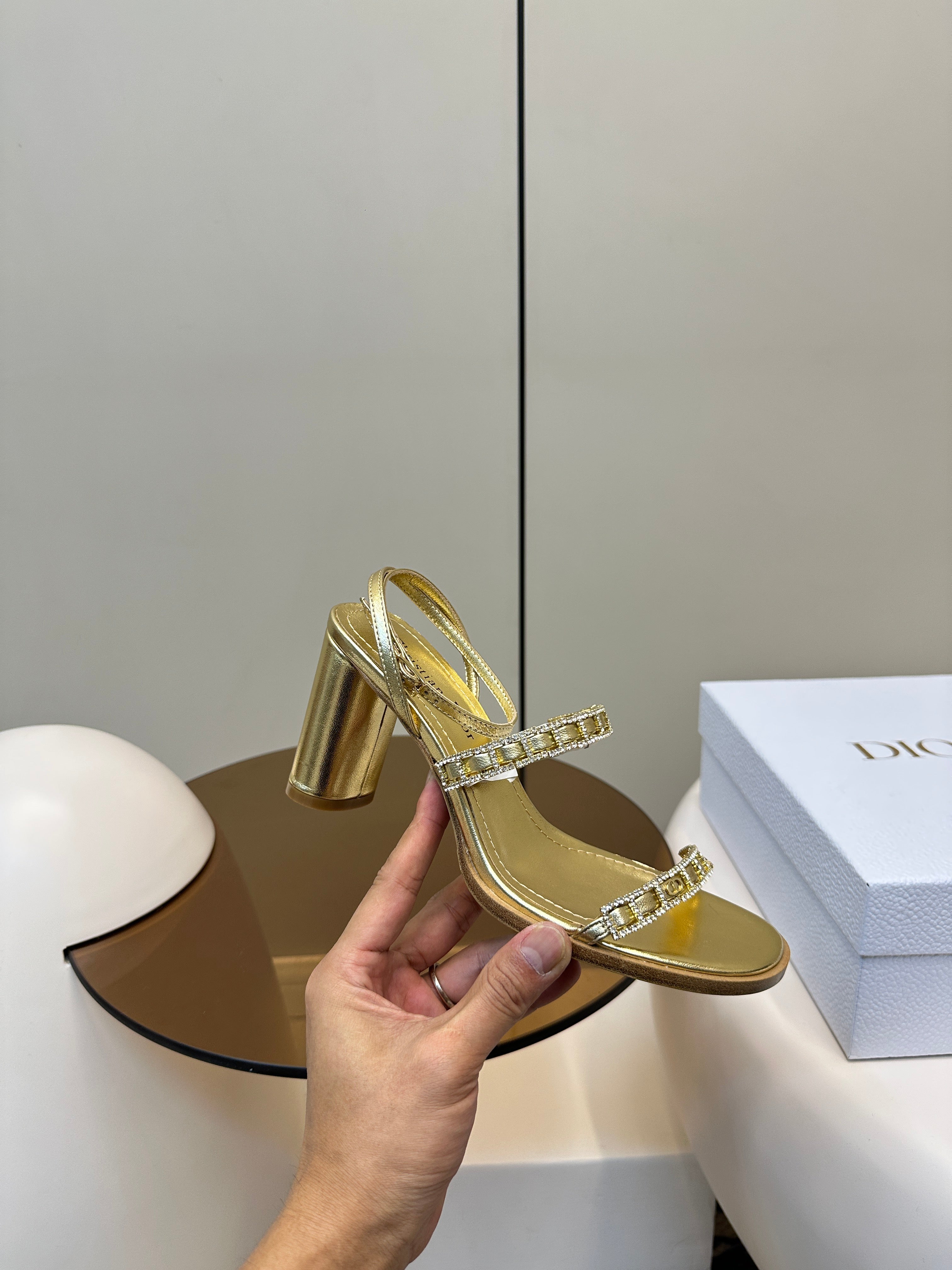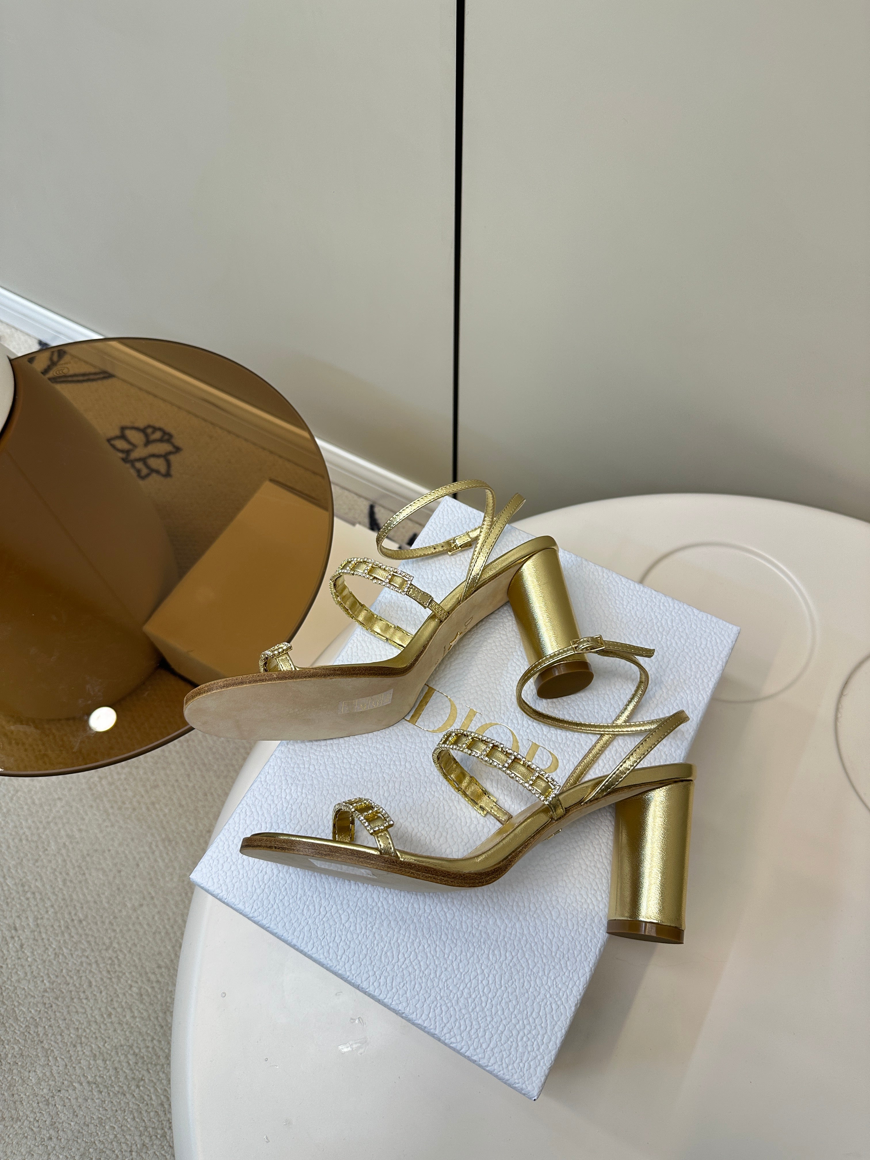 HIGH HEEL 25S SANDALS 85MM IN SHINY GOLD CALFSKIN RHINESTONES STRAP