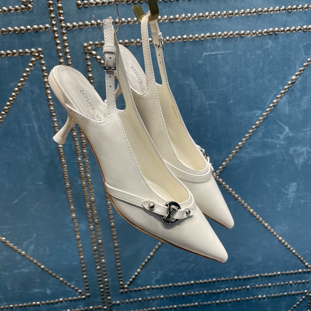 HIGH HEEL 55 MM SLINGBACKS IN WHITE SHEEPSKIN