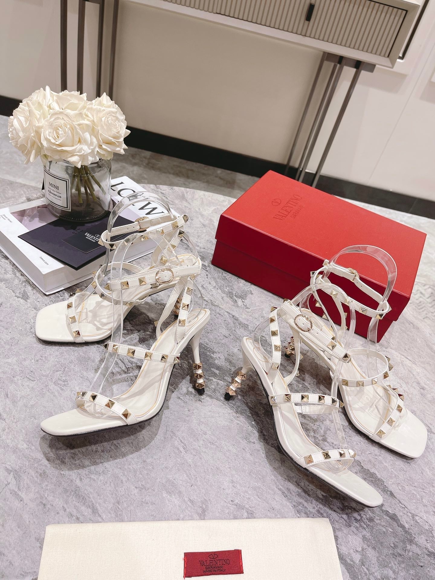HIGH HEEL 6 CM SANDAL IN WHITE LAMBSKIN WITH STUDS