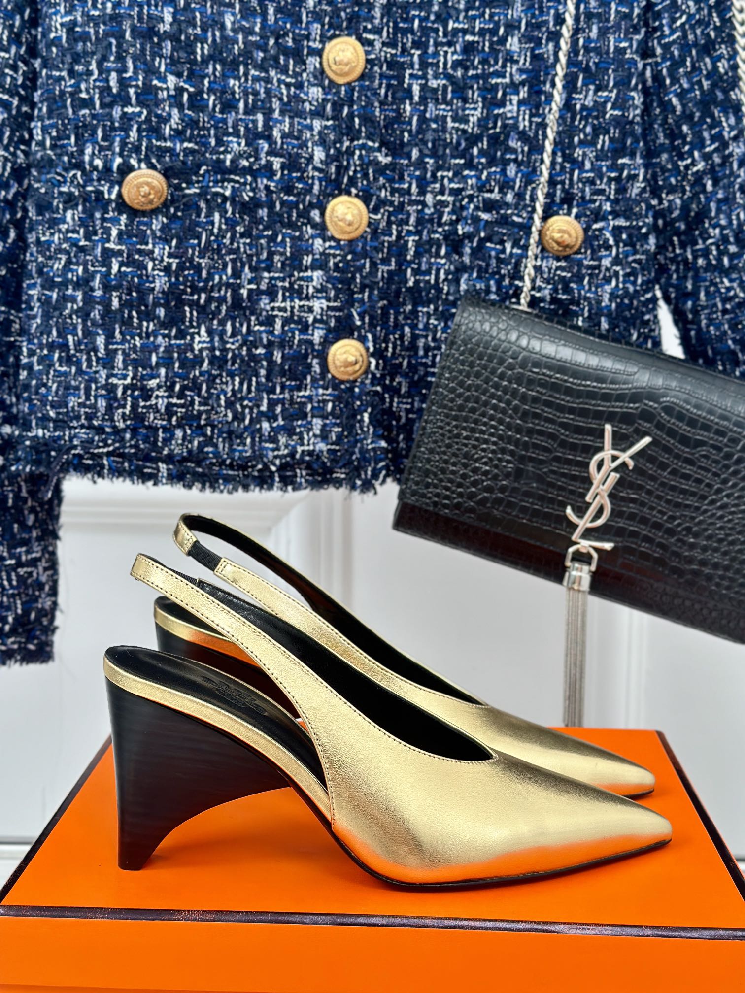 HIGH HEEL 75 MM POINTED- TOE SANDAL IN GOLD CALFSKIN
