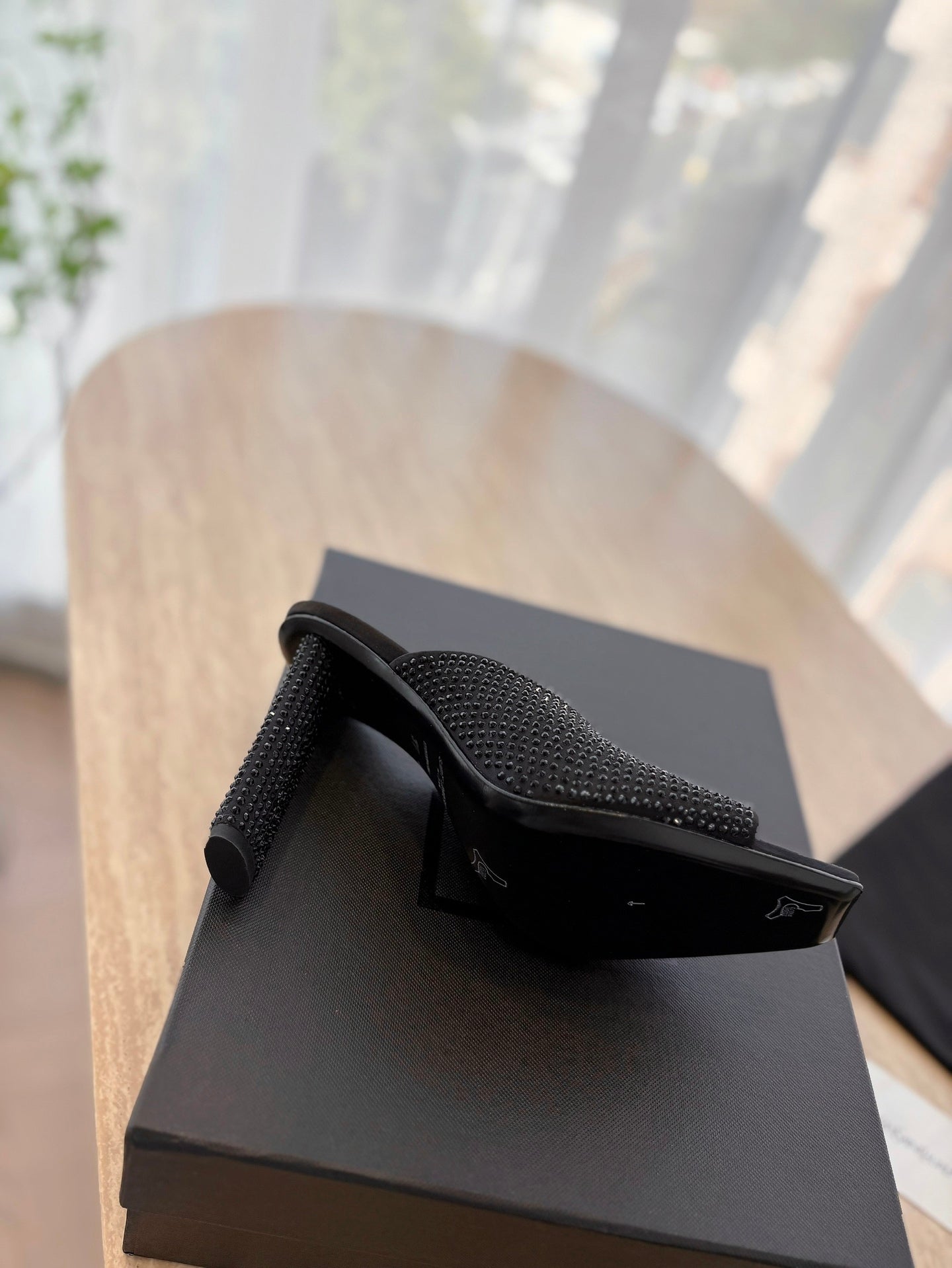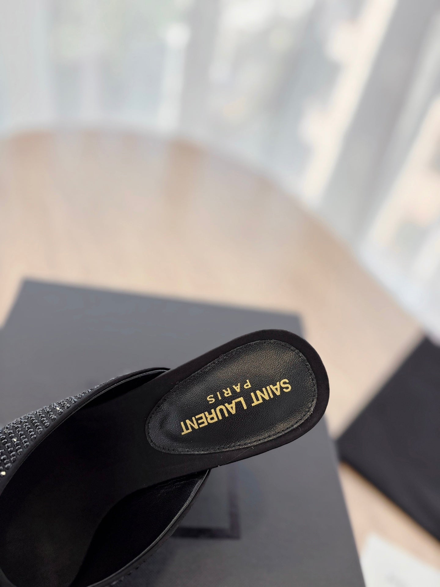HIGH HEEL BLONDE MULE 10 CM IN BLACK SATIN WITH RHINESTONES