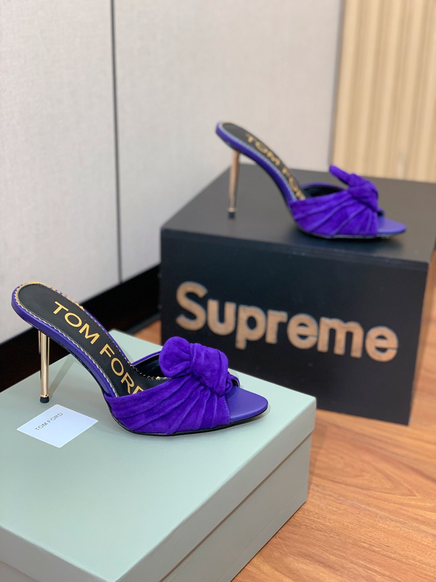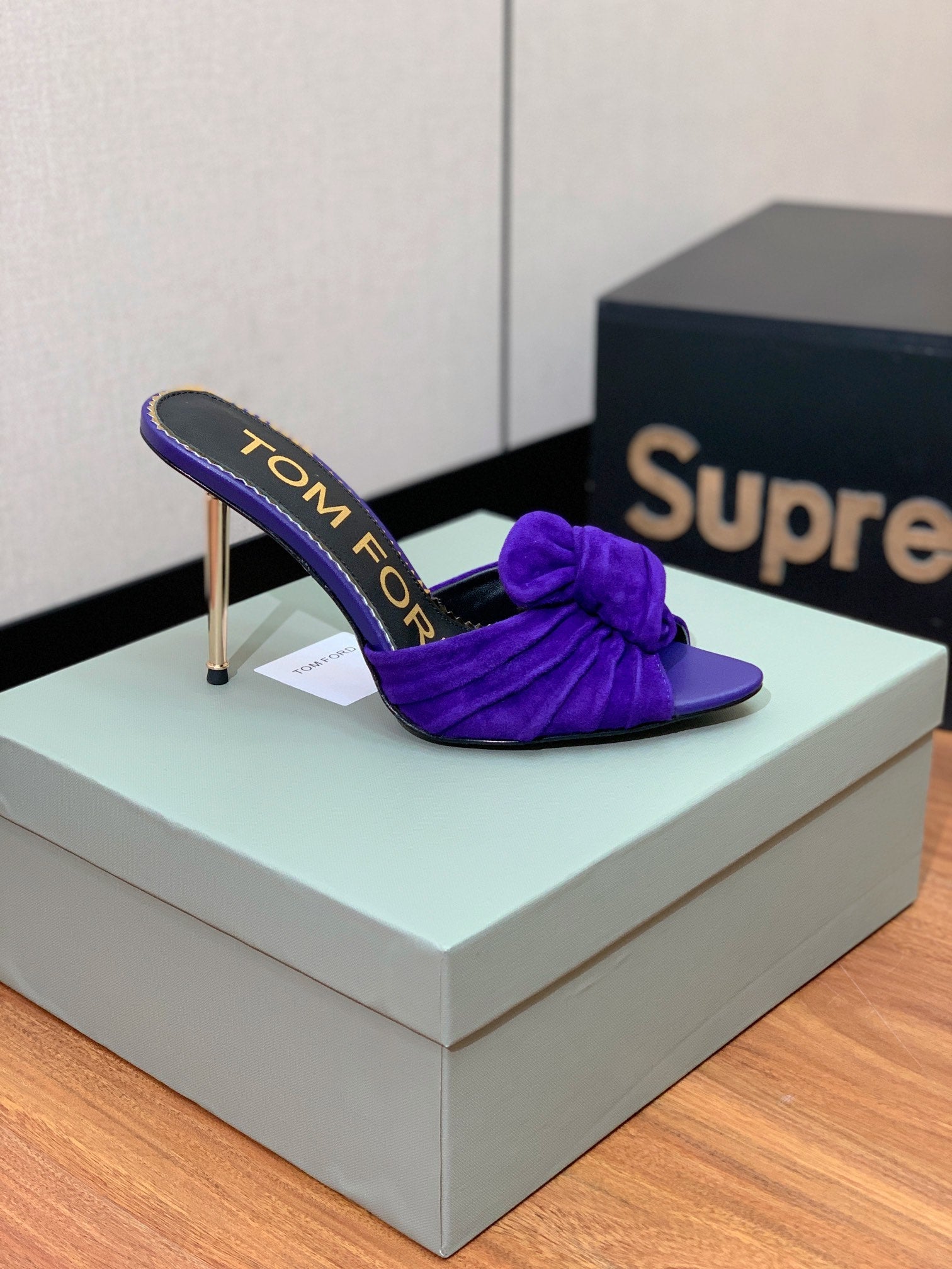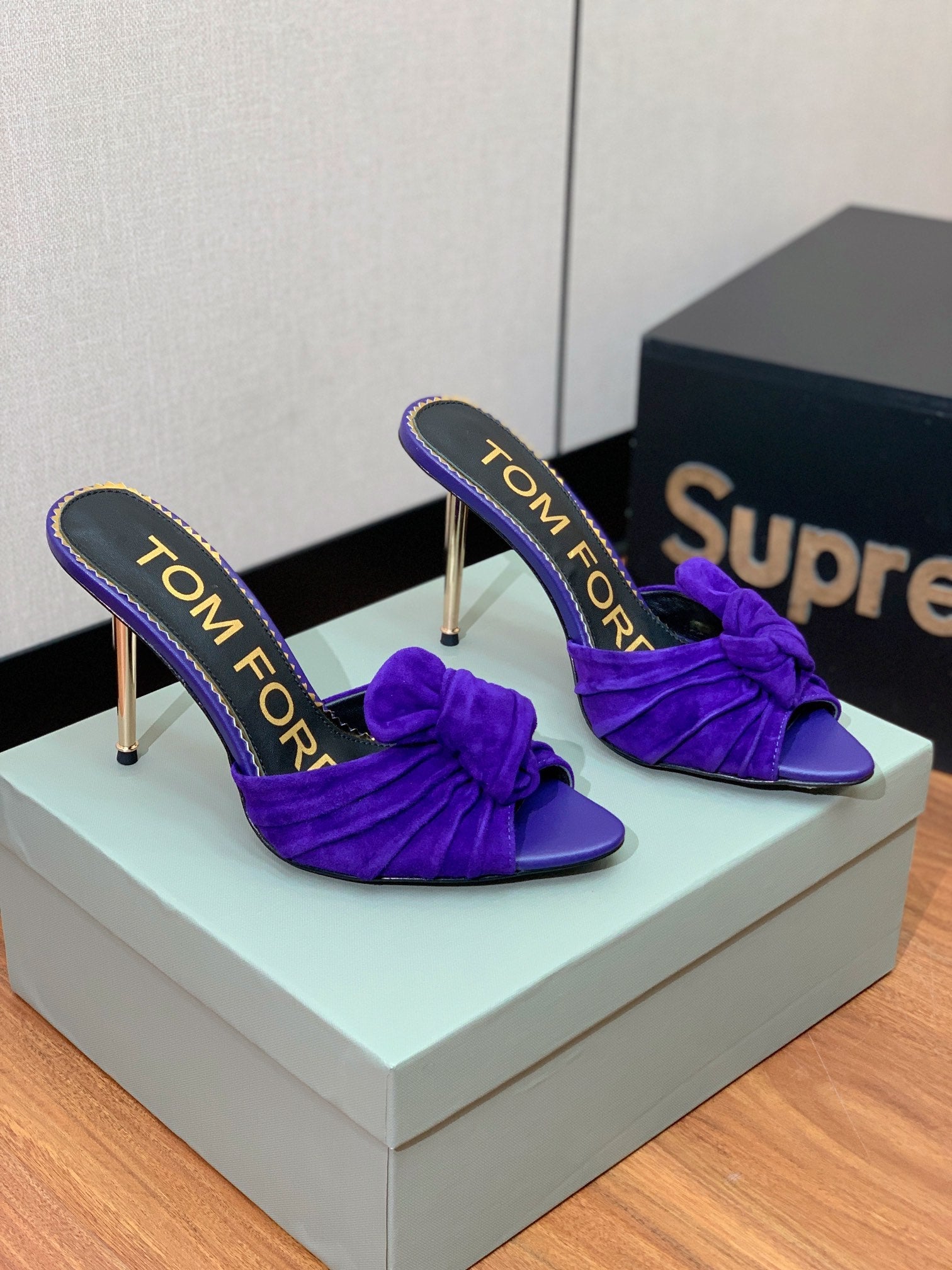 HIGH HEEL MULE 10 CM IN INDIGO PURPLE SUEDE
