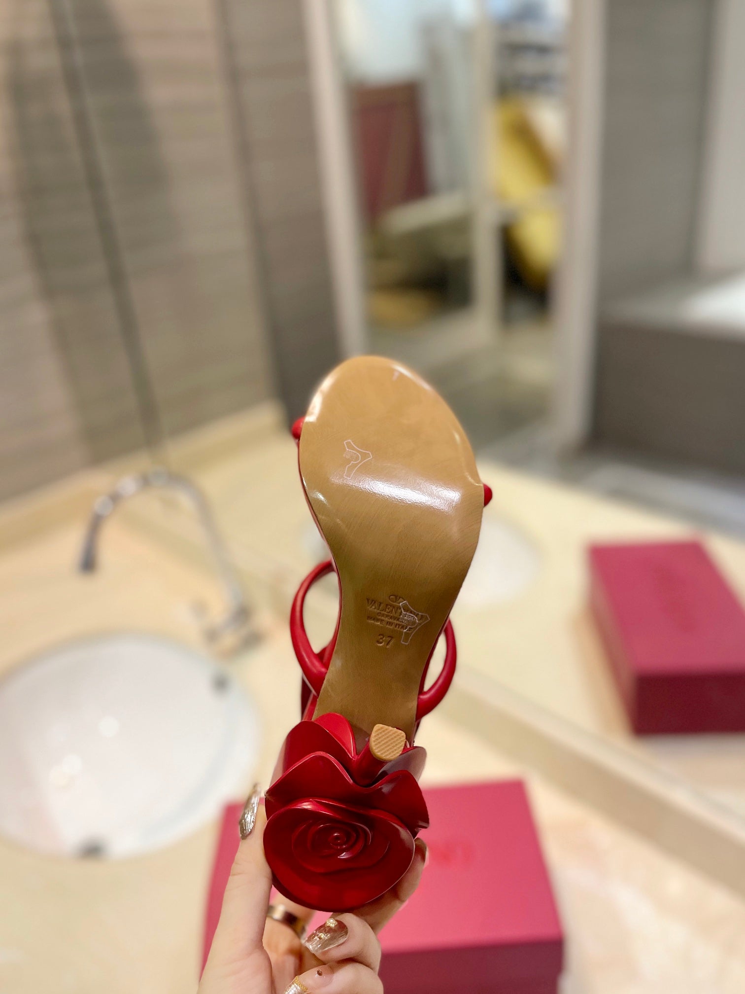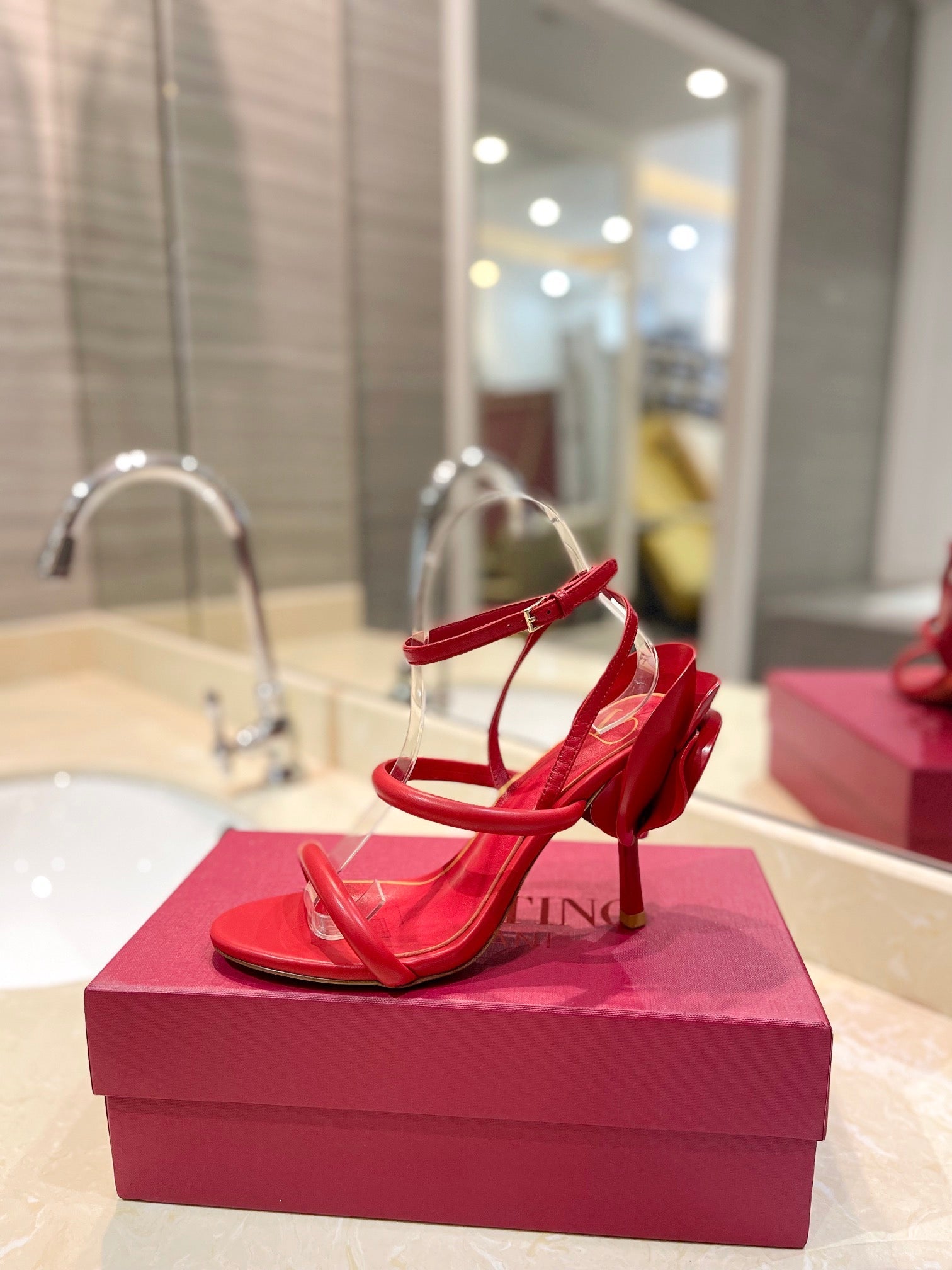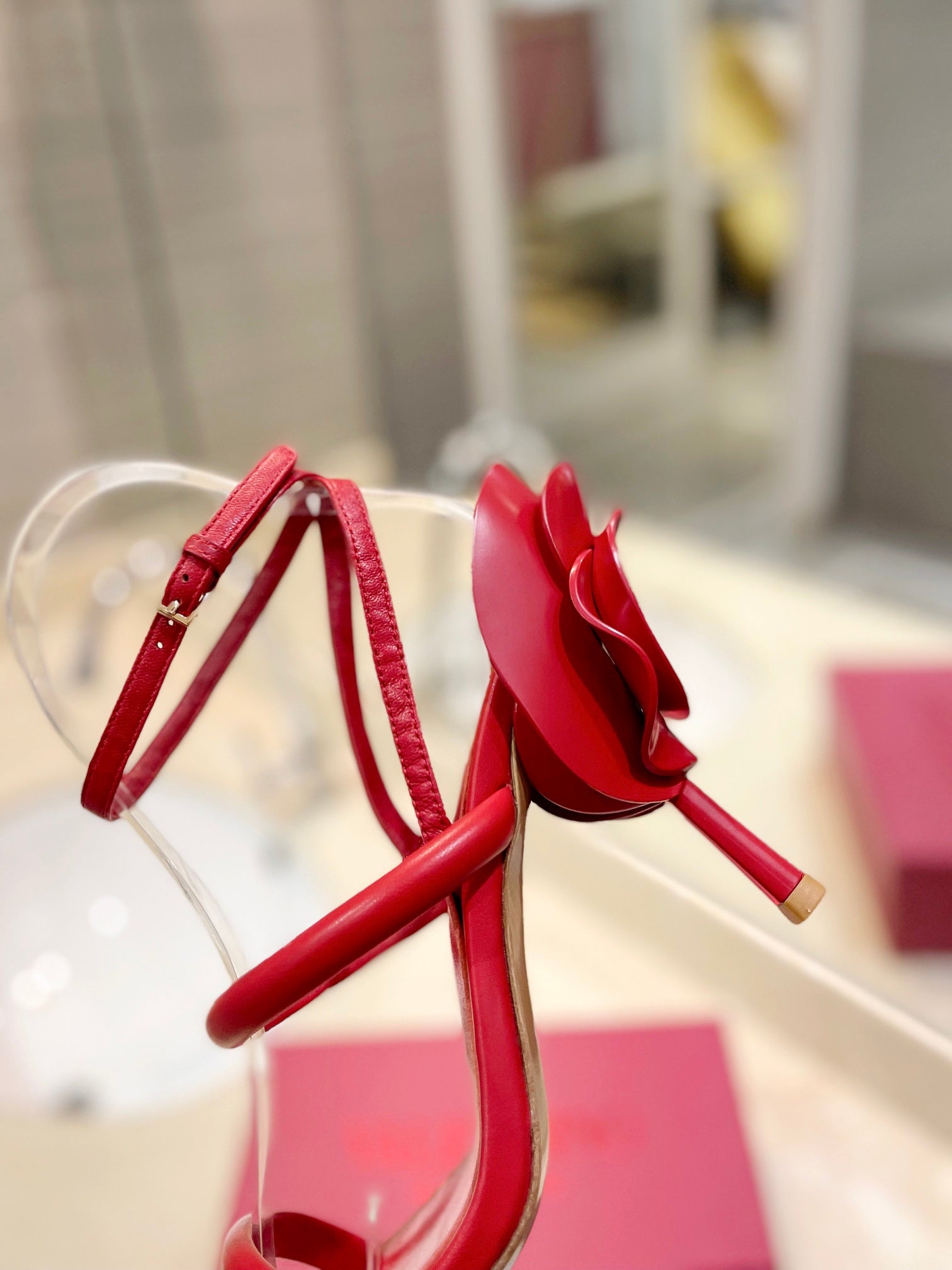 HIGH HEEL SANDAL 10 CM IN CHERRY RED CALFSKIN