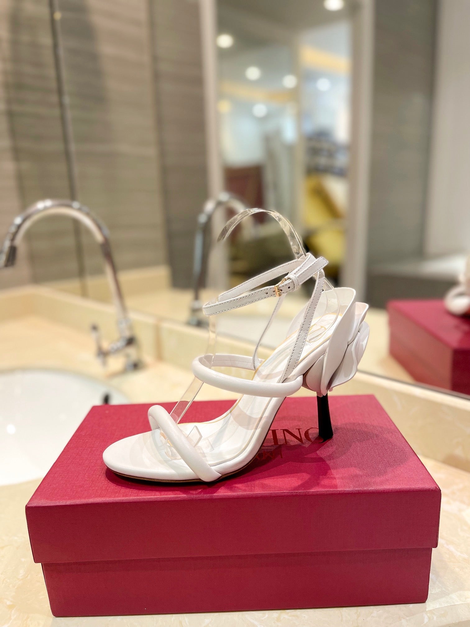 HIGH HEEL SANDAL 10 CM IN WHITE CALFSKIN
