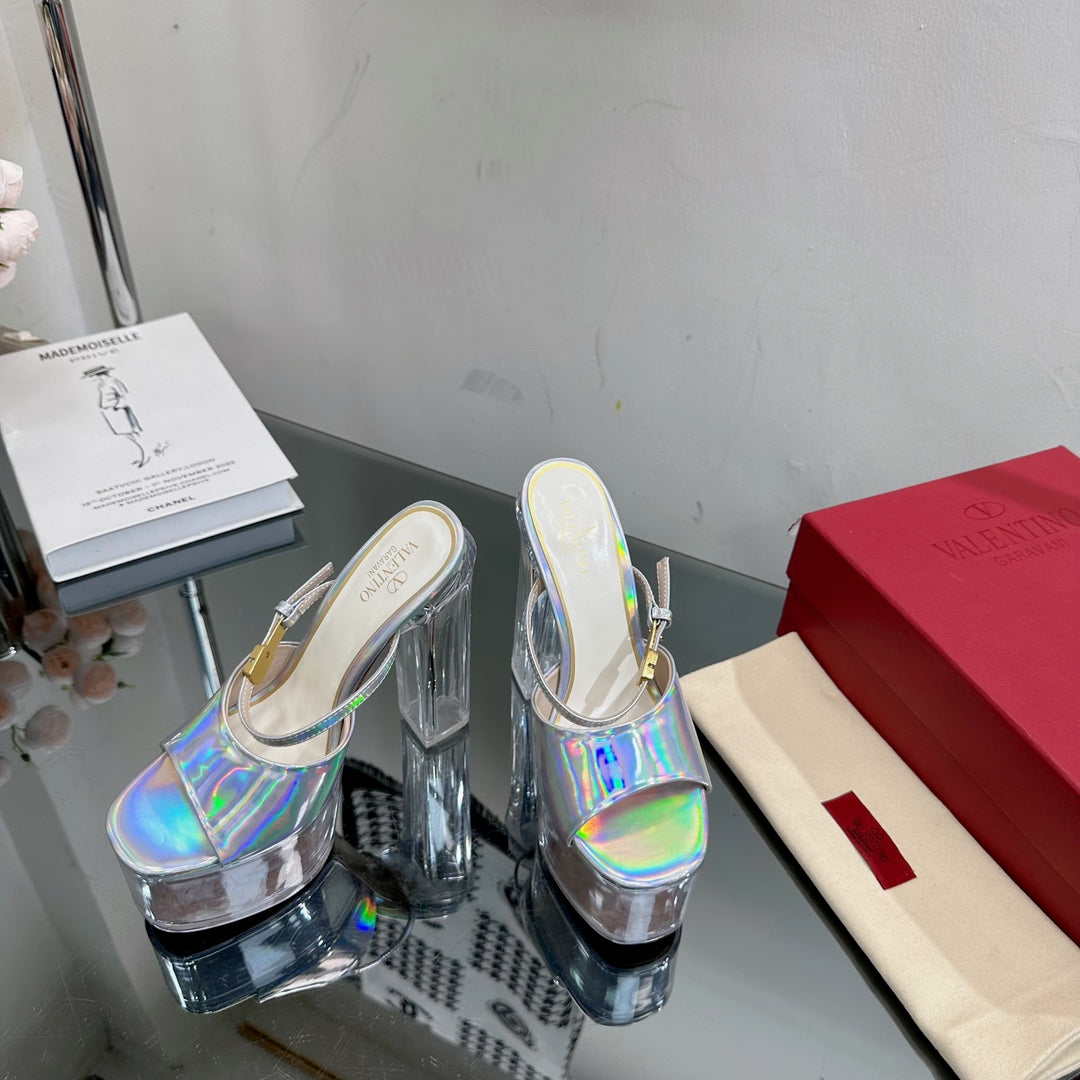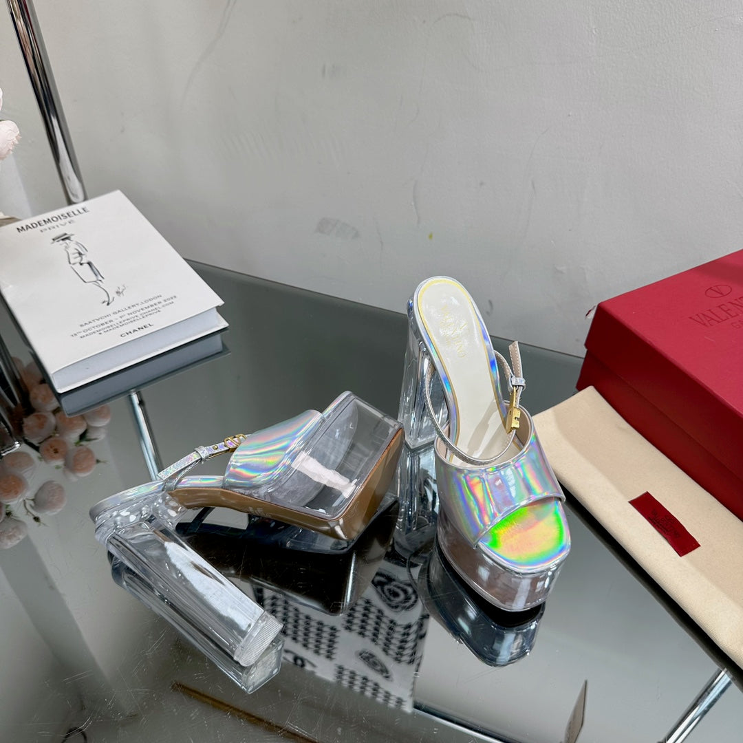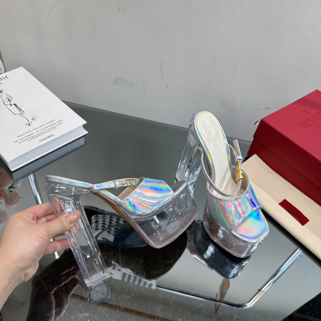 HIGH HEEL SANDAL 14CM IN SILVER CALFSKIN AND TRANSPARENT PVC