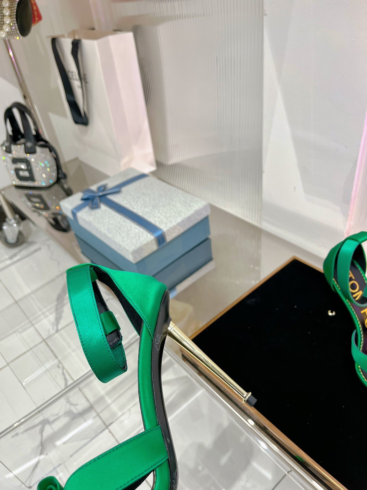 HIGH HEELS 11 CM IN COOL GREEN PURE SILK AND LAMBSKIN
