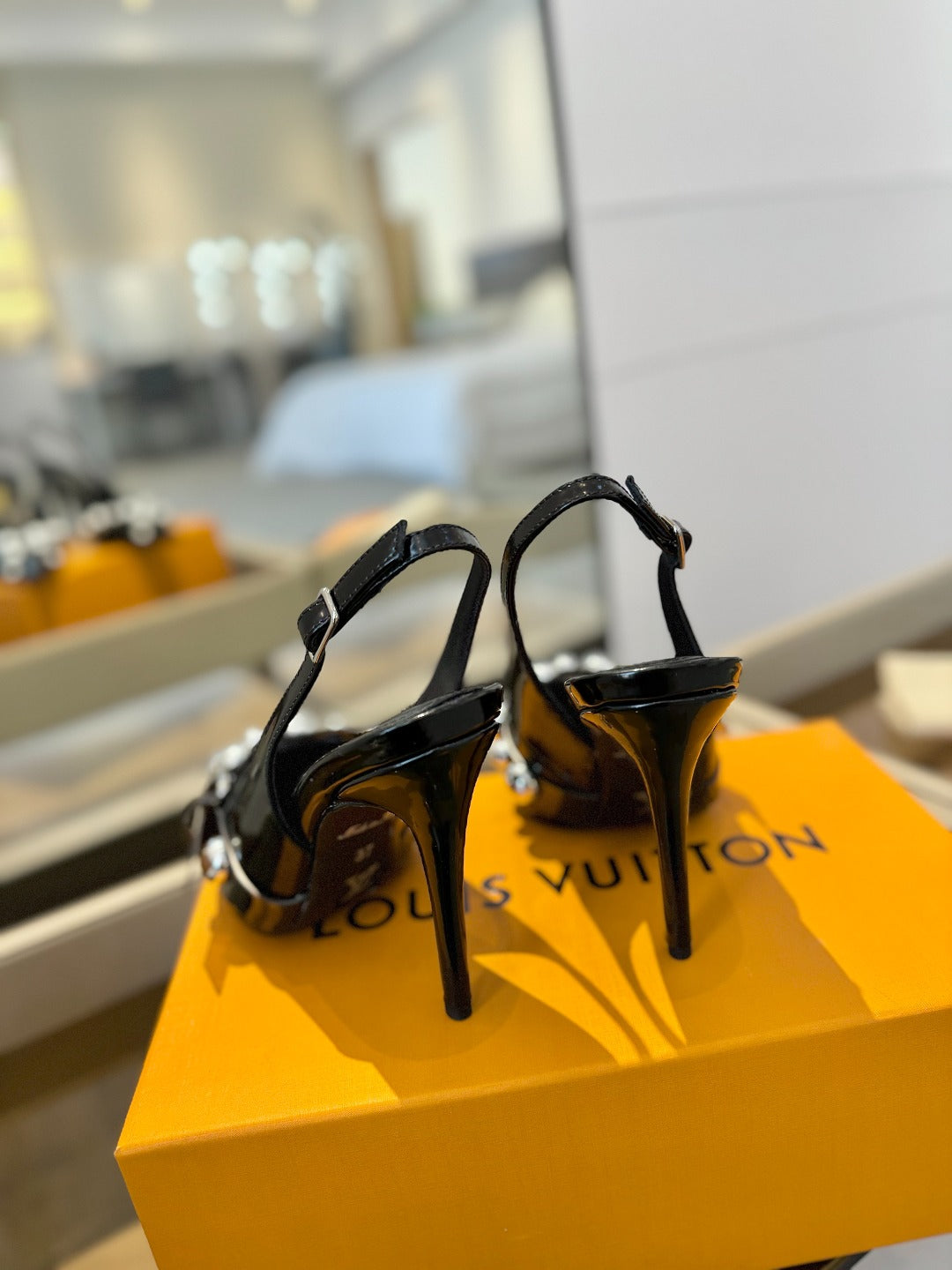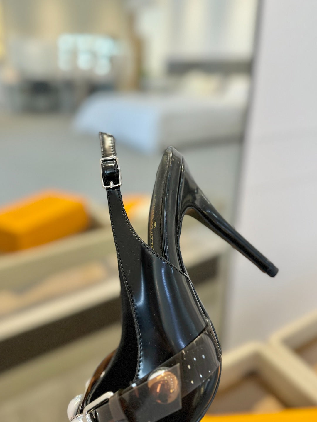 HIGH HEELS 95 MM IN BLACK PATENT CALFSKIN WITH CRYSTALS