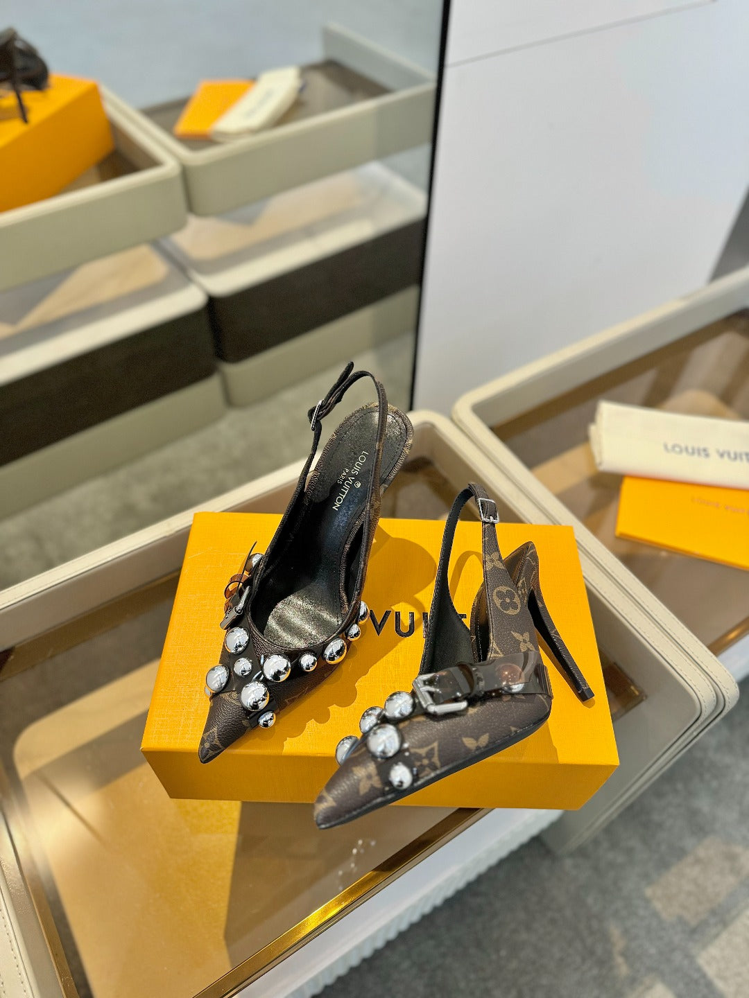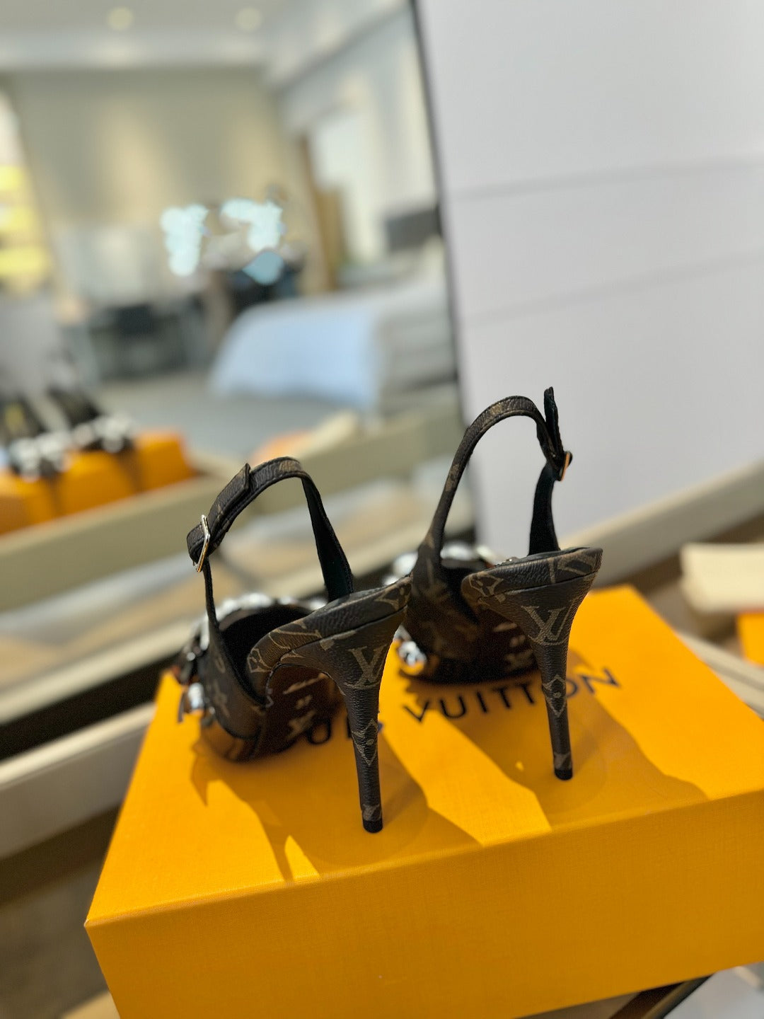 HIGH HEELS 95 MM IN CHOCOLATE BROWN MONOGRAM CALFSKIN WITH CRYSTALS