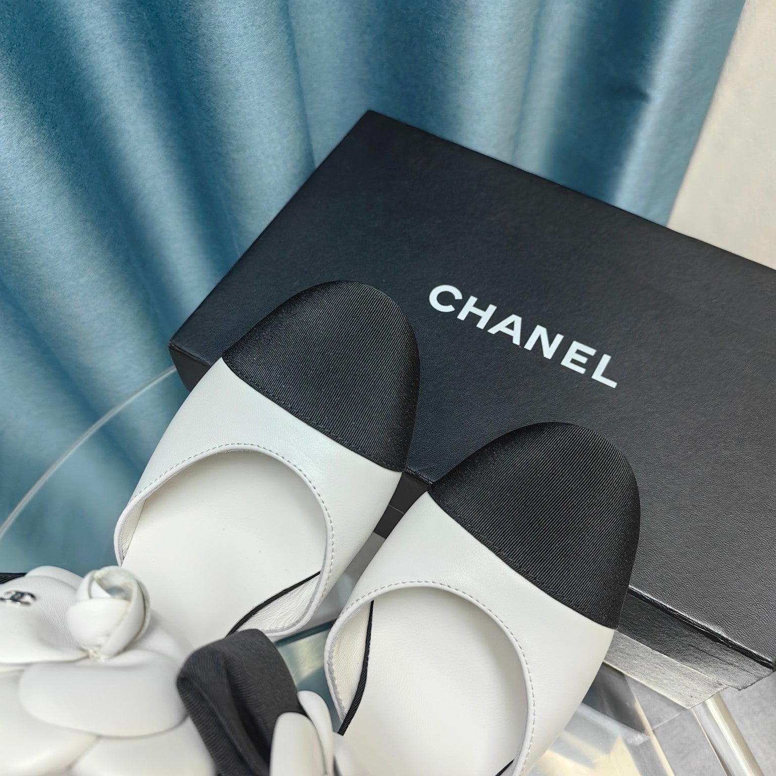 HIGH HEELS IN WHITE MIX BLACK SHEEPSKIN WITH FLOWER