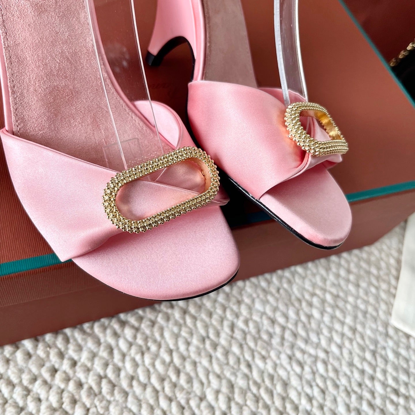 HIGH HEELS SANDALS 80 MM IN PASTEL PINK SATIN MIX SUEDE