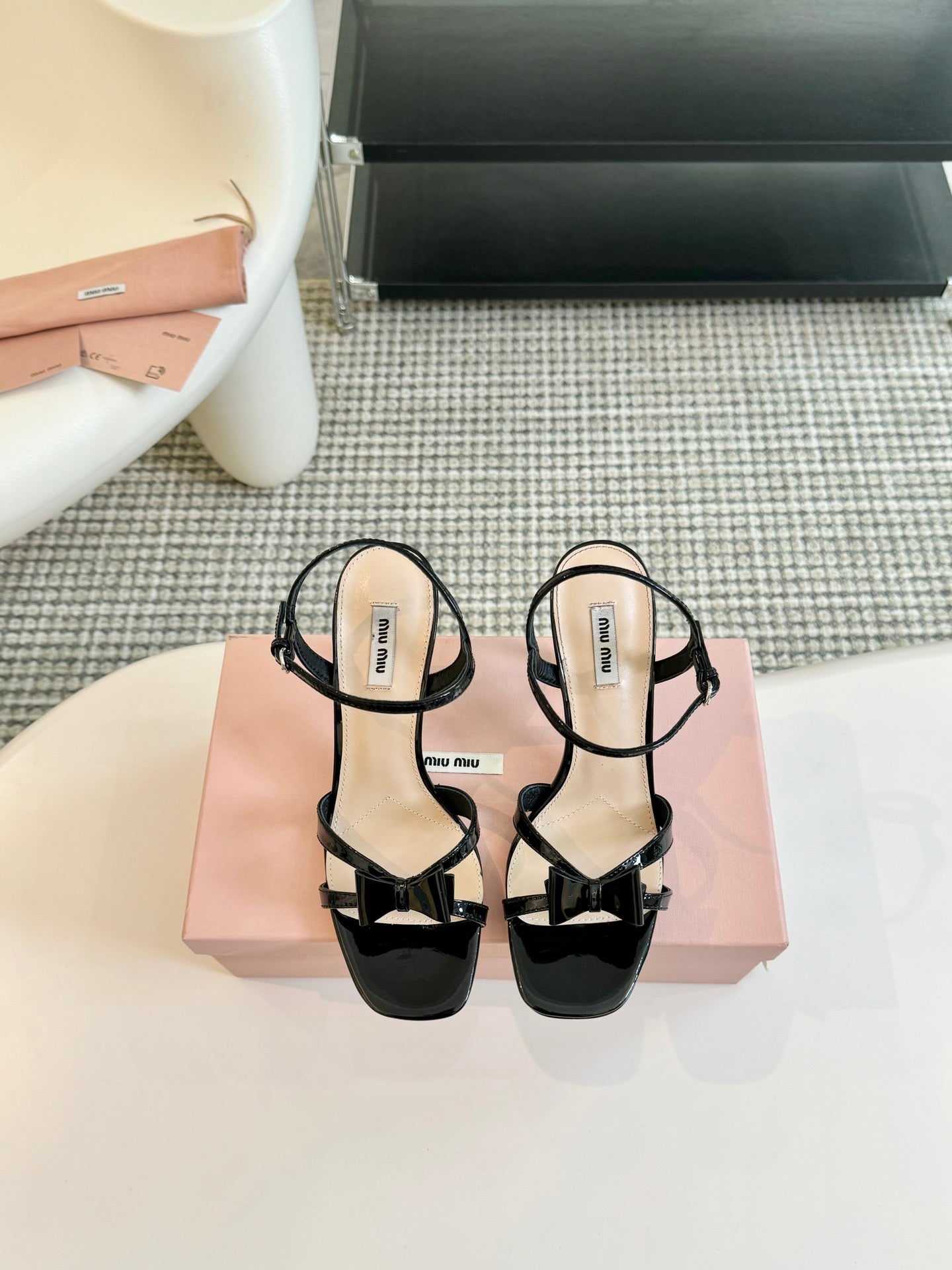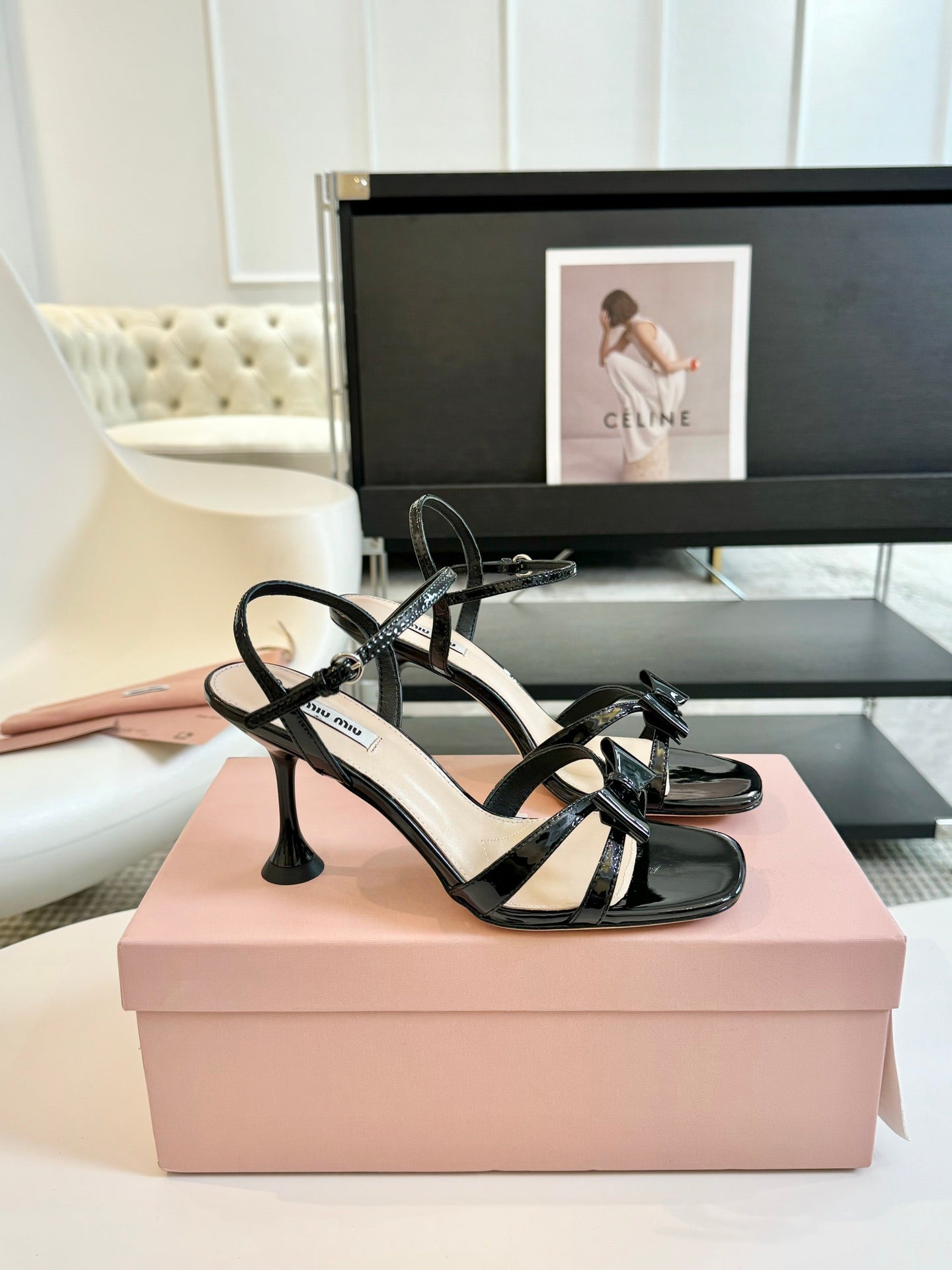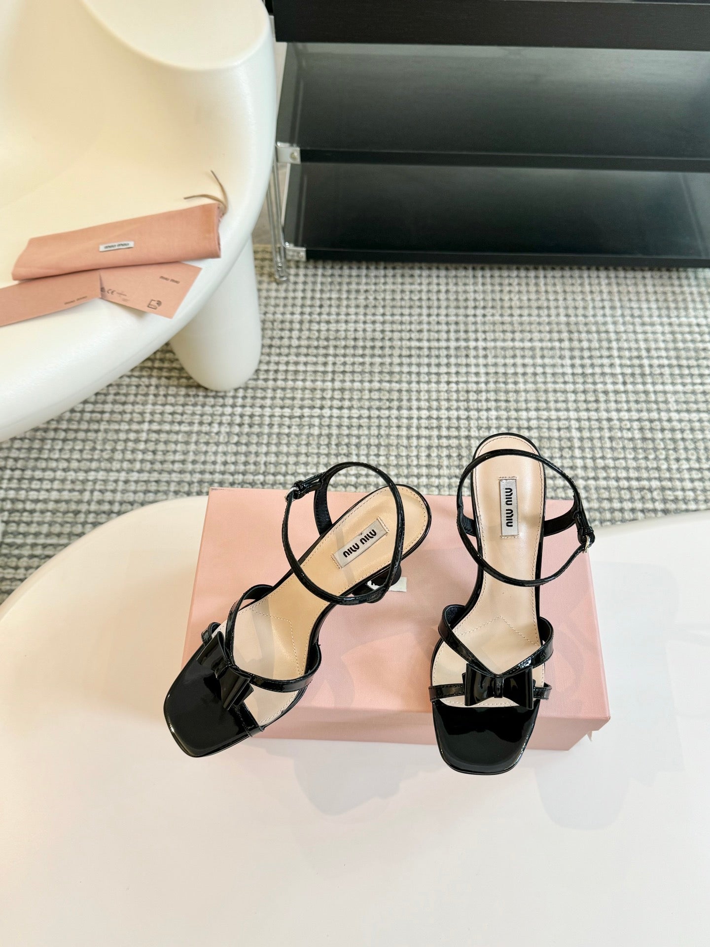 High Heels With Bows Black Glossy Leather