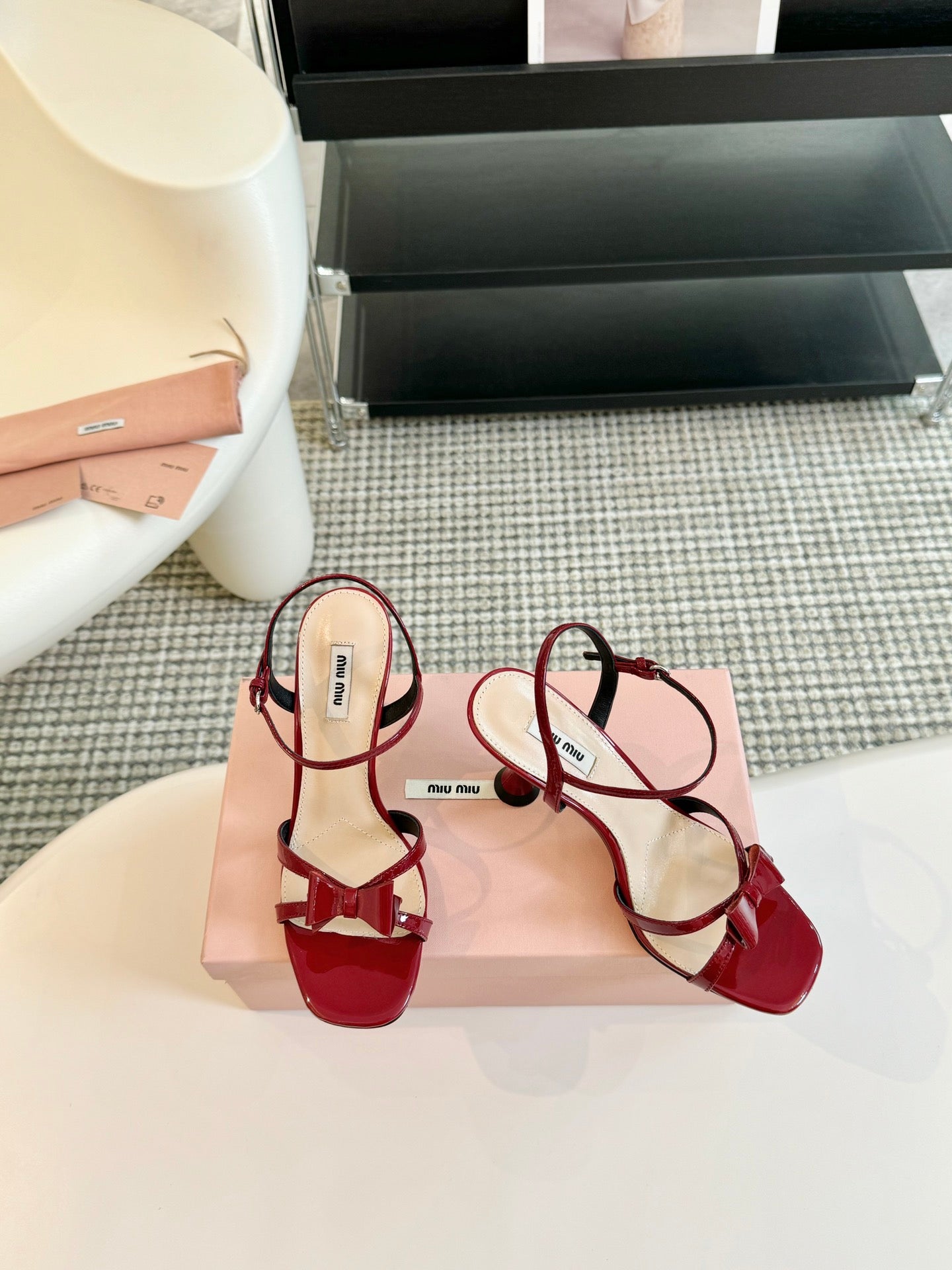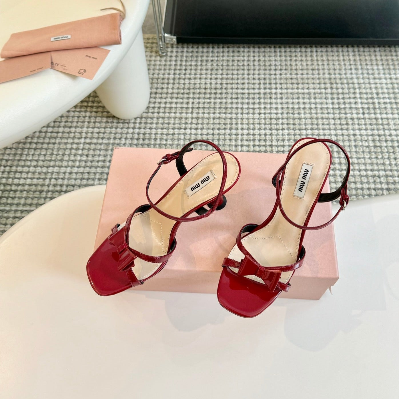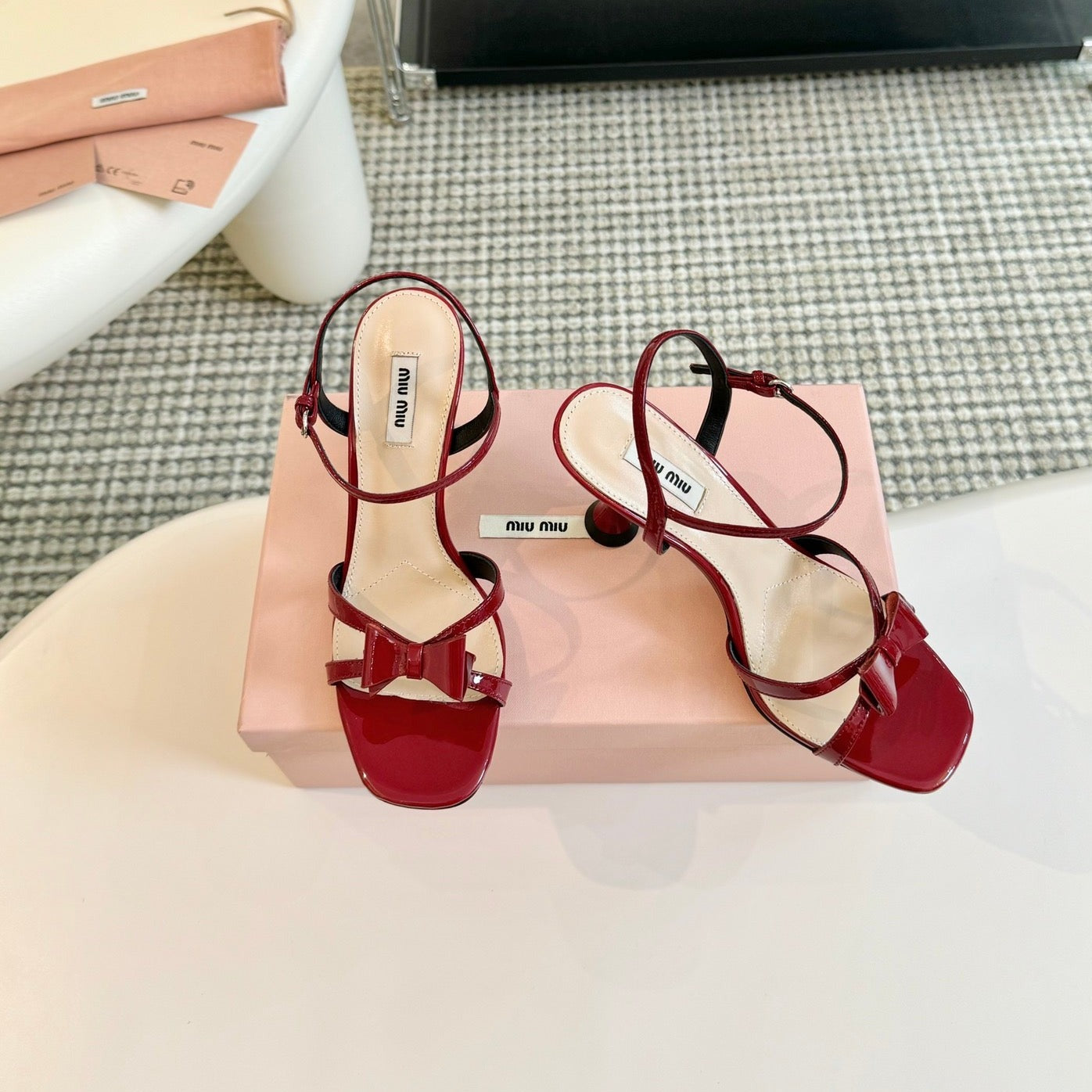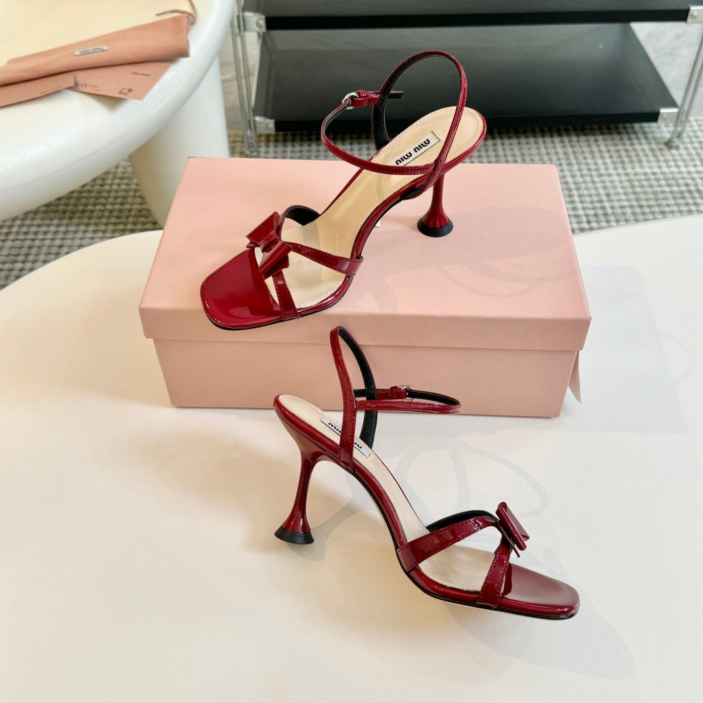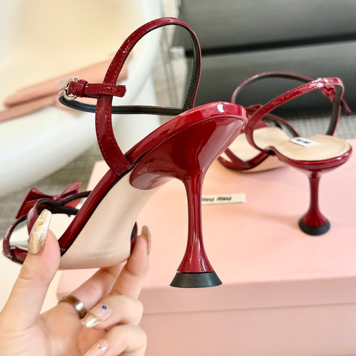 High Heels With Bows Crimson Color Glossy Leather