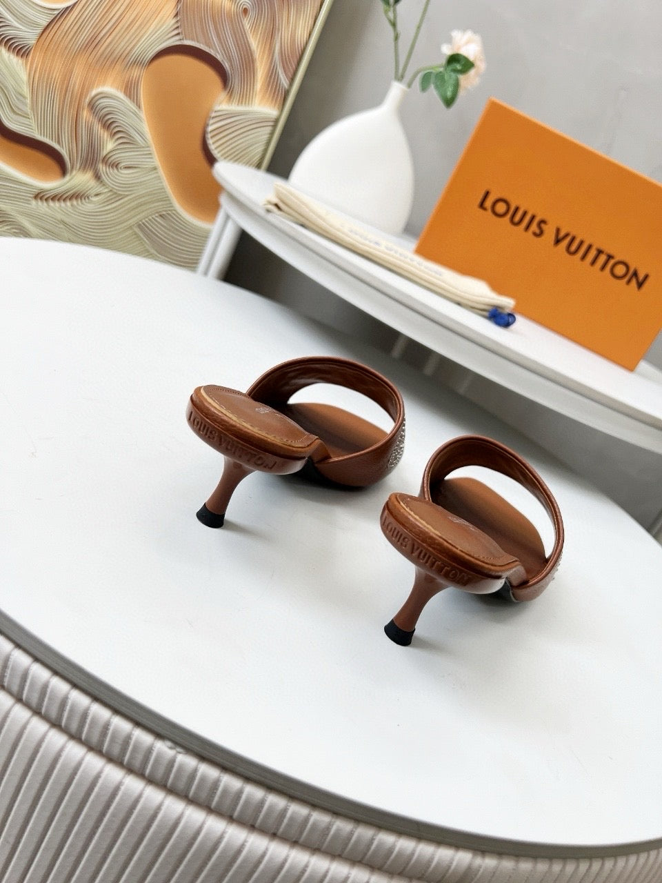 HIGH MULE IN BRONZE BROWN LAMBSKIN WITH RHINSTONES 55 MM