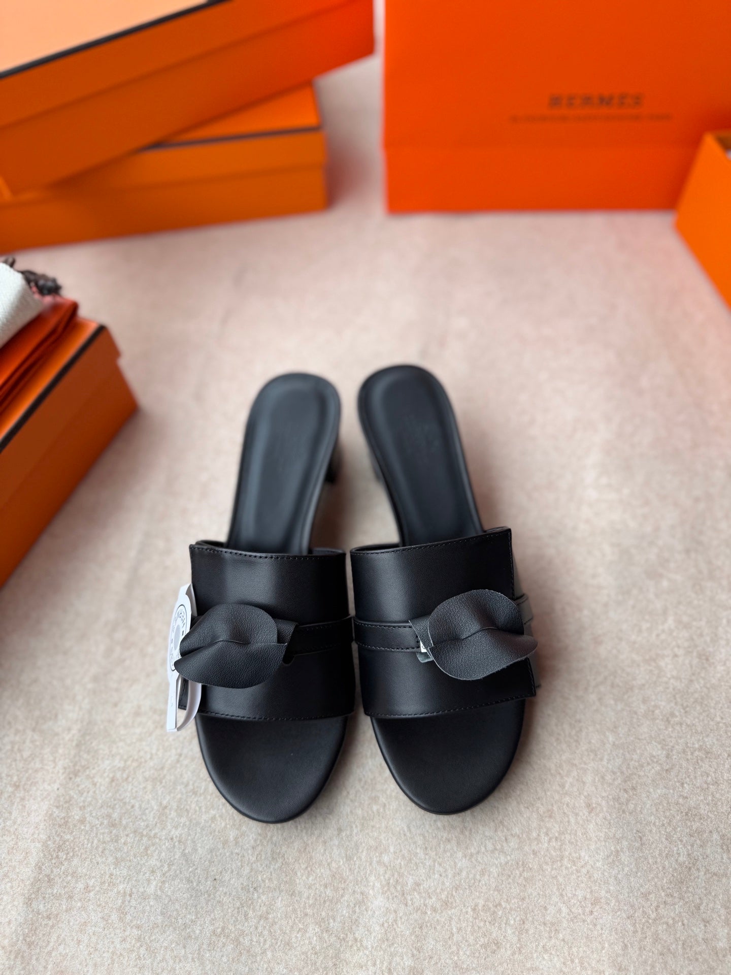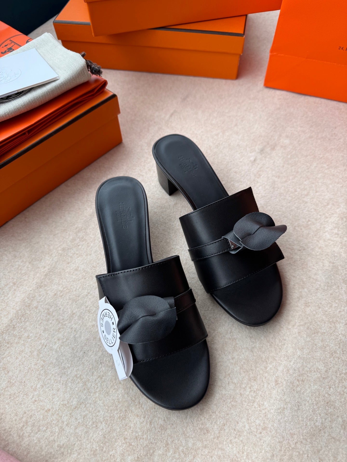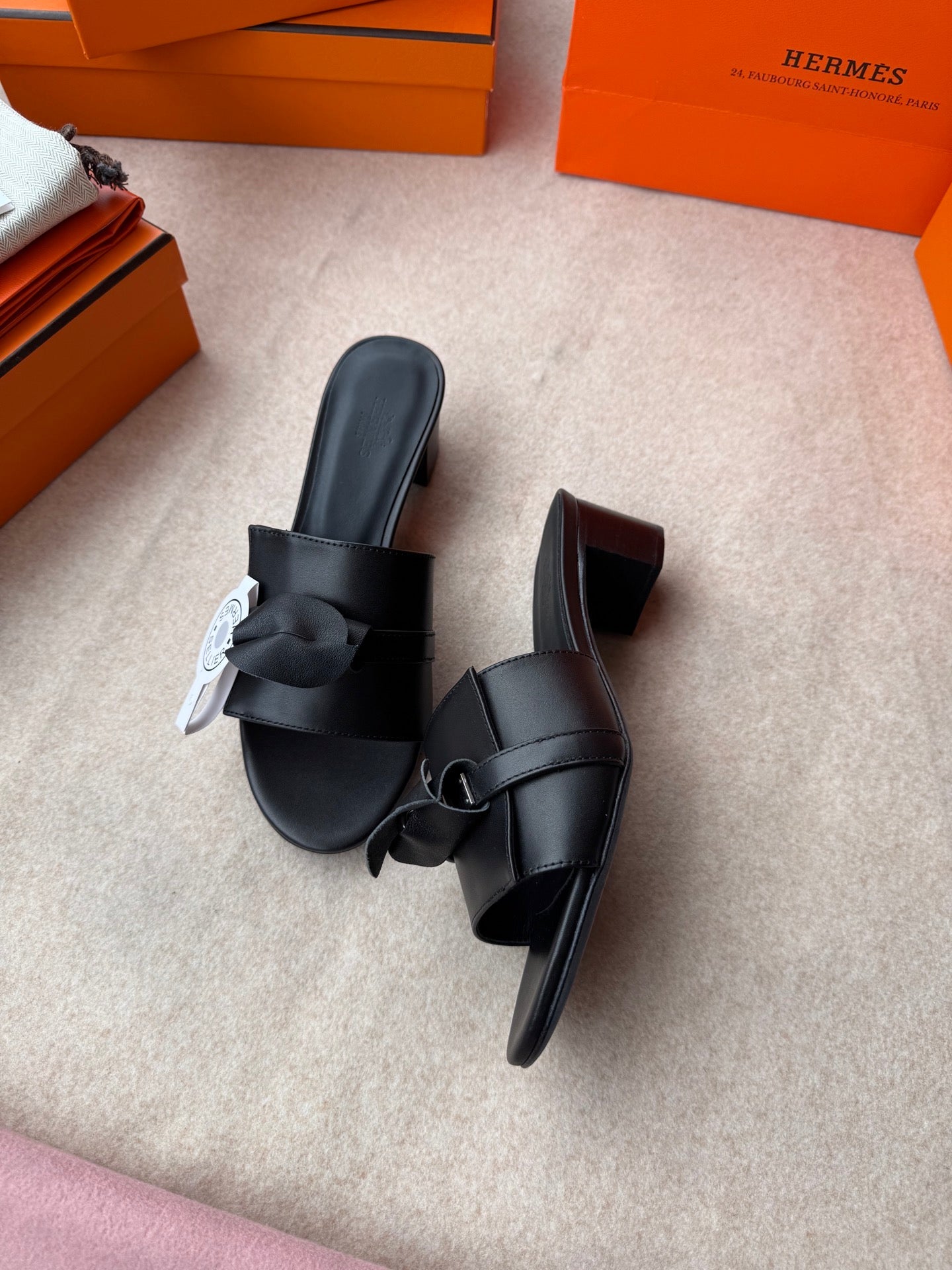 HIGH MULES IN BLACK CALFSKIN