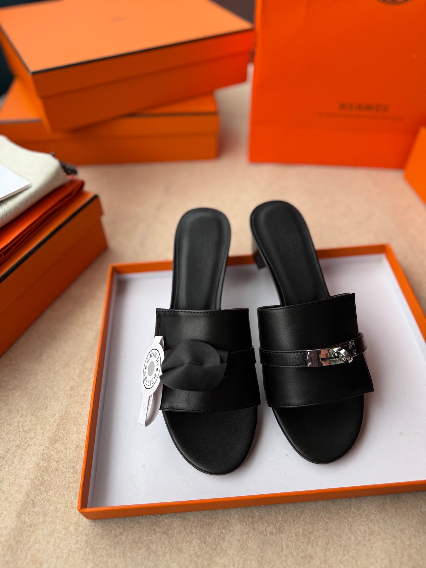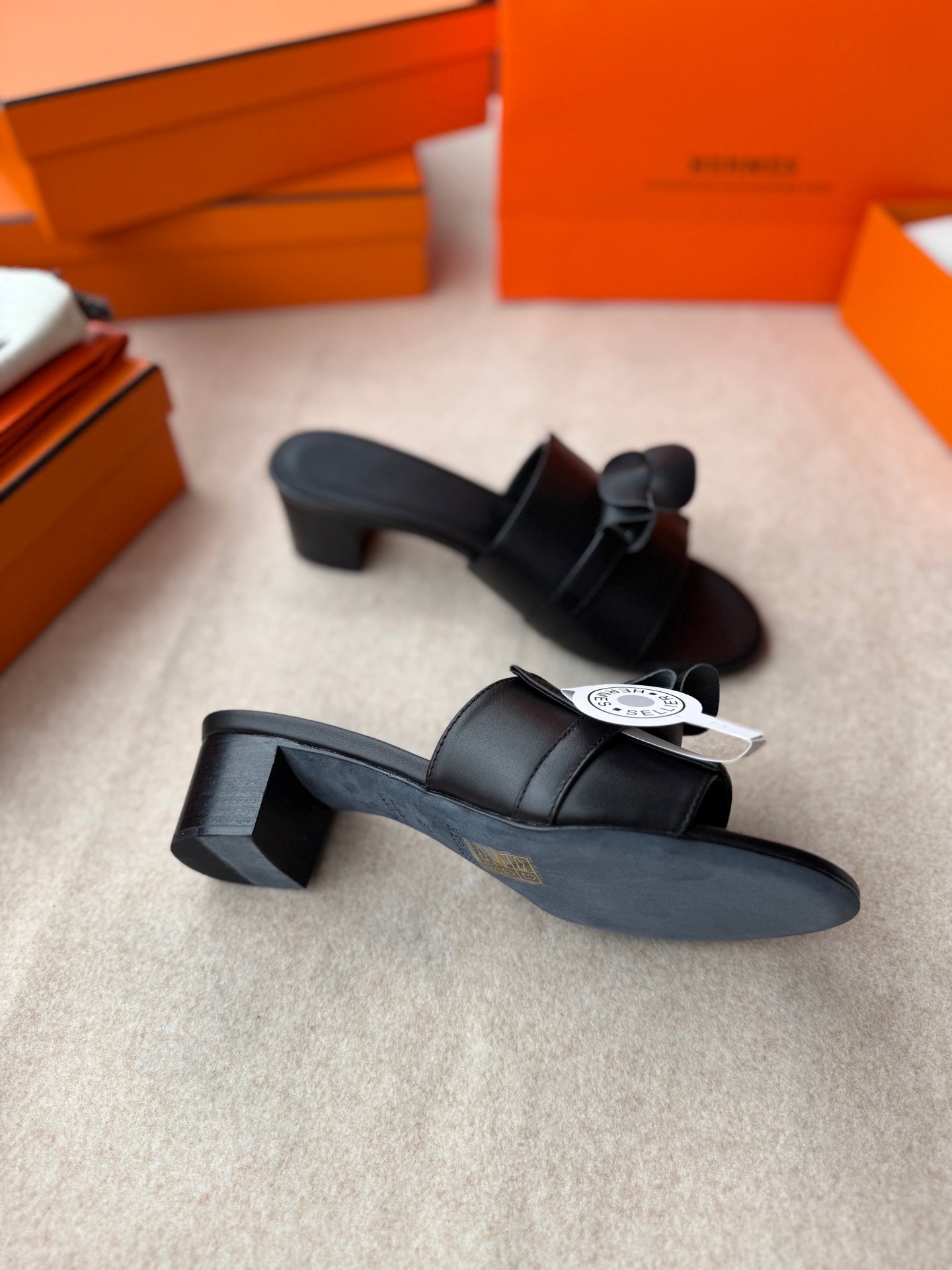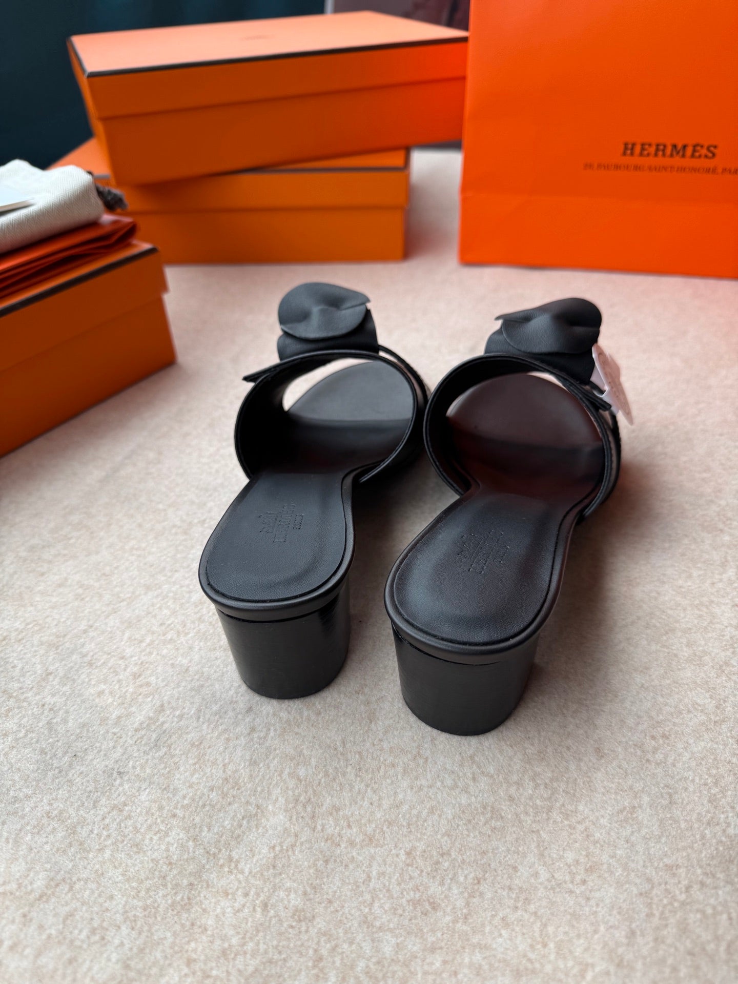 HIGH MULES IN BLACK CALFSKIN