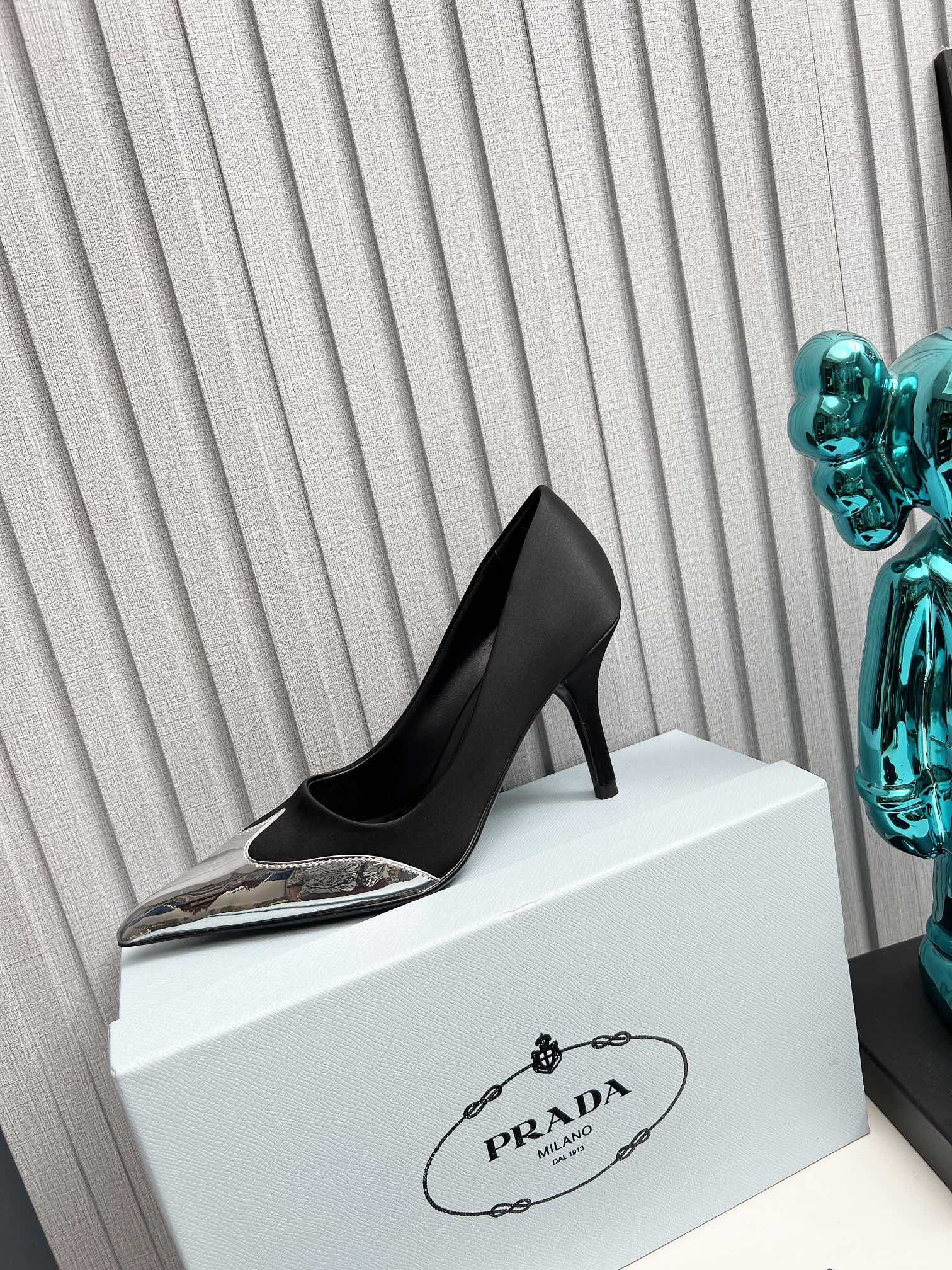 HIGH POINTED-TOE PUMPS IN BLACK MIX SILVER SATIN