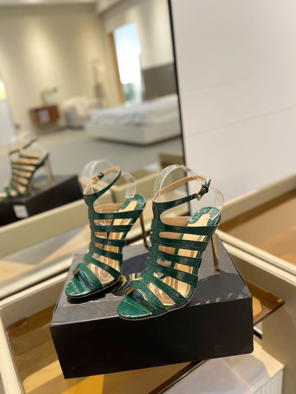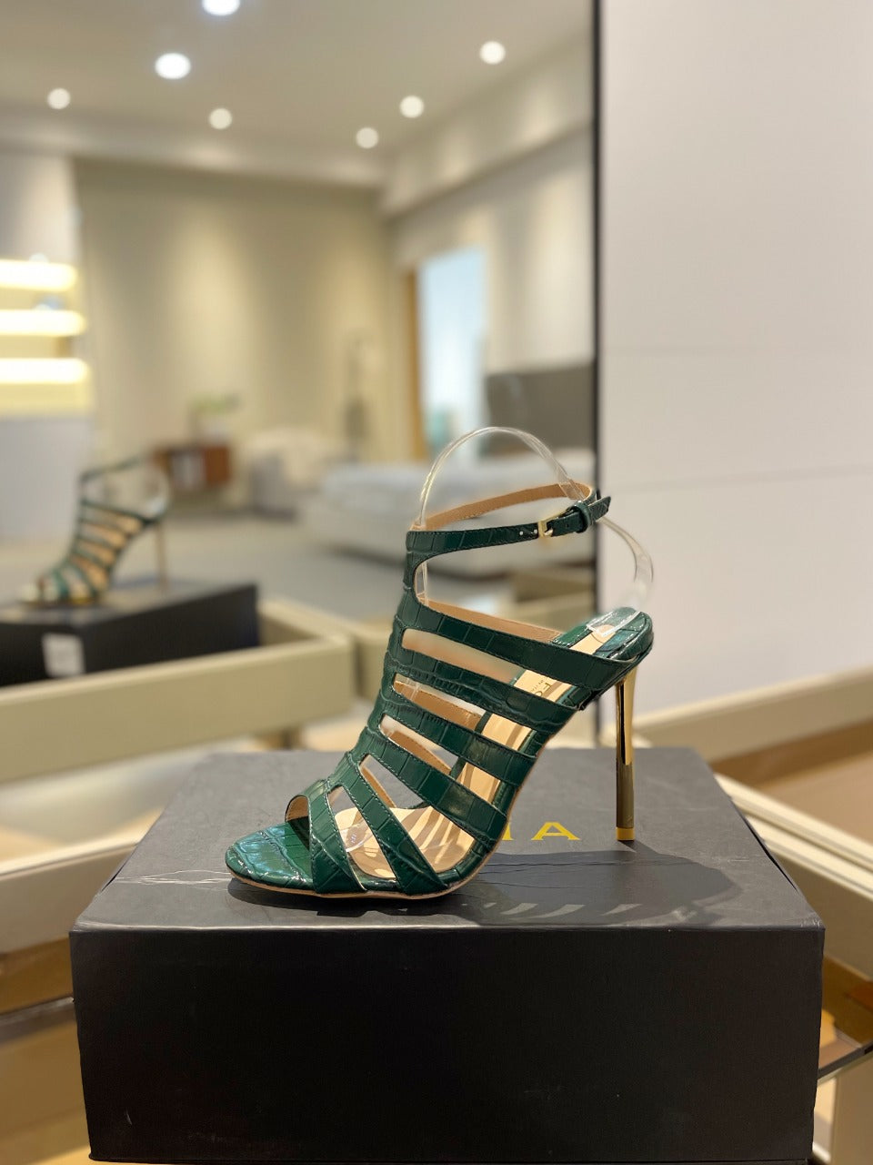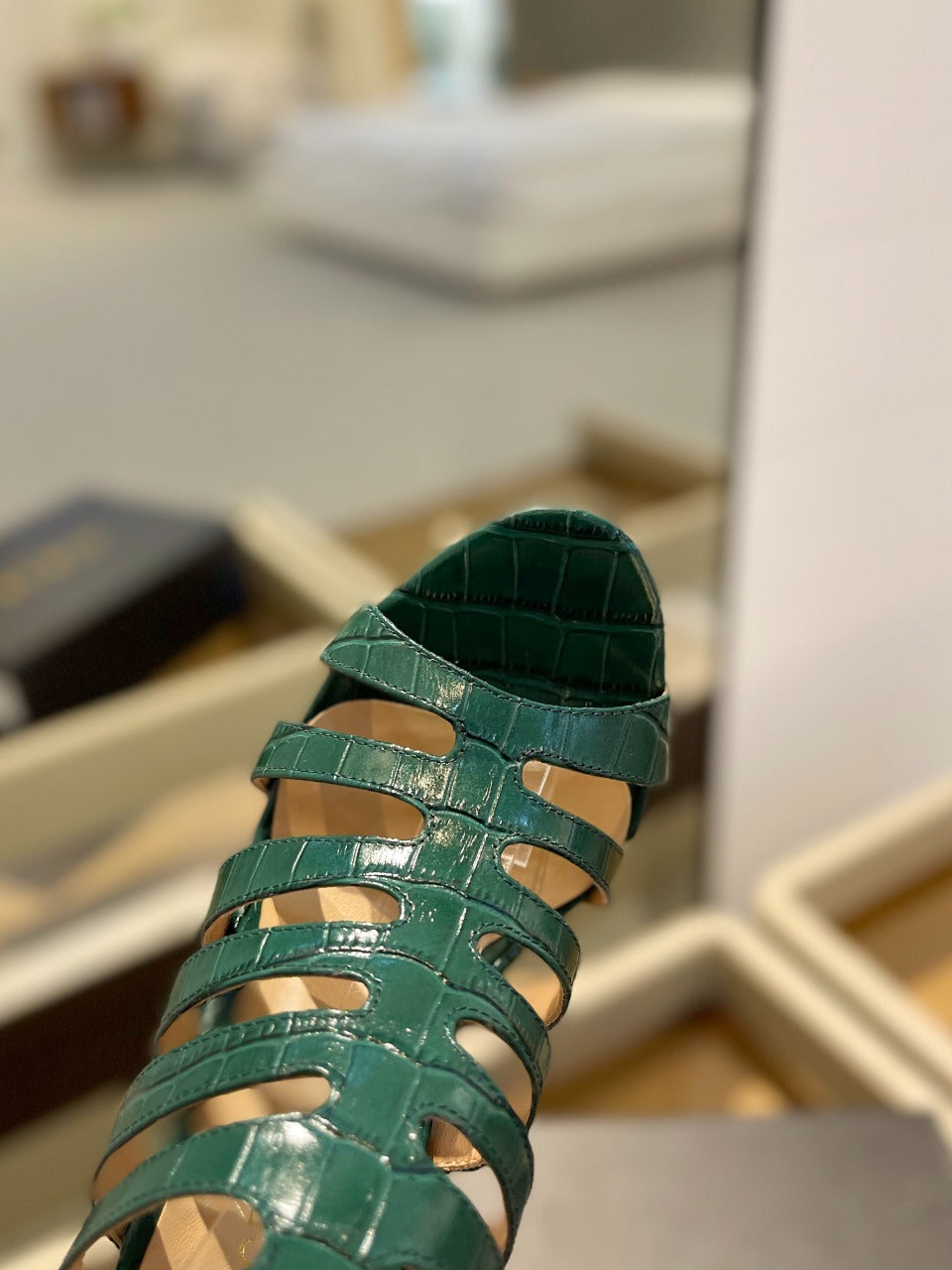 HIGH SANDAL 10 CM IN GREEN FOREST CALFSKIN