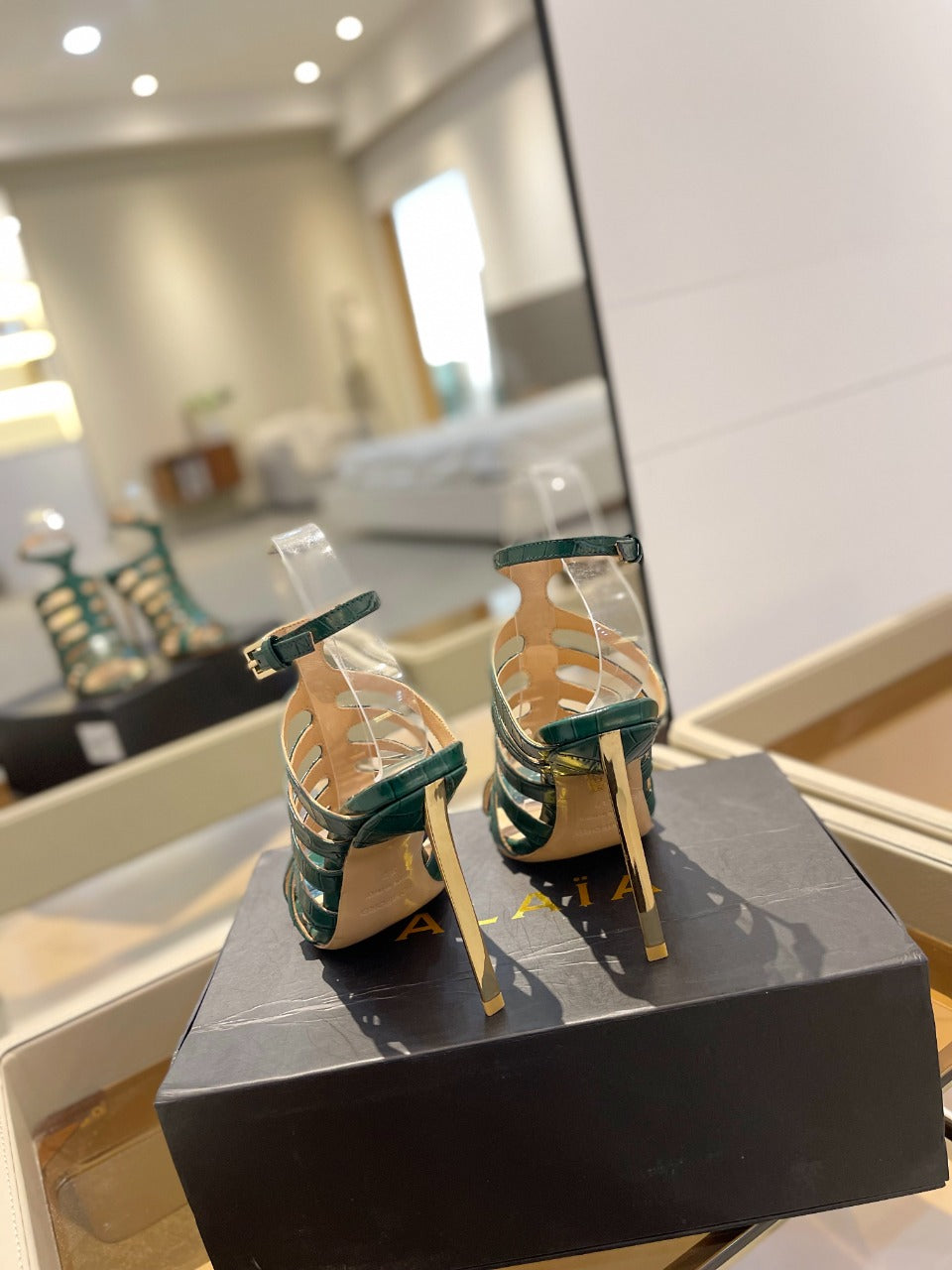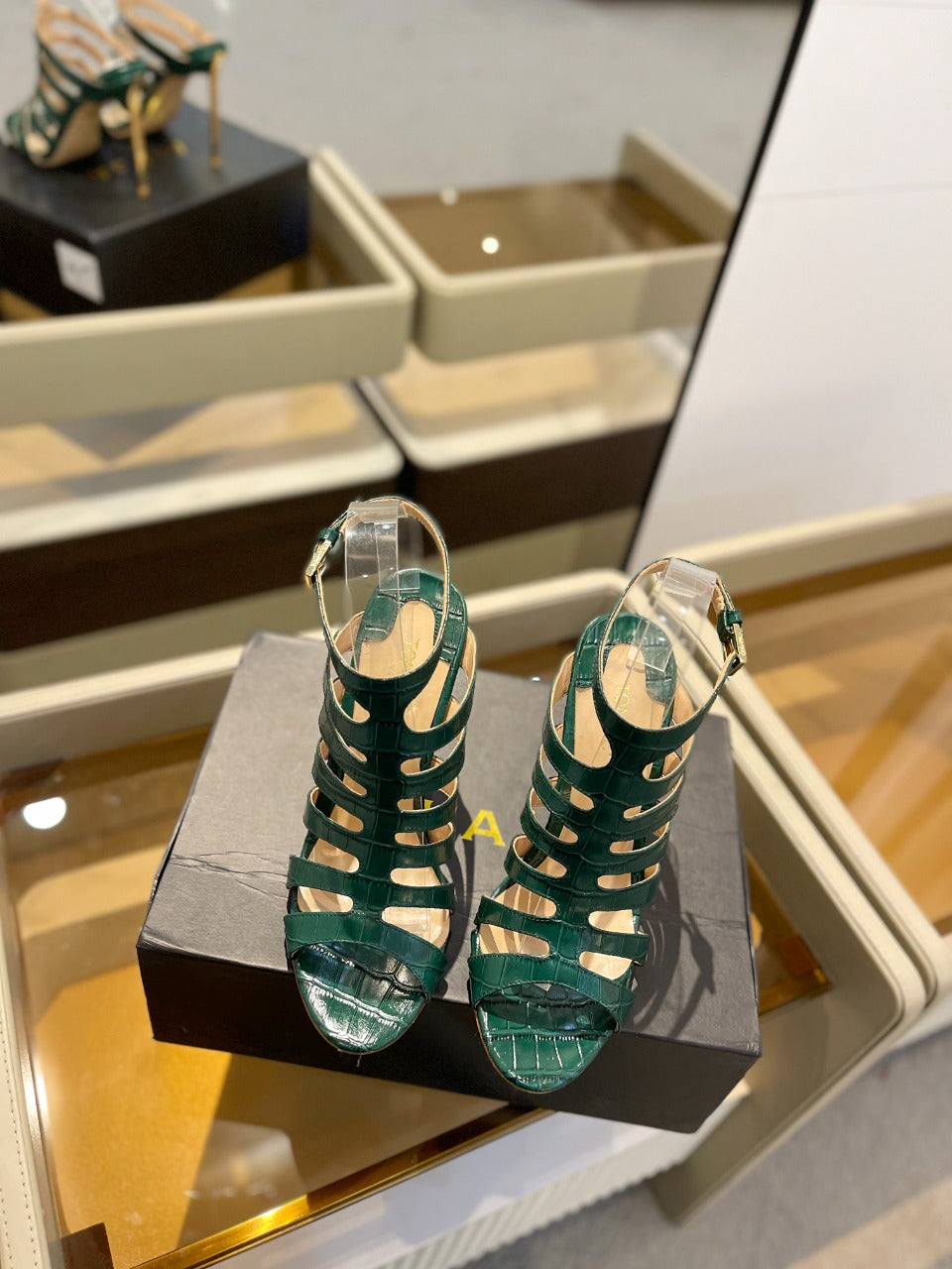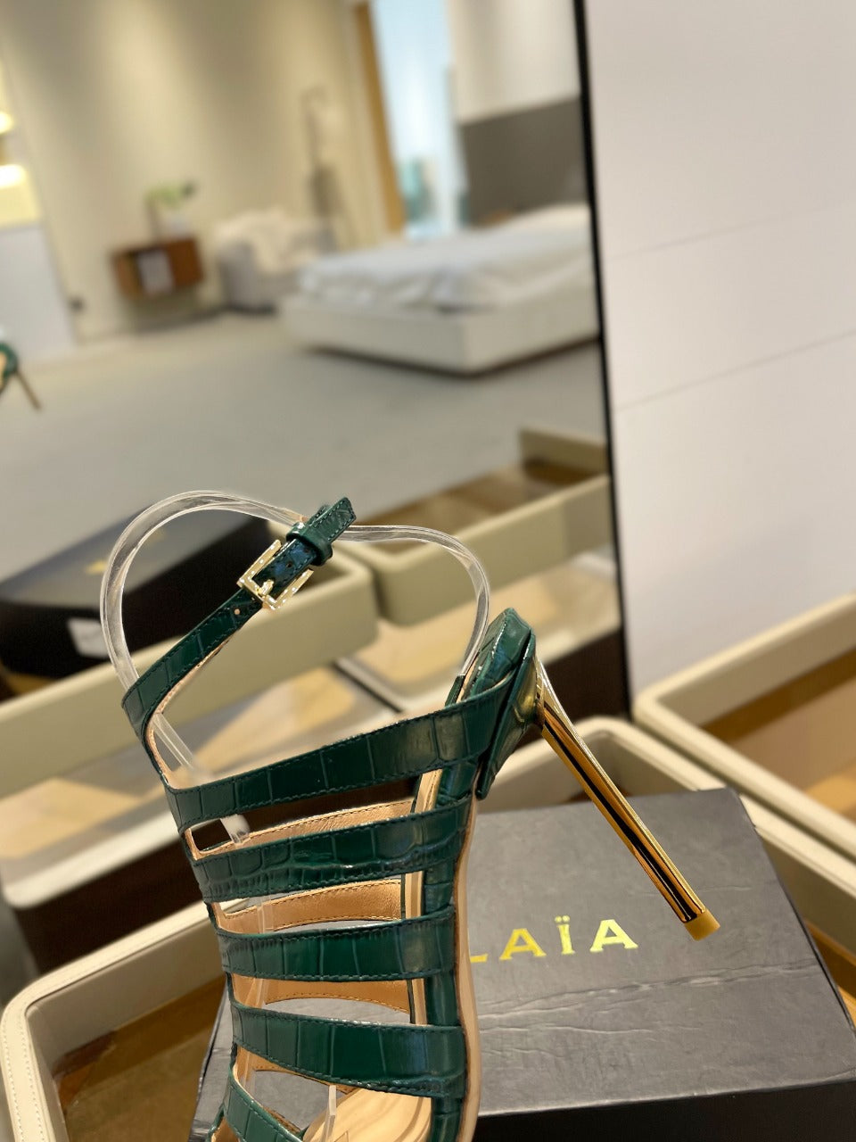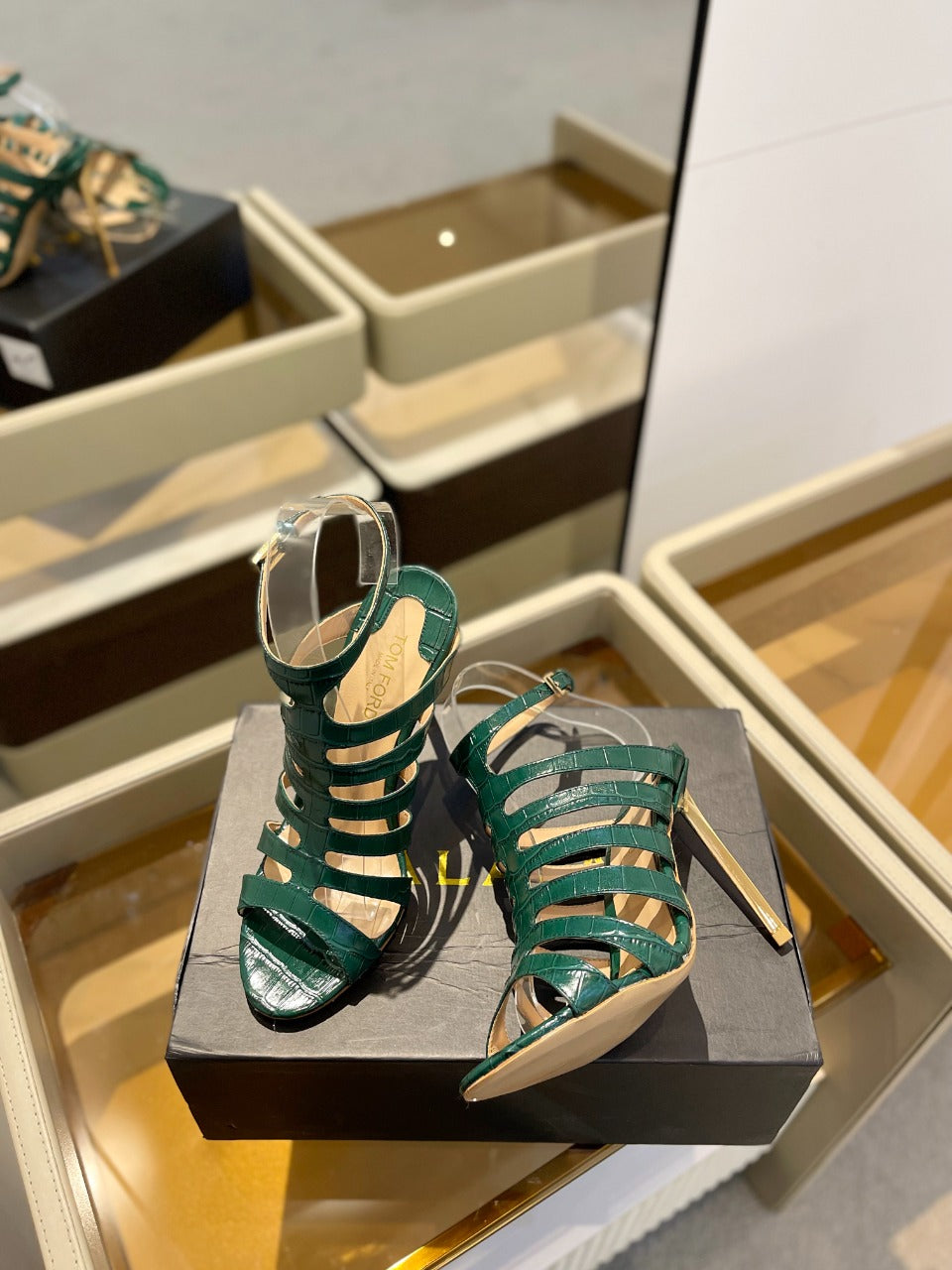 HIGH SANDAL 10 CM IN GREEN FOREST CALFSKIN