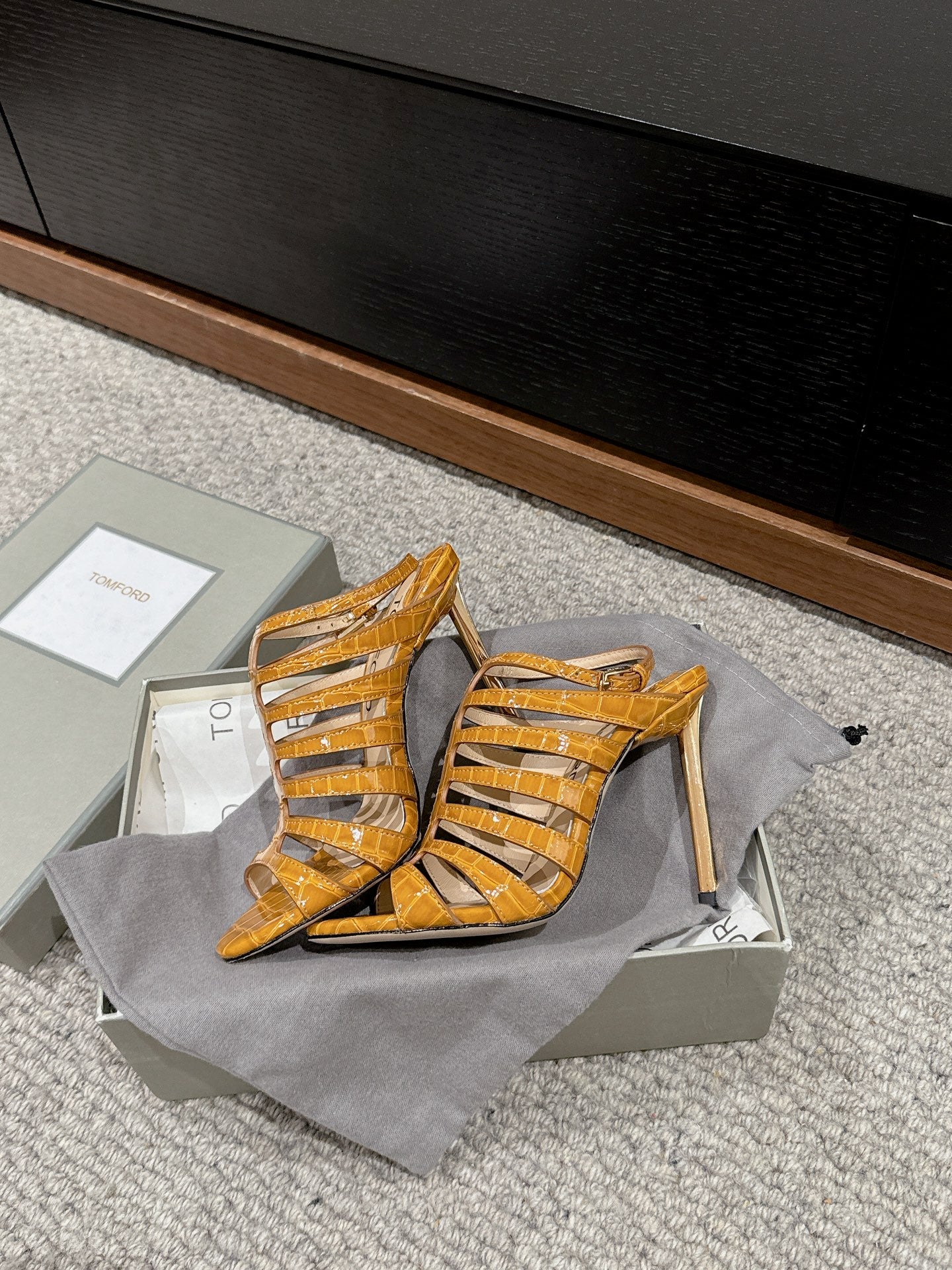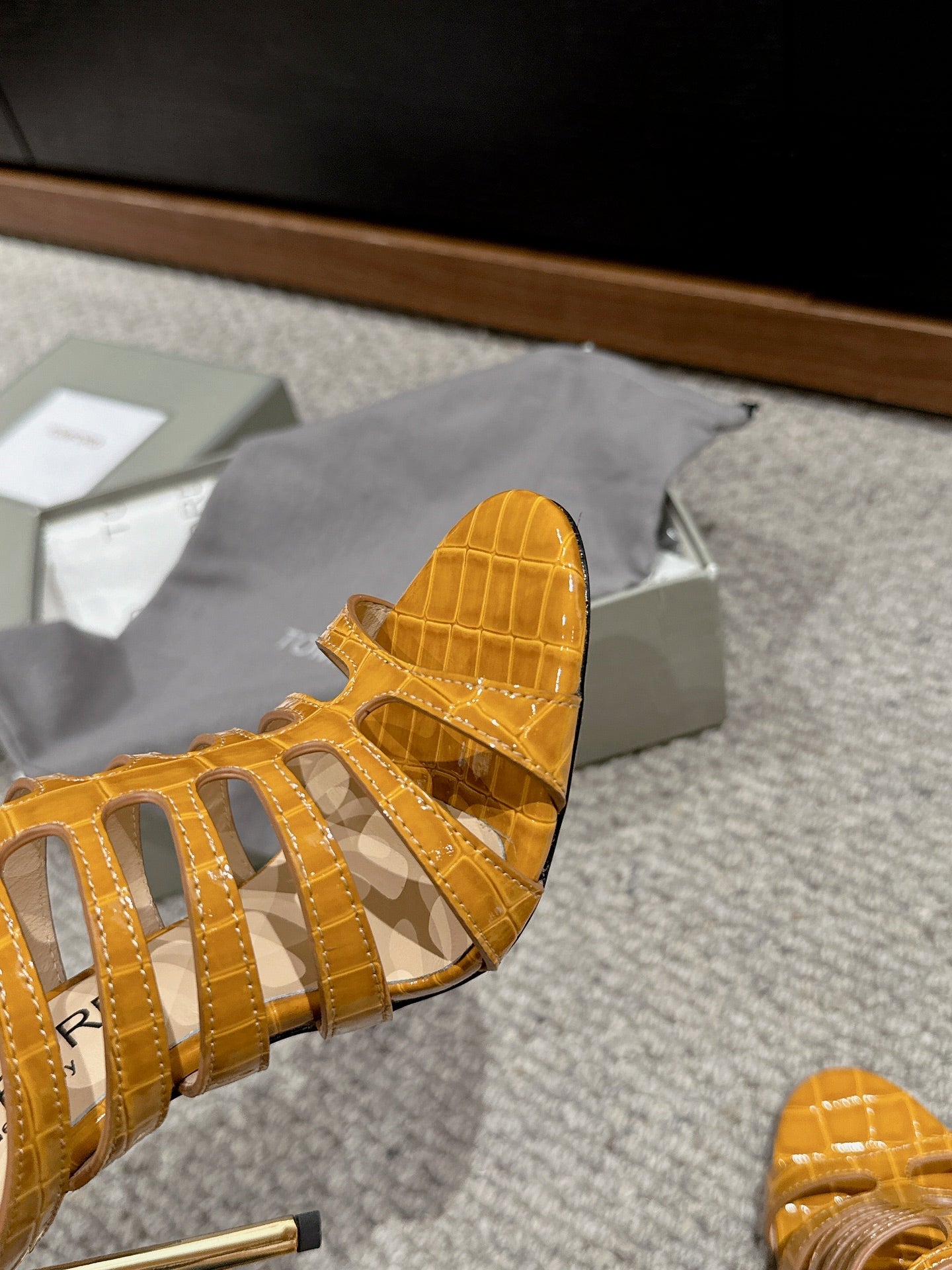 HIGH SANDAL 10 CM IN TIGER ORANGE CALFSKIN