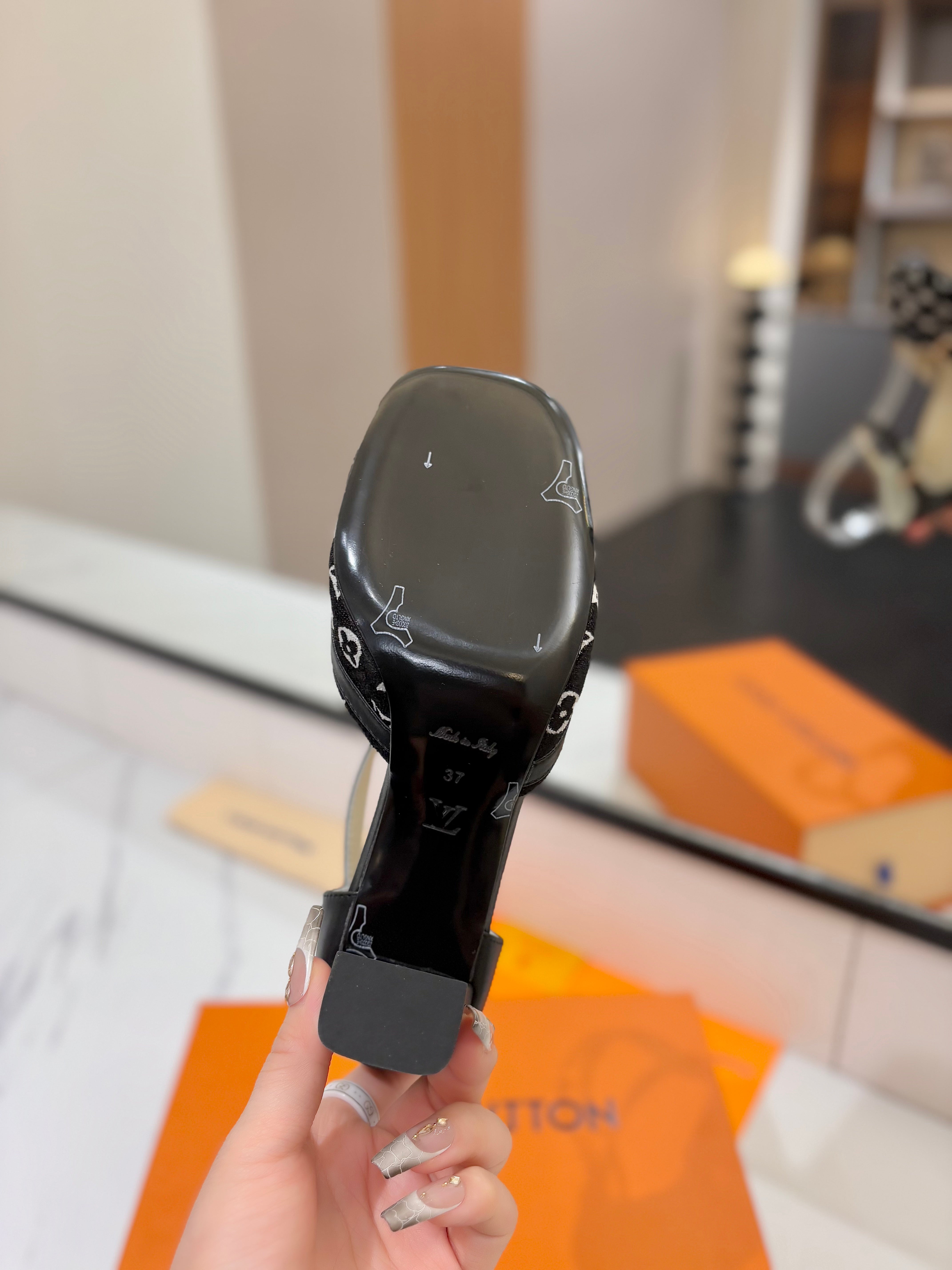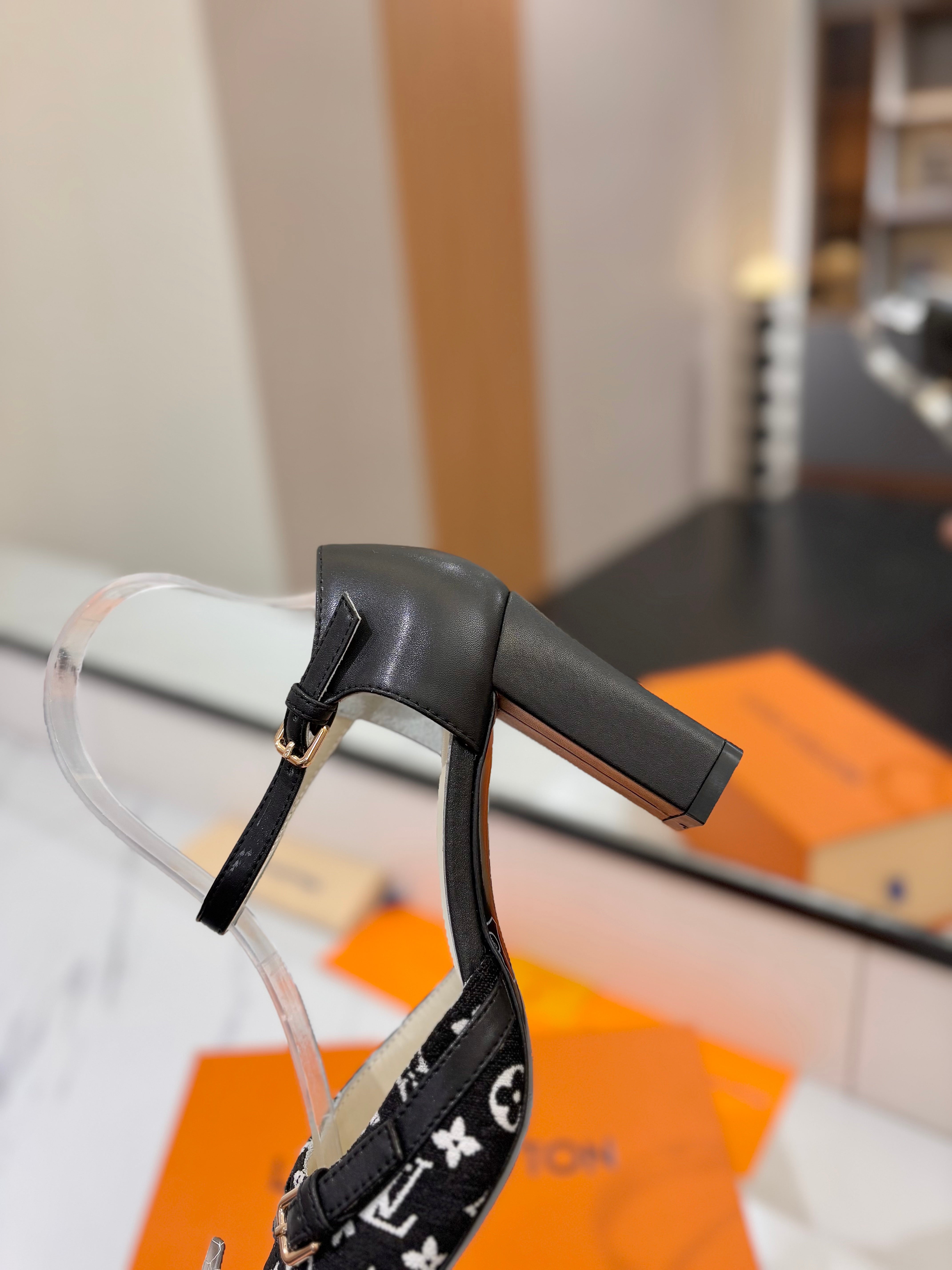 HIGH SANDALS 8 CM IN BLACK MONOGRAM DENIM AND CALFSKIN