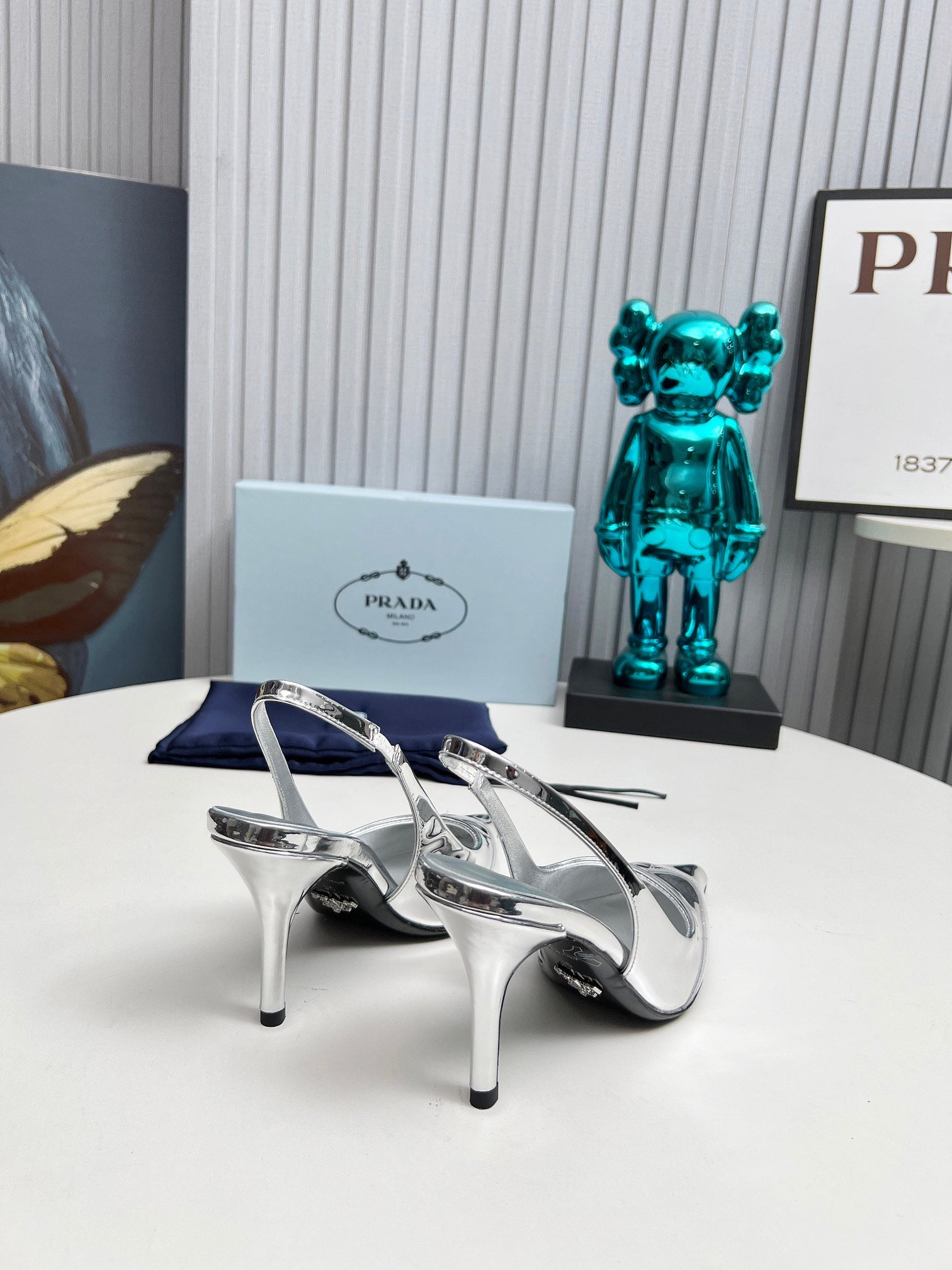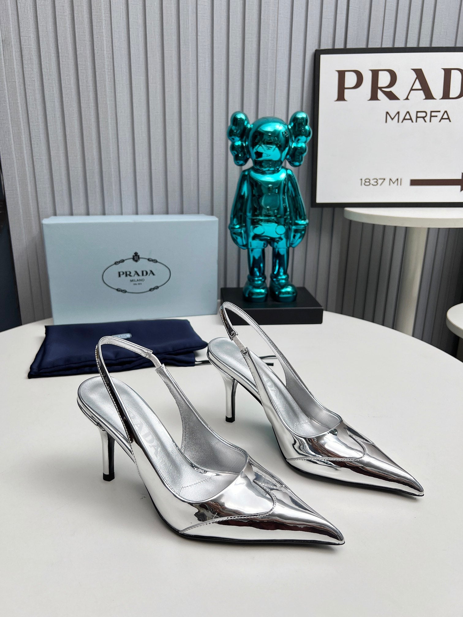 HIGH SLING BACK PUMPS IN SILVER GLOSSY CALFSKIN