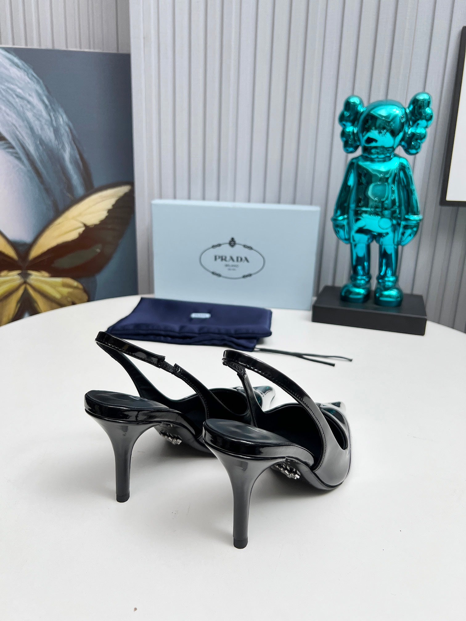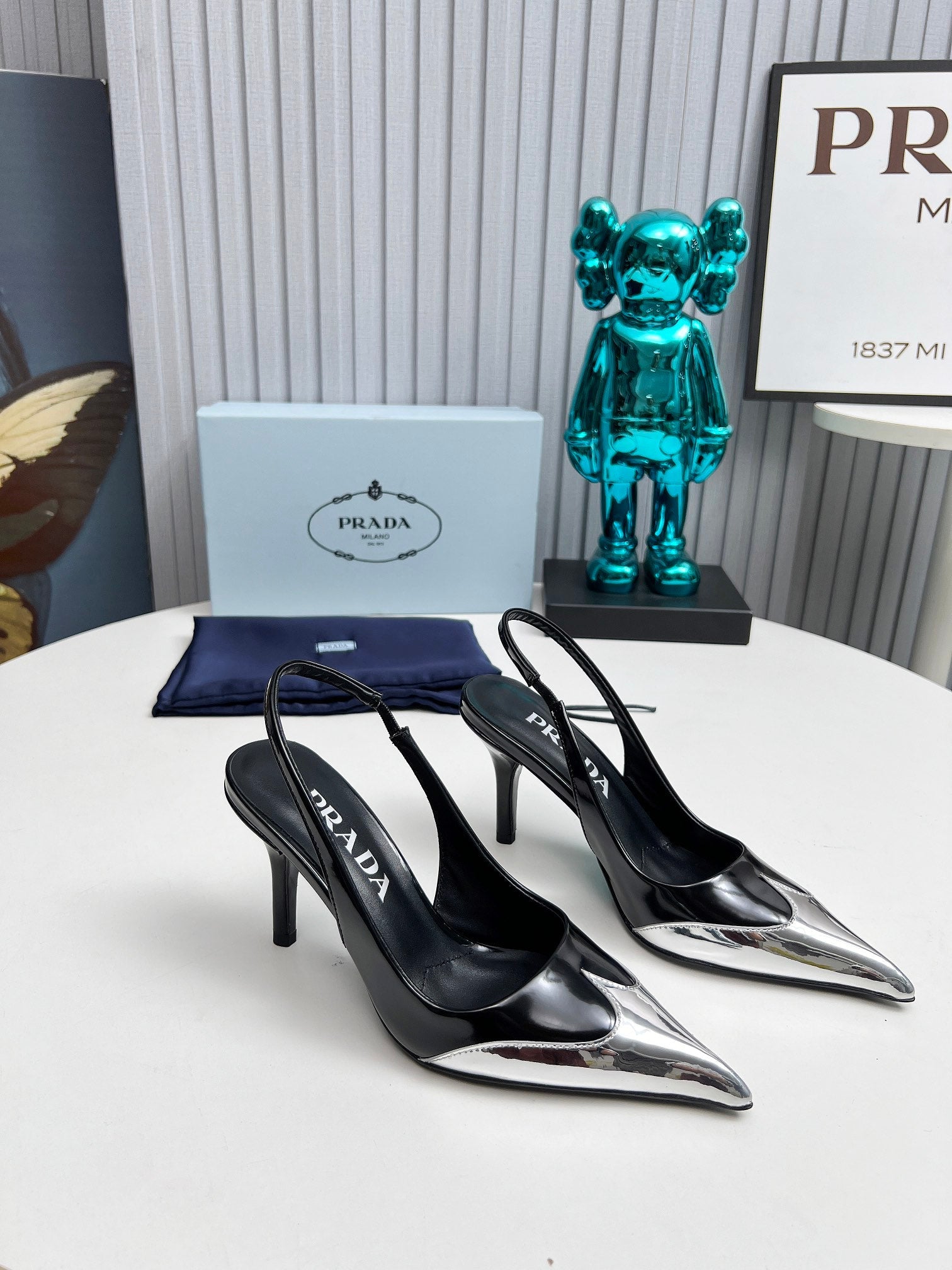 HIGH SLING BACK PUMPS IN SILVER MIX BLACK GLOSSY CALFSKIN