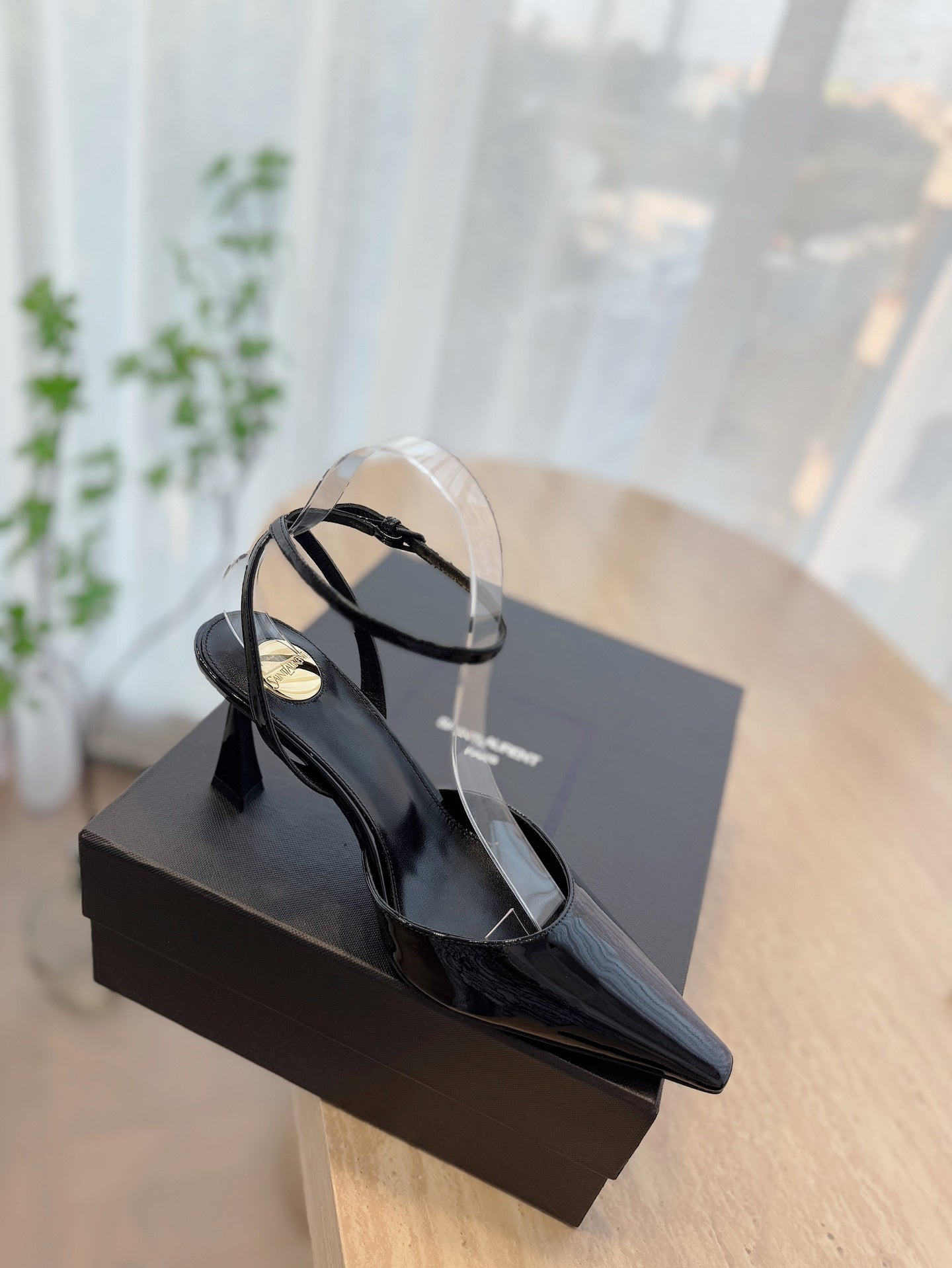 HIGH SLINGBACK 75 MM IN BLACK PATENT CALFSKIN