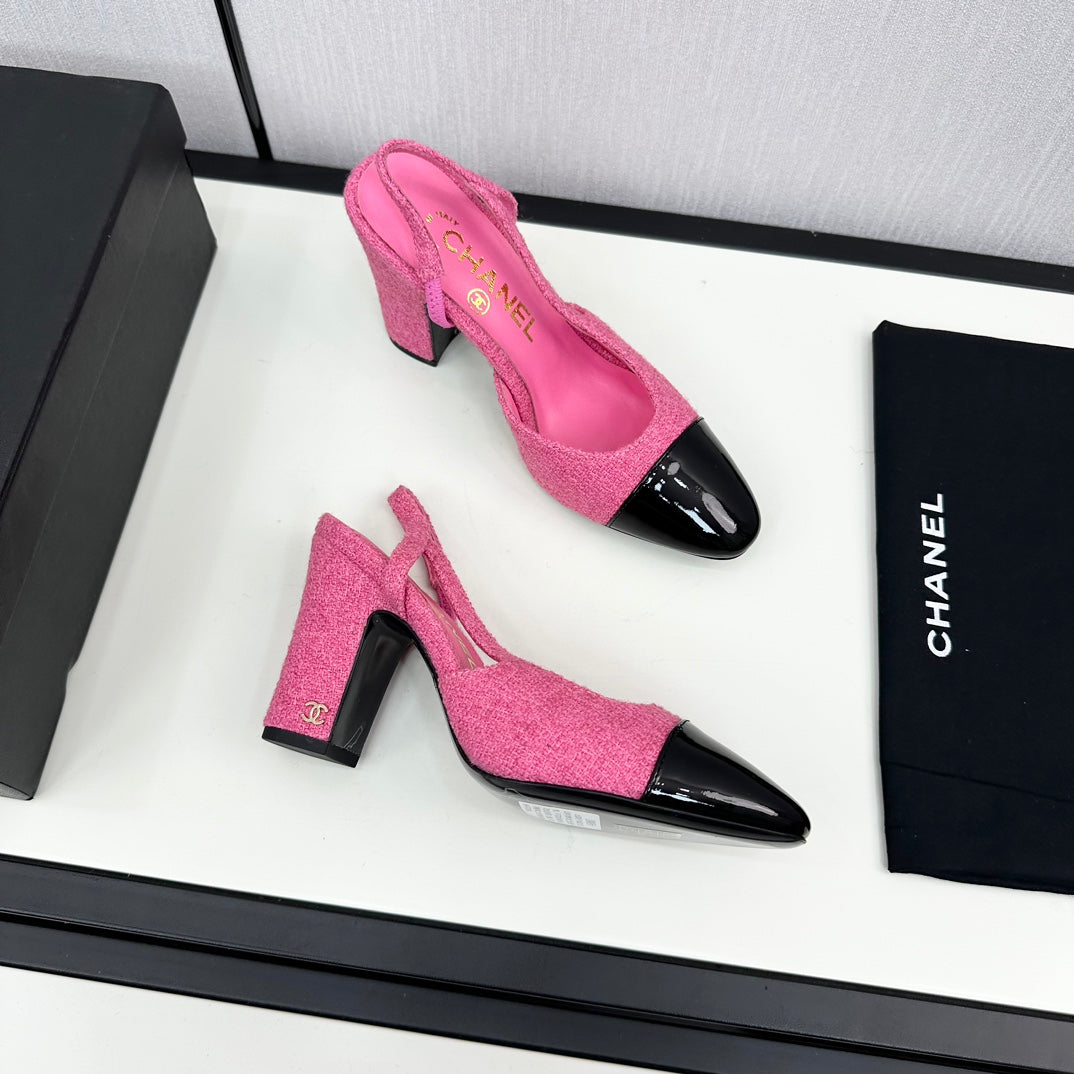 HIGH SLINGBACK BRIGHT PINK TWEED AND BLACK CALFSKIN