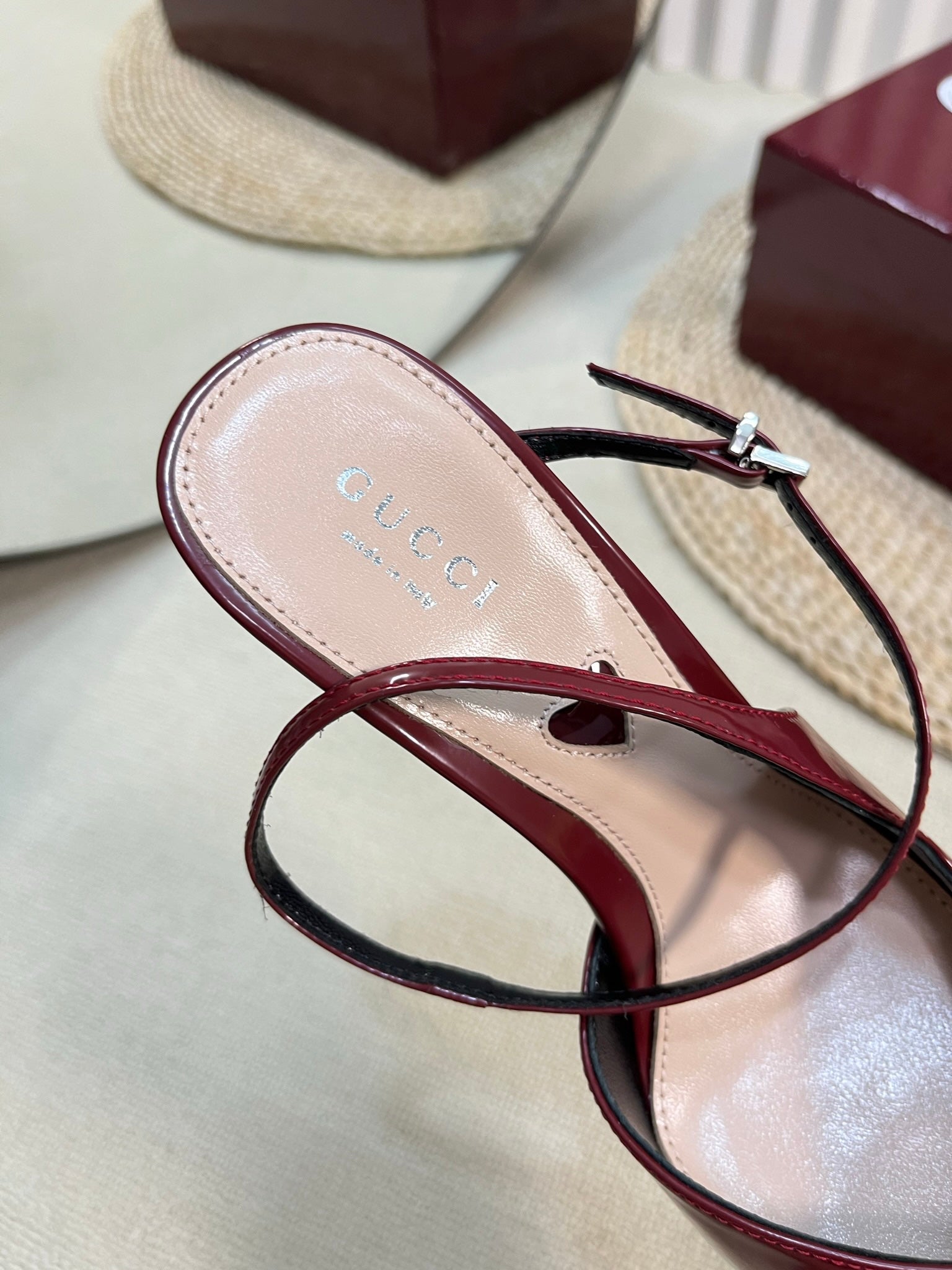 HIGH SLINGBACK PUMP 10 CM IN CHERRY RED GLOSSY CALFSKIN