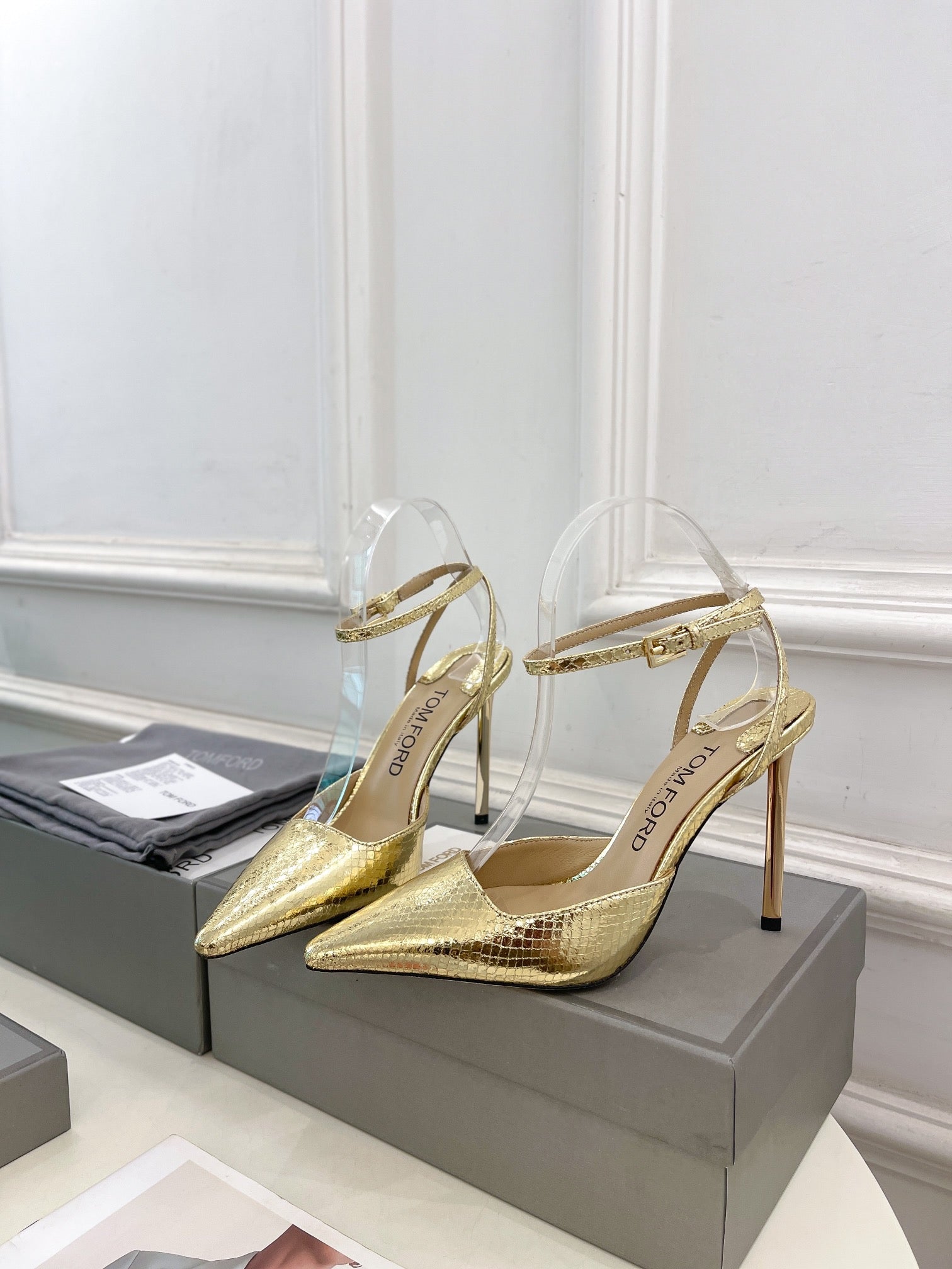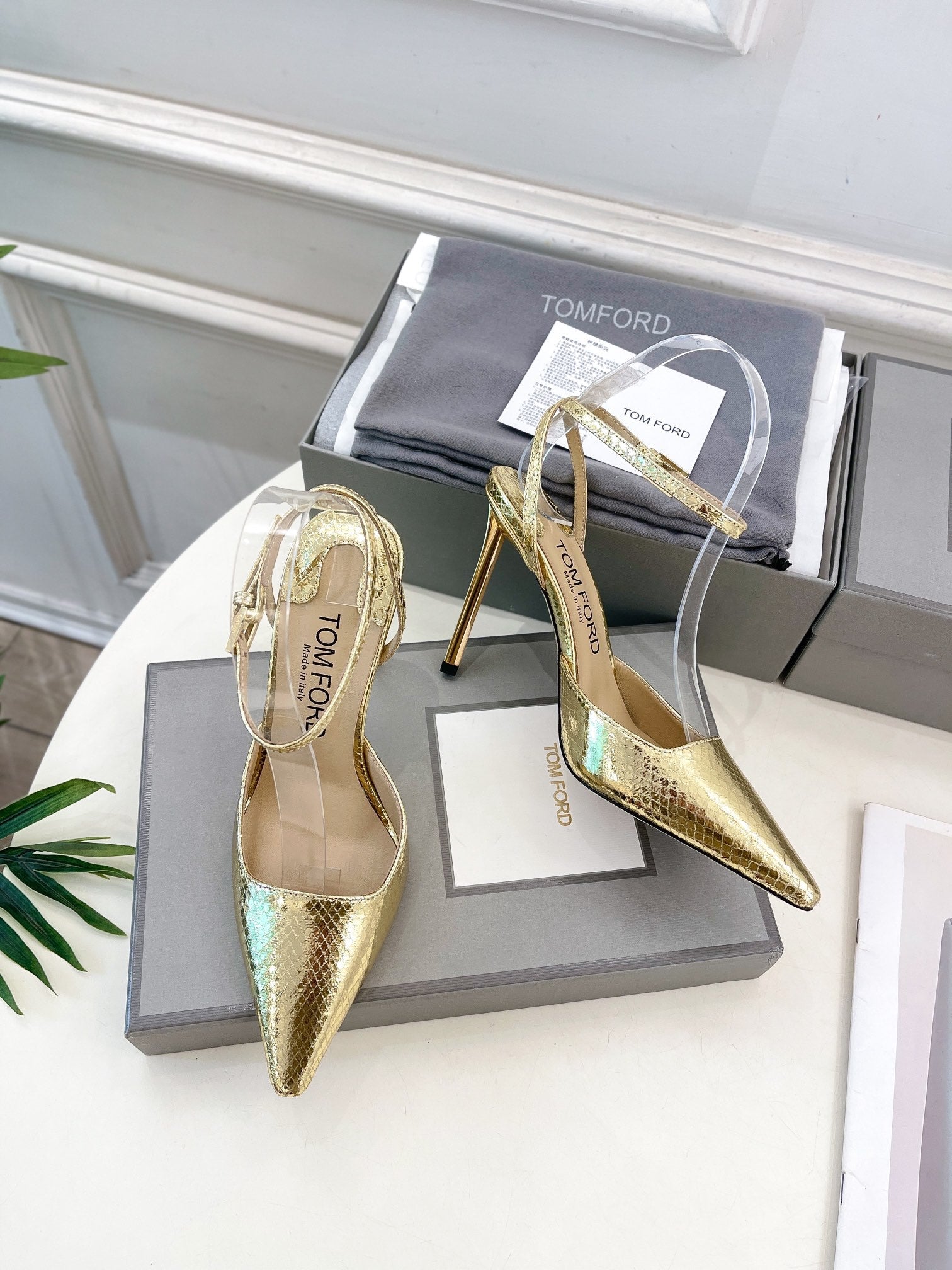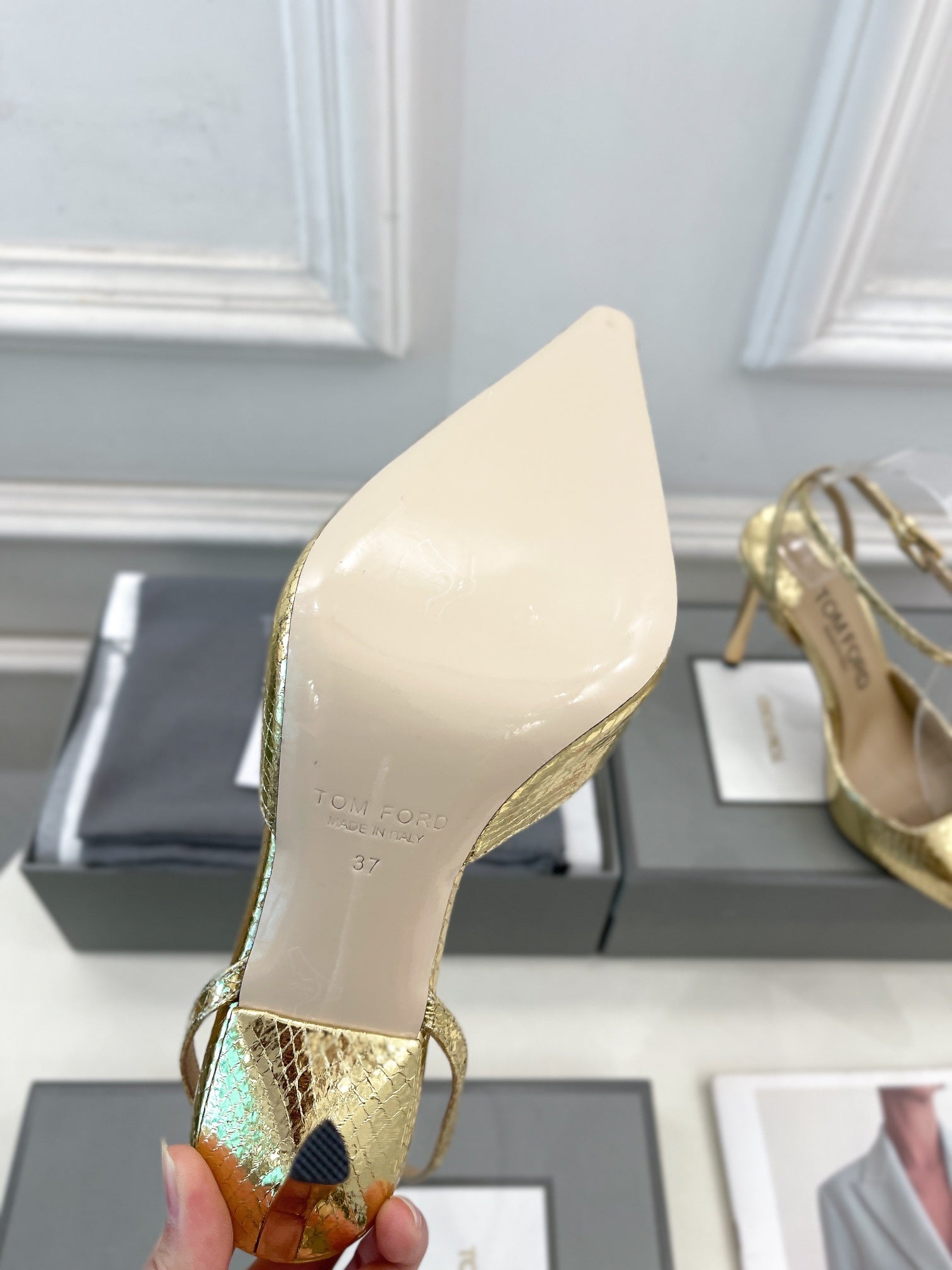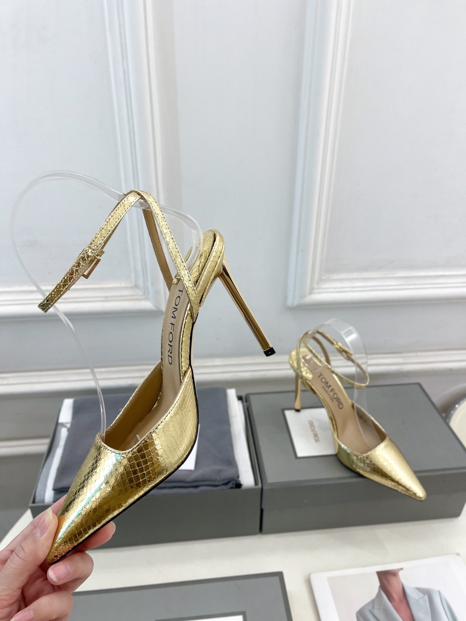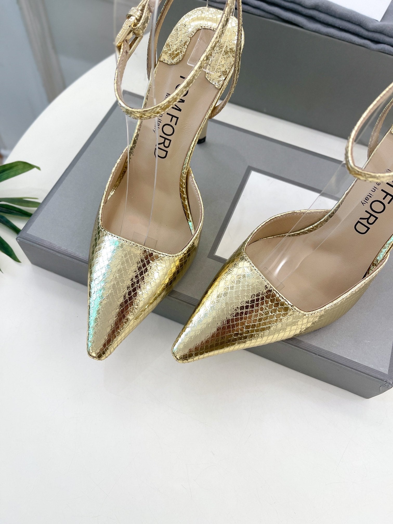 HIGH SLINGBACKS 10 CM IN GOLD SNAKE-PATTERN CALFSKIN