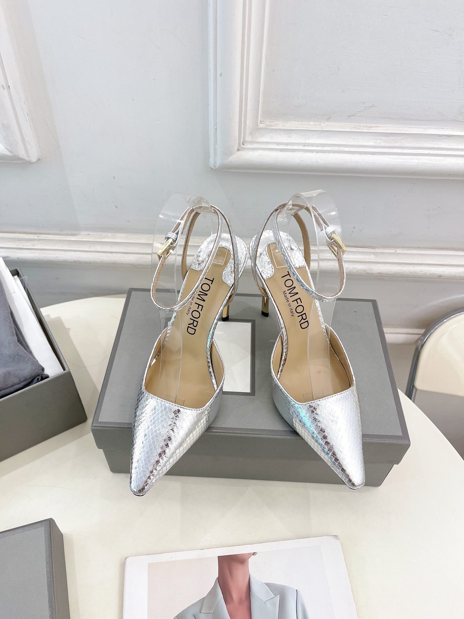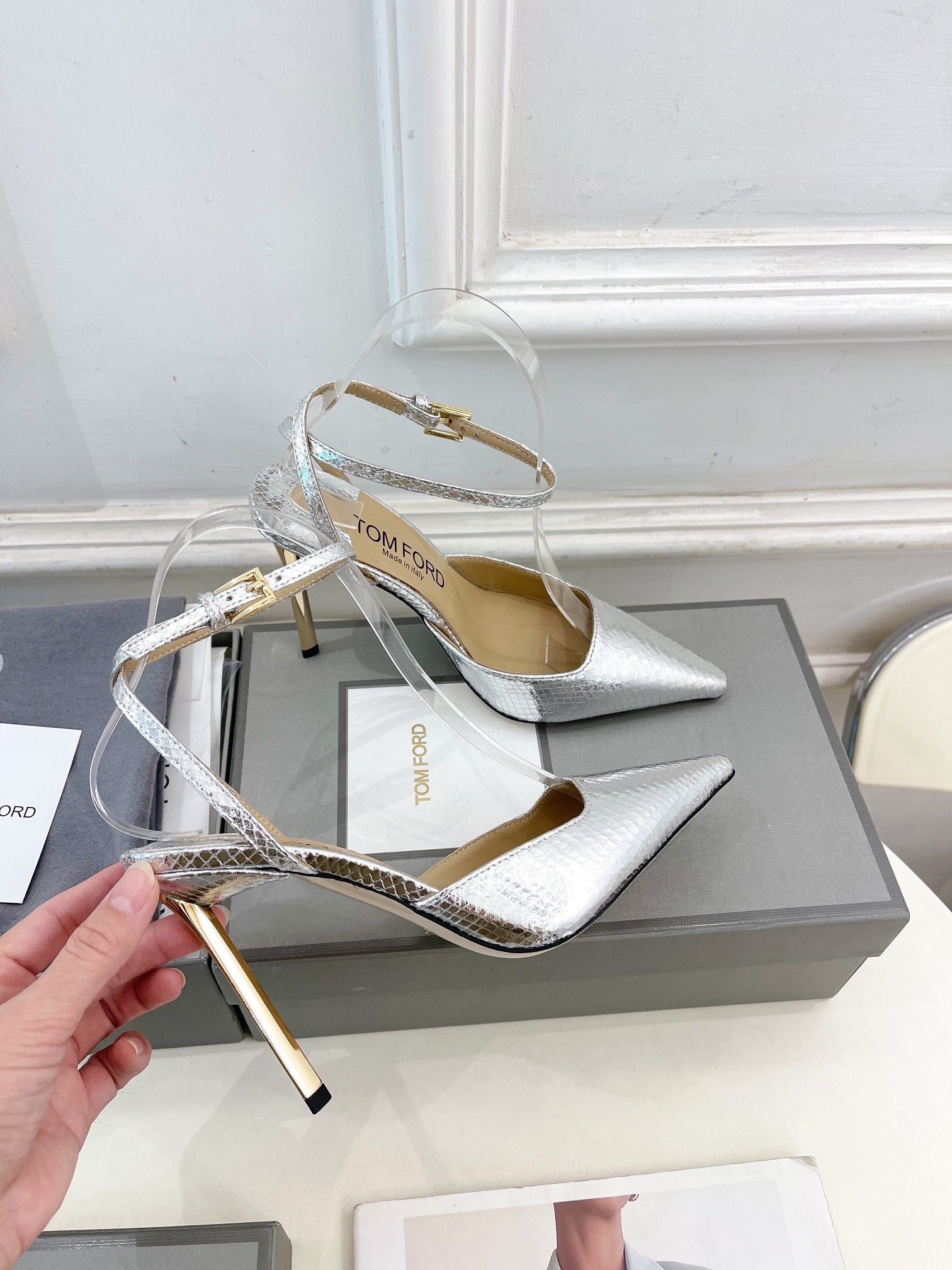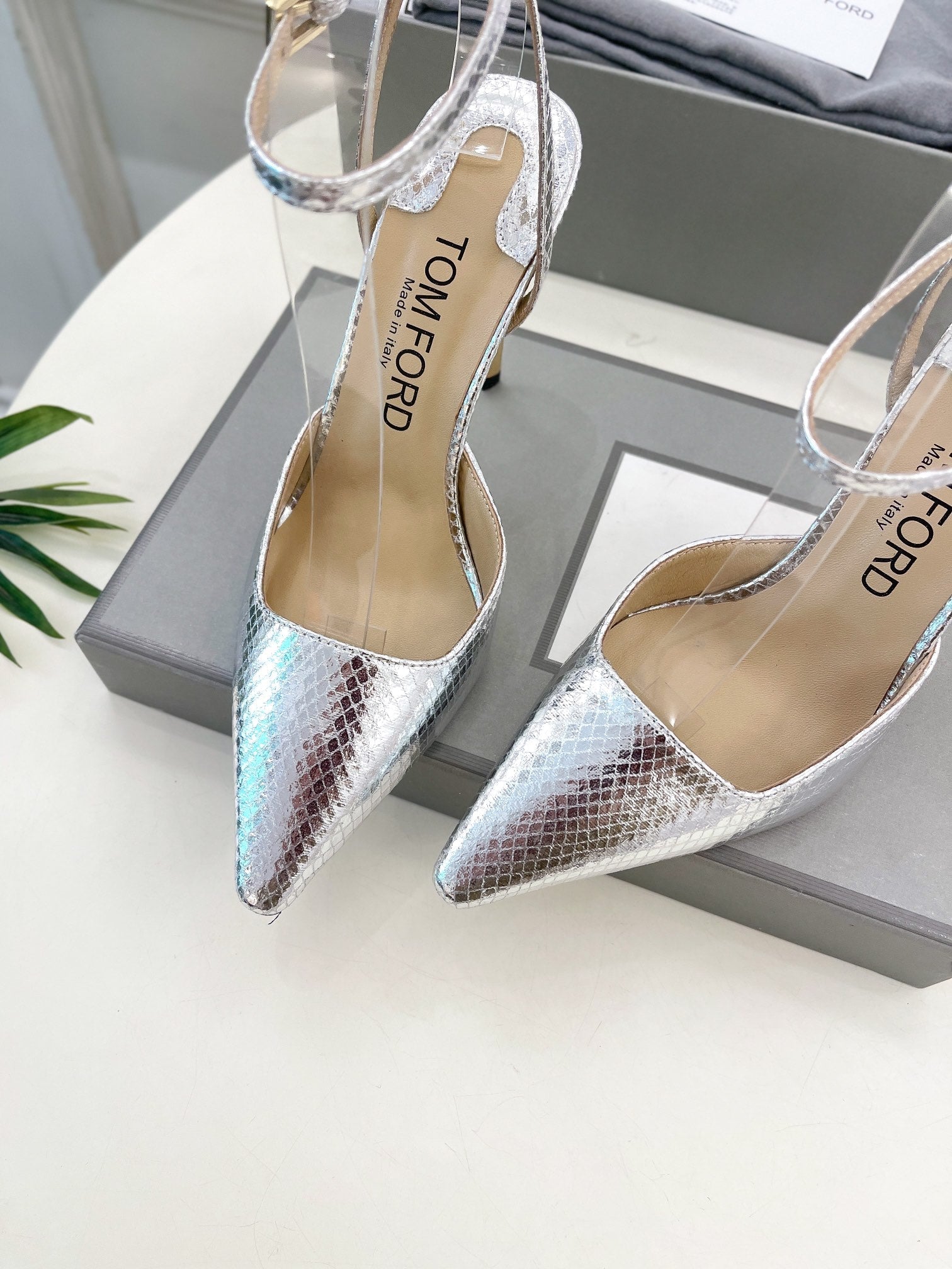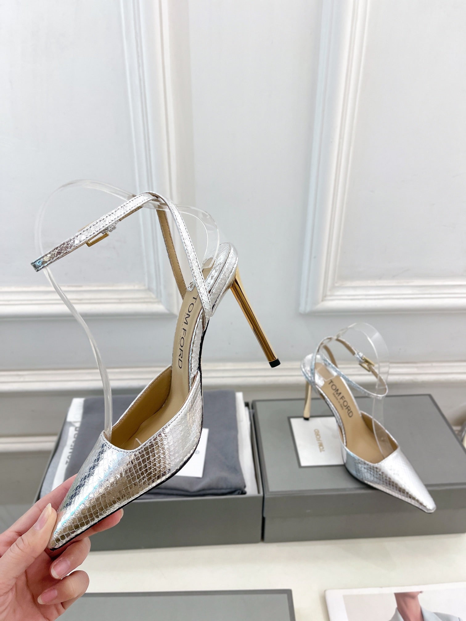 HIGH SLINGBACKS 10 CM IN SILVER SNAKE-PATTERN CALFSKIN