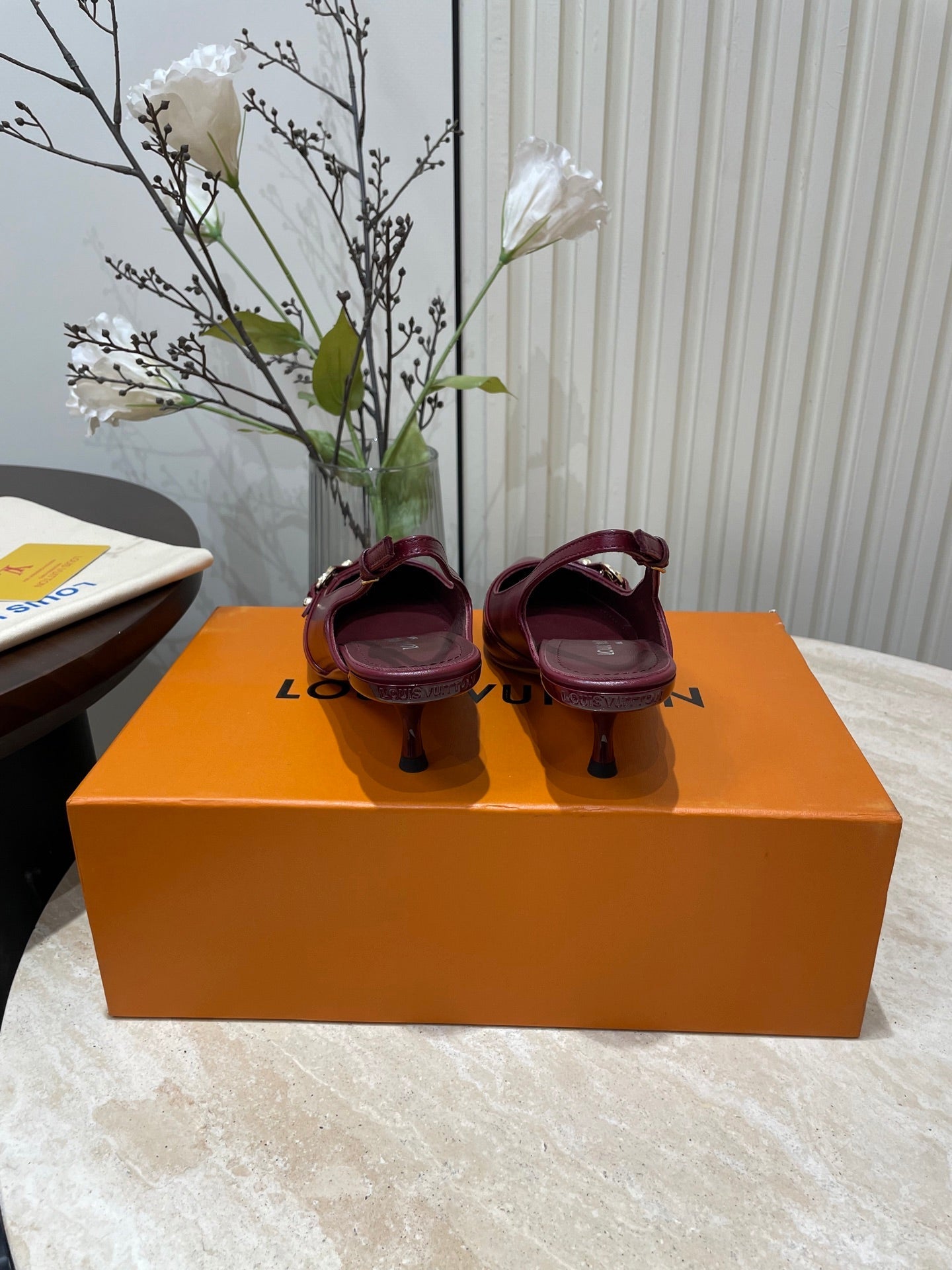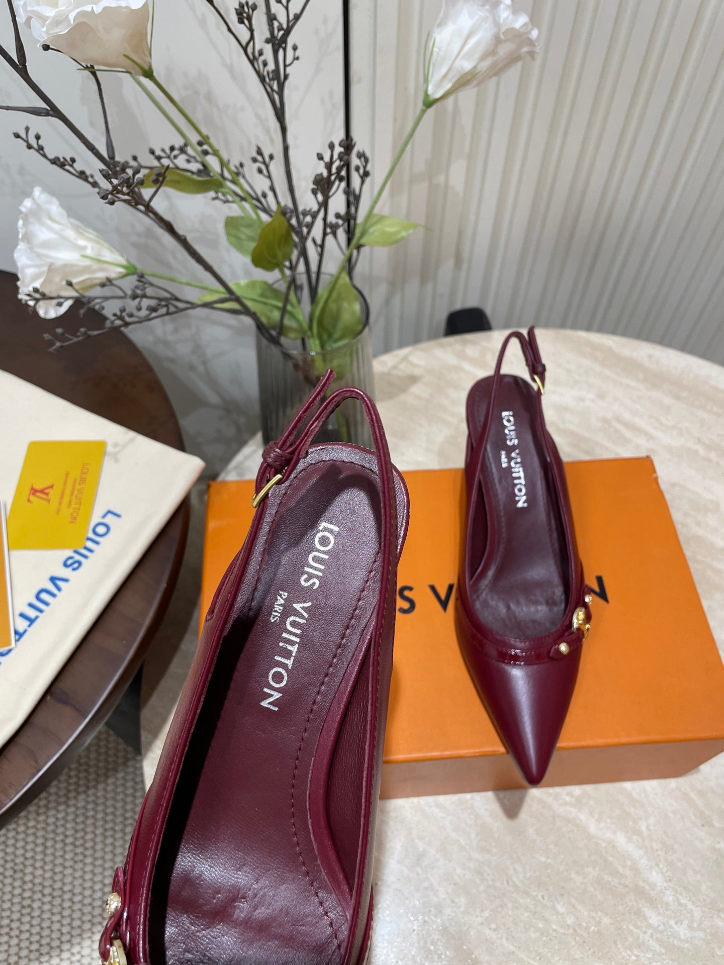 HIGH SLINGBACKS 5 CM IN BURGUNDY RED CALFSKIN