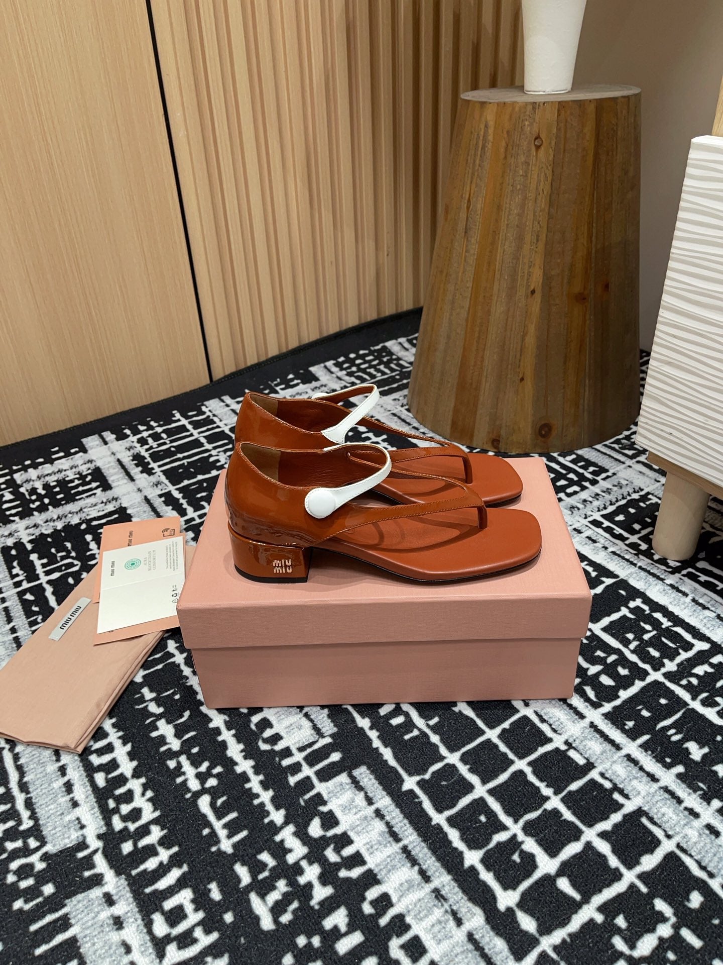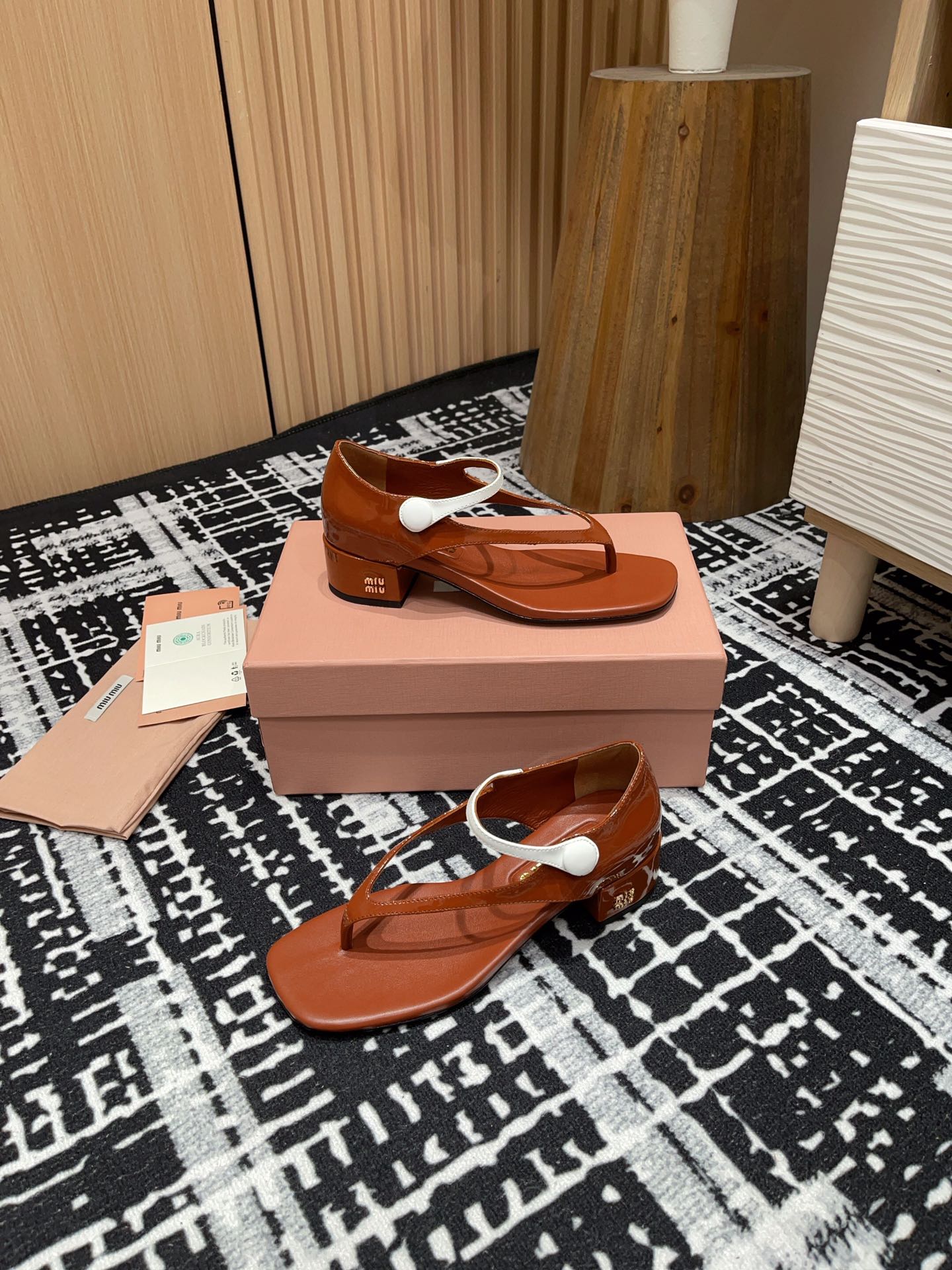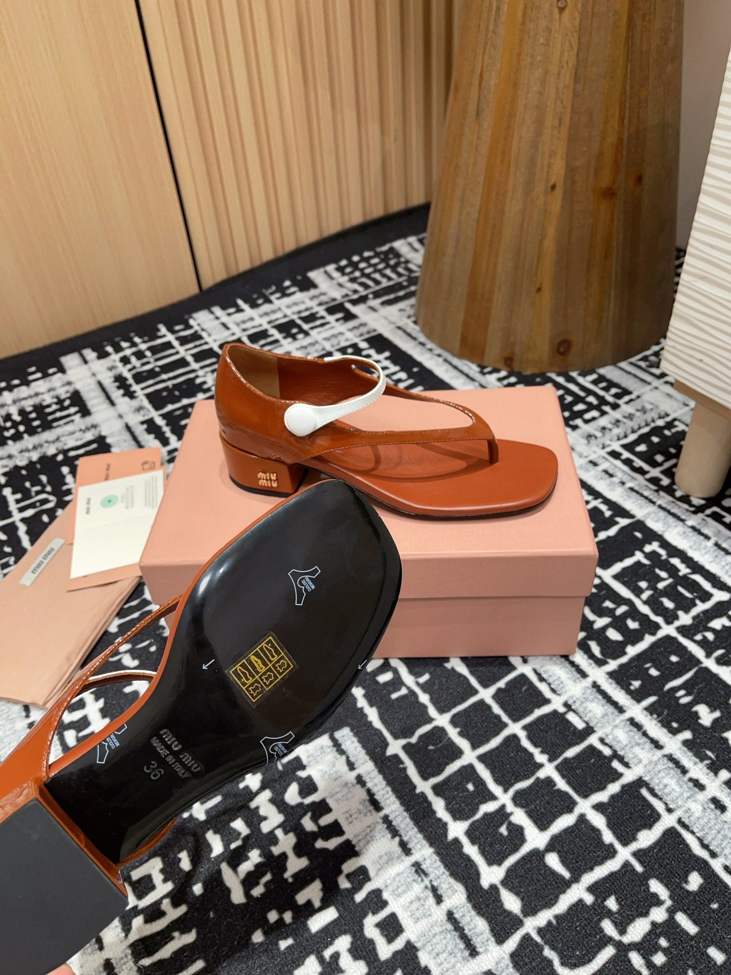 HIGH THONG SANDALS WITH WHITE STRAP IN RED BROWN GLOSSY LAMBSKIN
