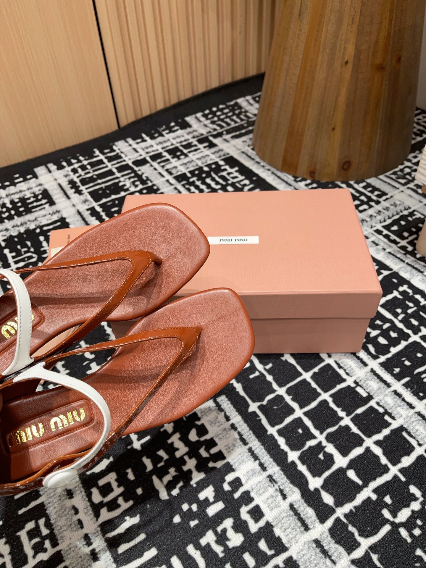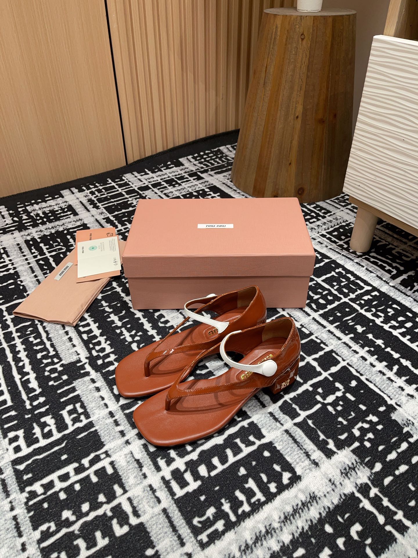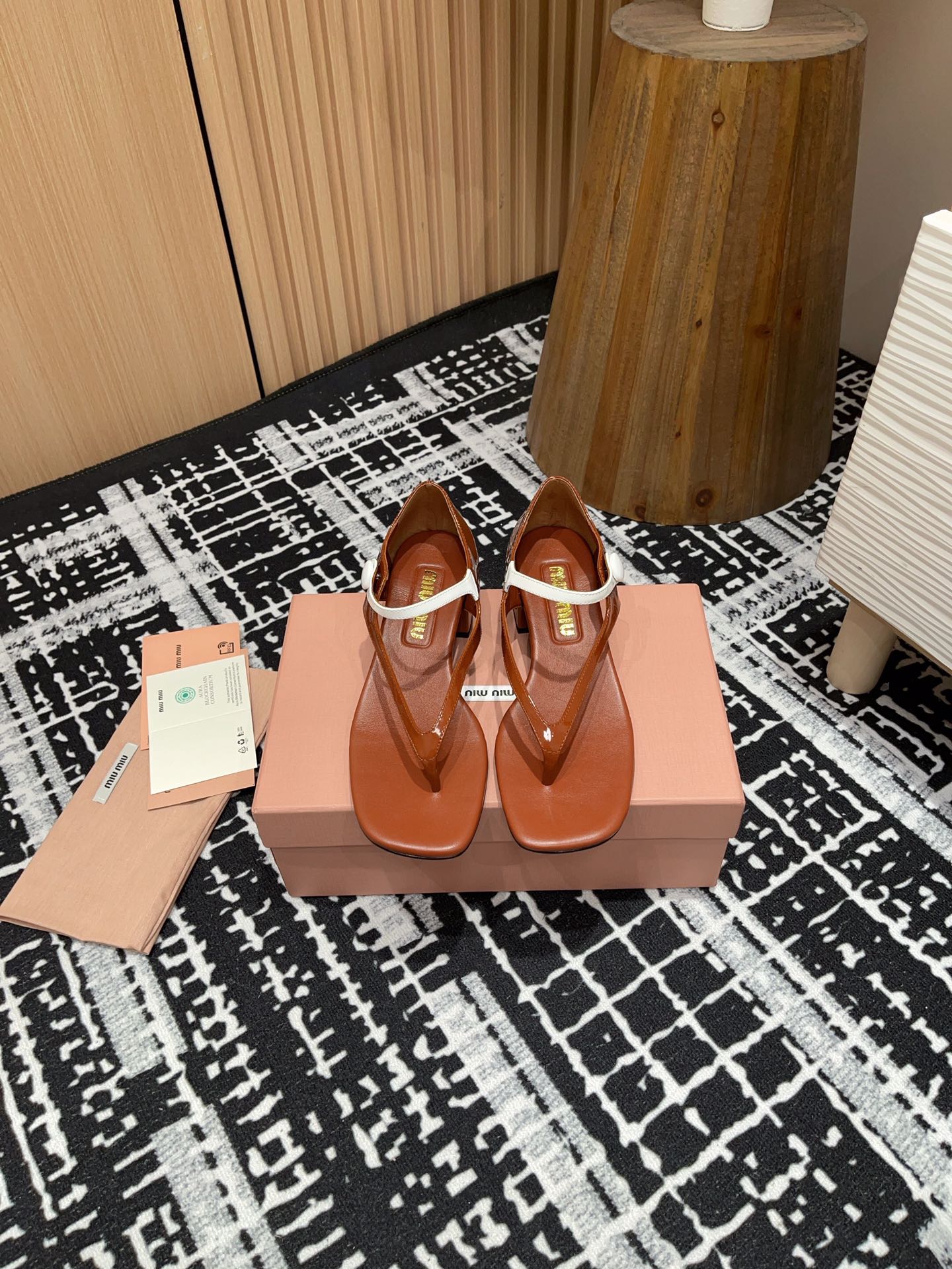 HIGH THONG SANDALS WITH WHITE STRAP IN RED BROWN GLOSSY LAMBSKIN