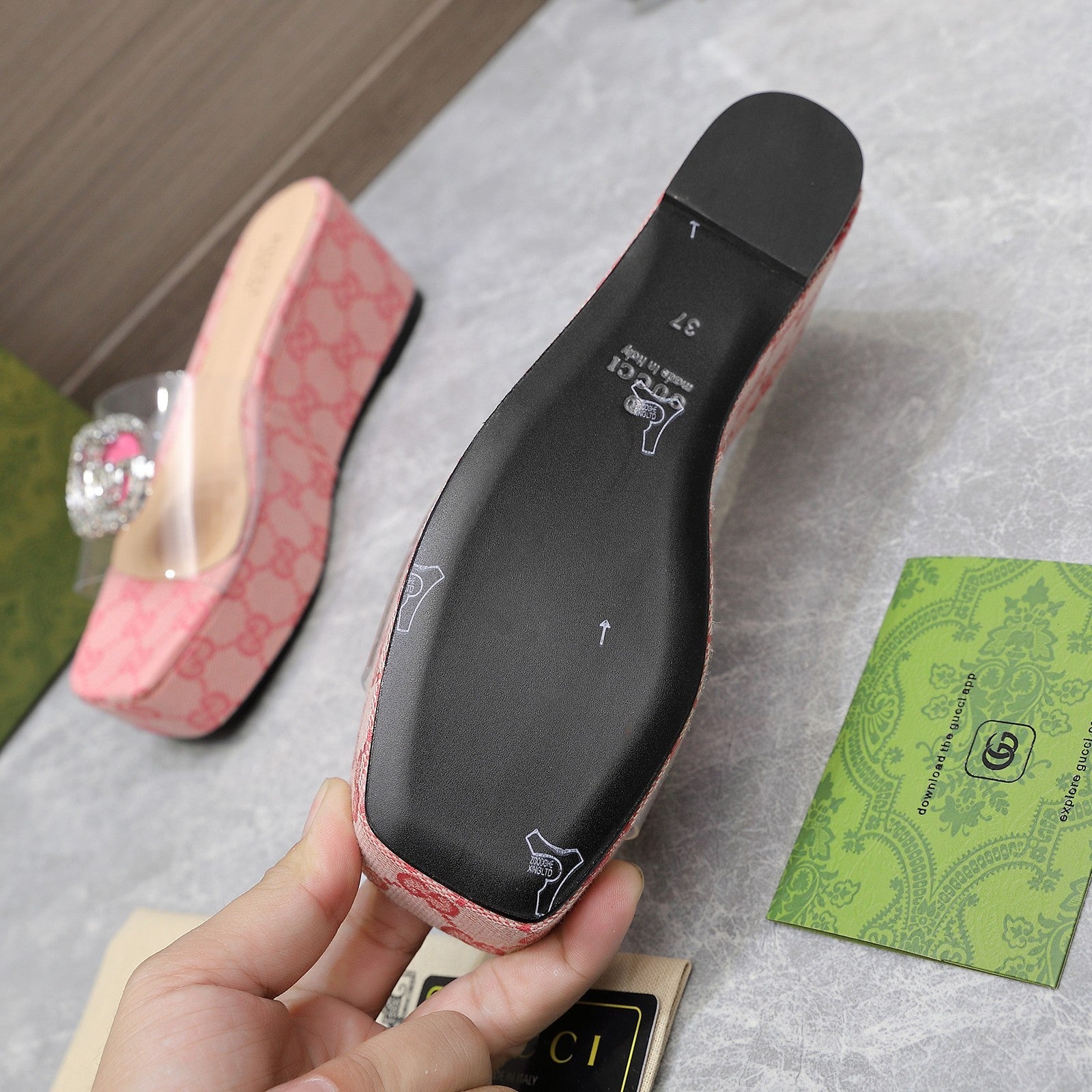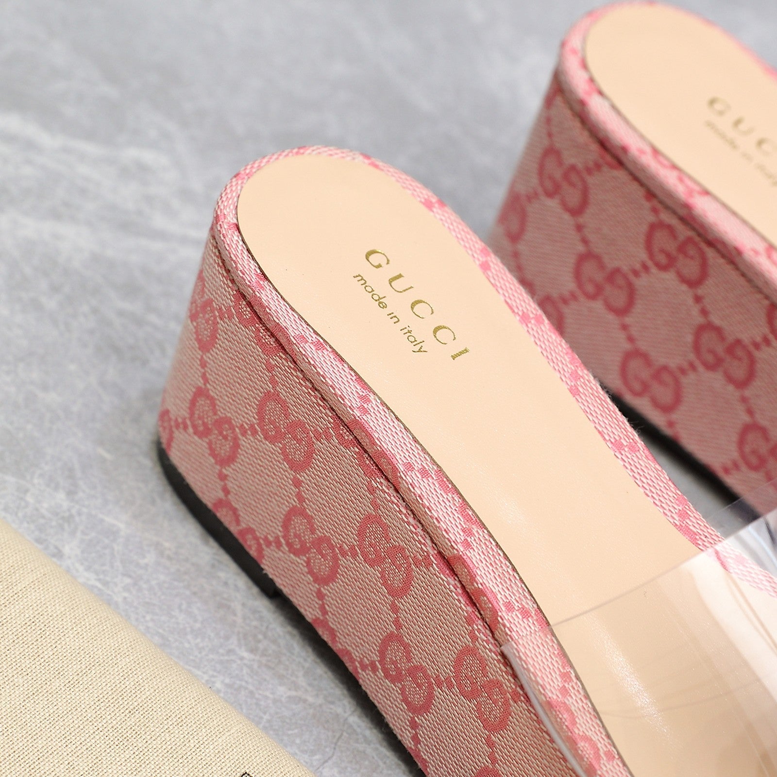 HIGH WEDGE PLATFORM IN LIGHT PINK CANVAS WITH DOUBLE CRYSTAL G BUCKLE