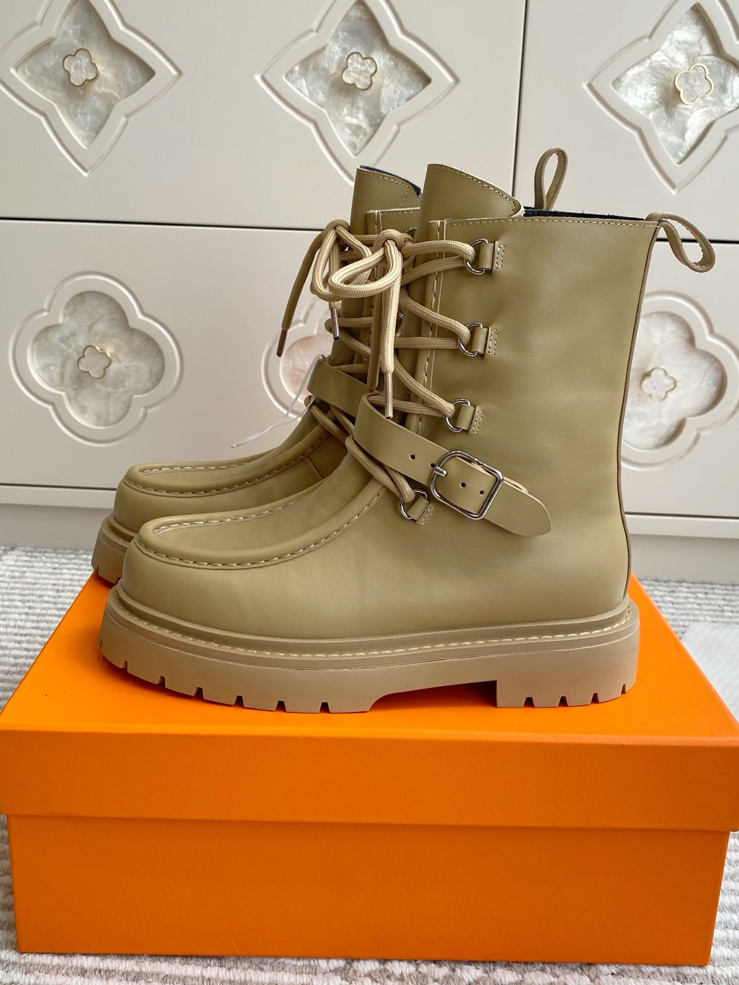 HM 25S ANKLE BOOTS IN WARM BEIGE GOLD LAMBSKIN