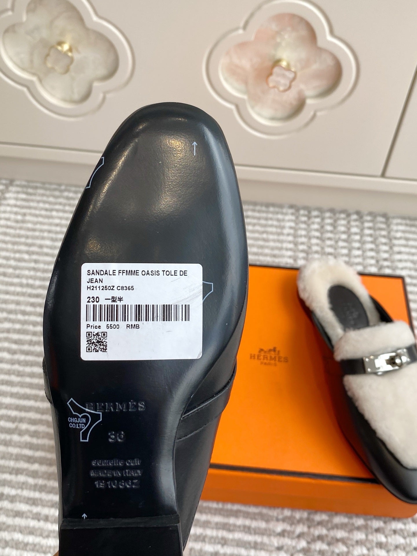 HM 25S CATENA MULE IN BEIGE SHEARLING AND BLACK LAMBSKIN WITH SILVER HARDWARE