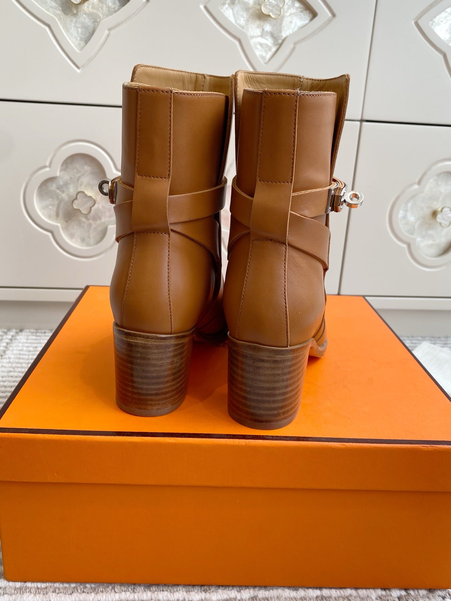 HM 25S FRENCHIE 50 ANKLE BOOT 50 MM IN BROWN LAMBSKIN WITH SILVER HARDWARE