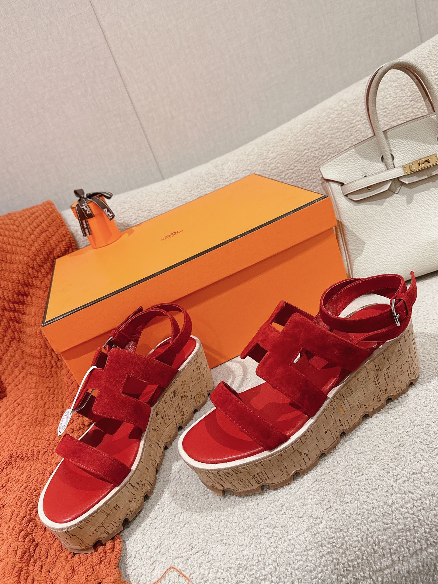HM 25S HAVANE WEDGE SANDAL IN RED SUEDE