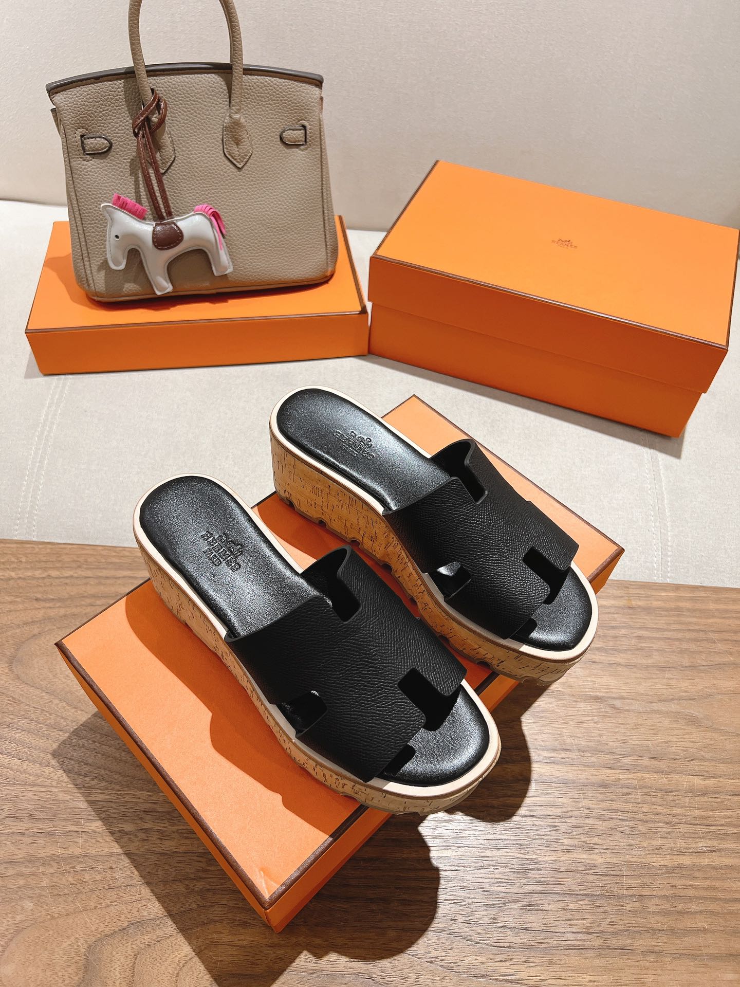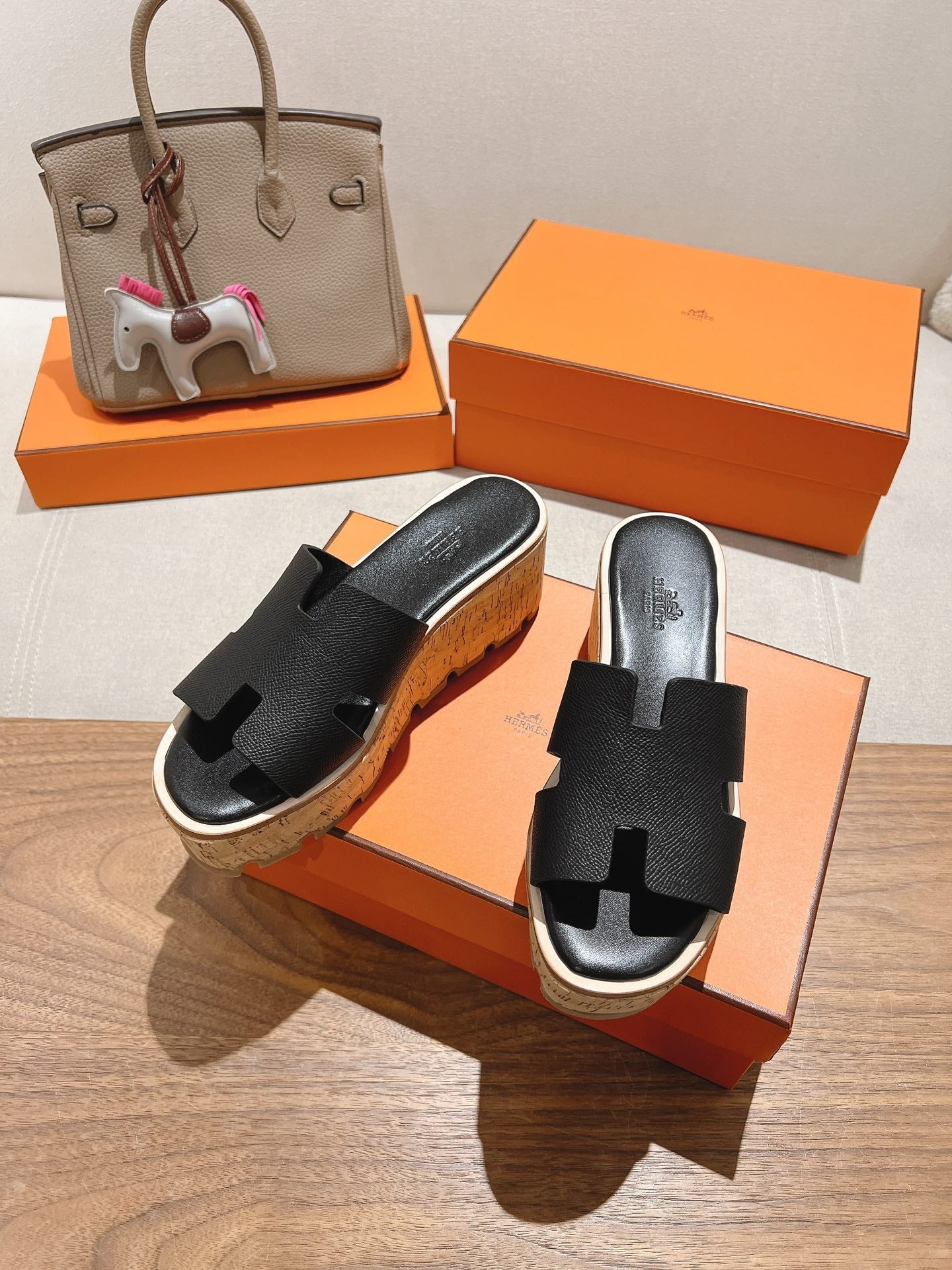 HM 25S HIGH WEDGE SANDALS IN BLACK LAMBSKIN STYLE 23