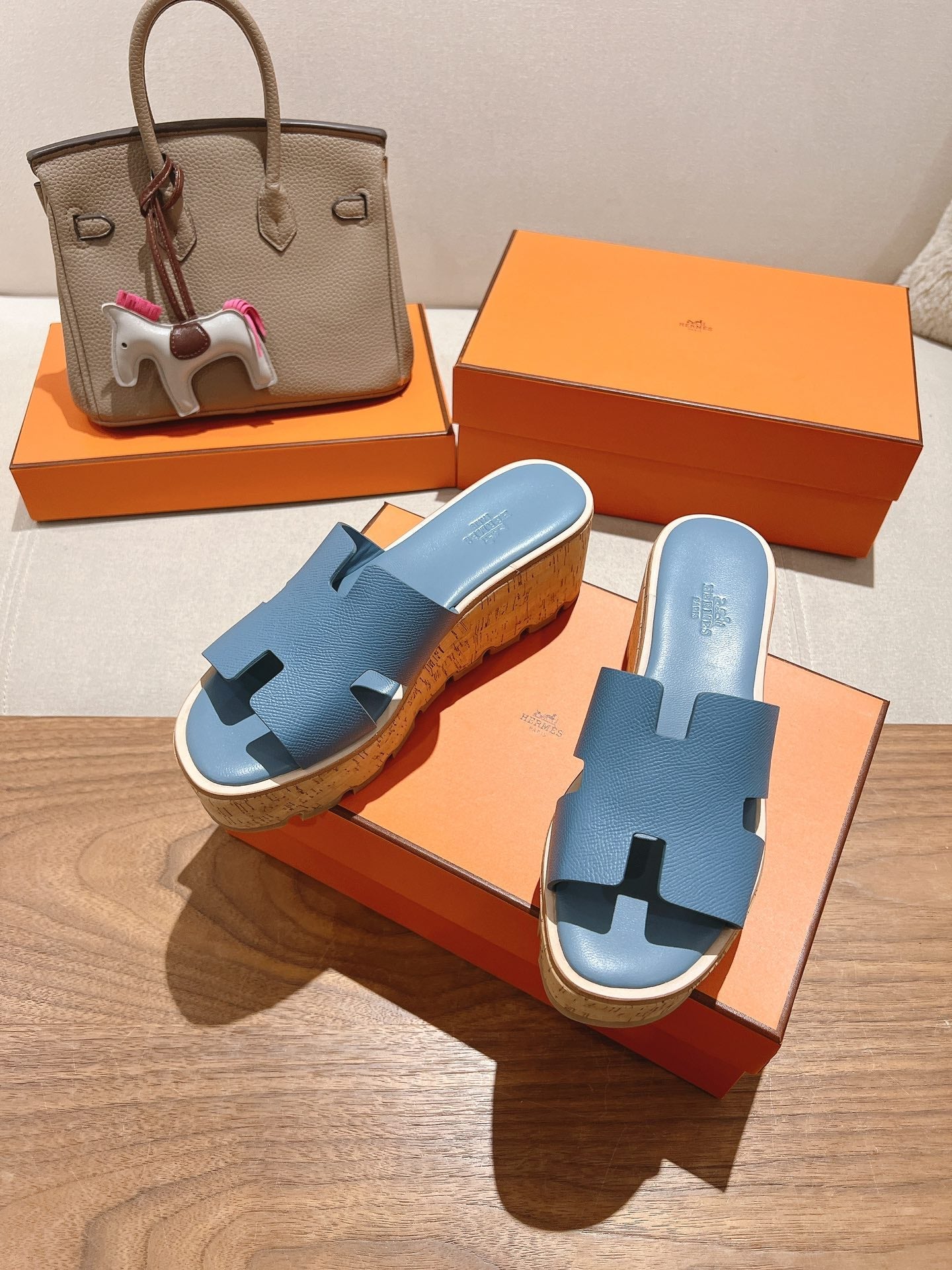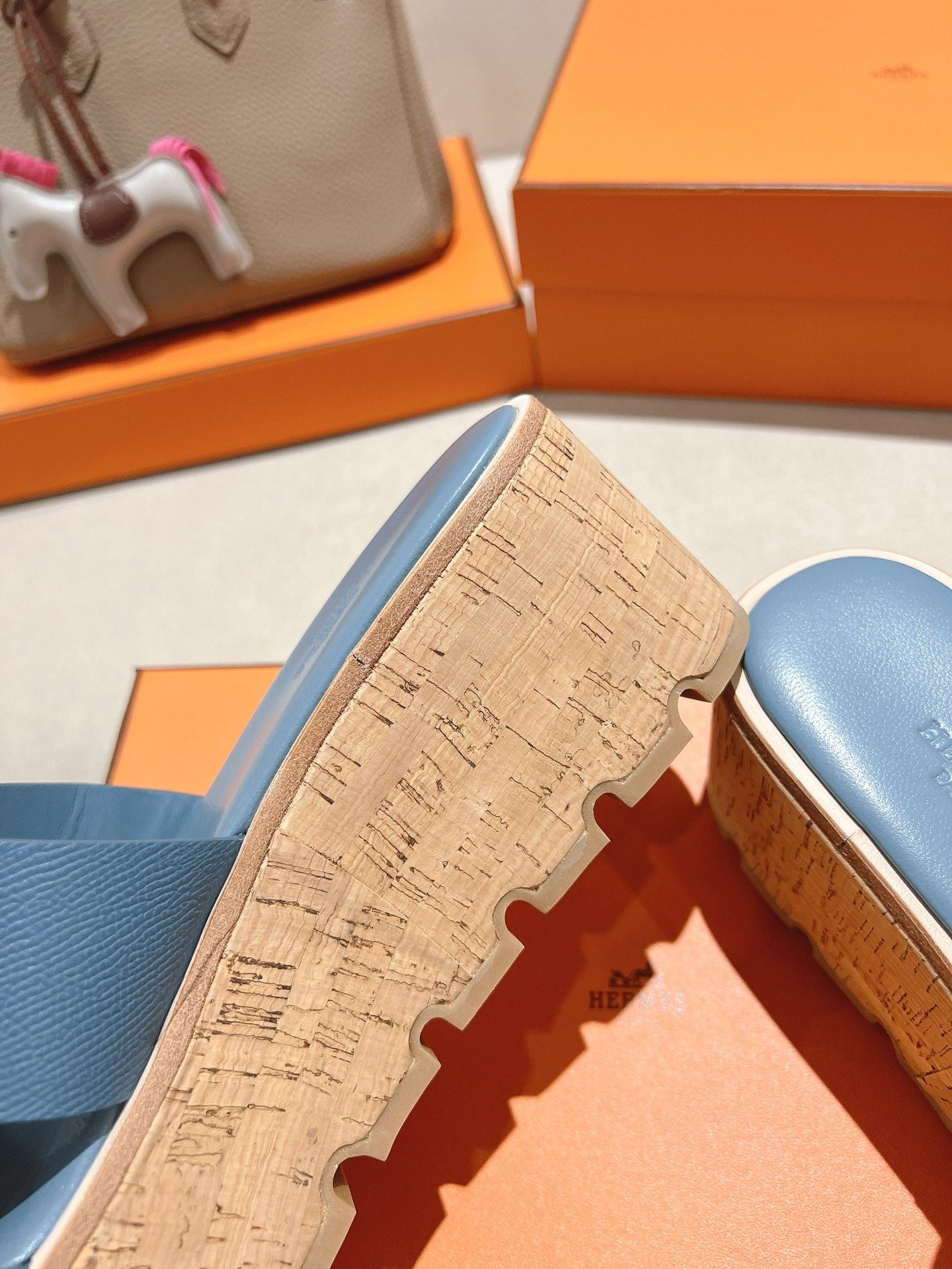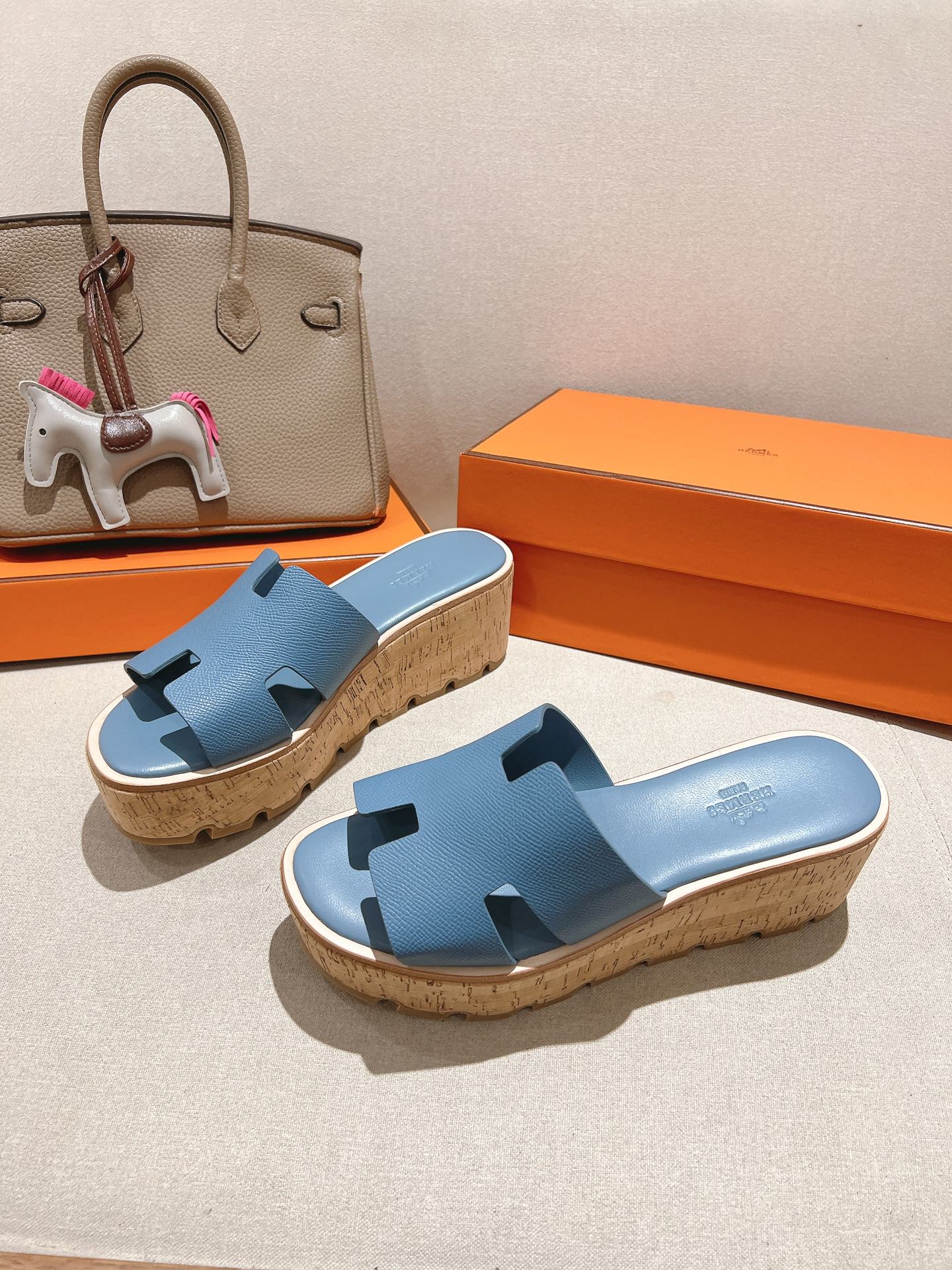 HM 25S HIGH WEDGE SANDALS IN BLUE LAMBSKIN STYLE 10