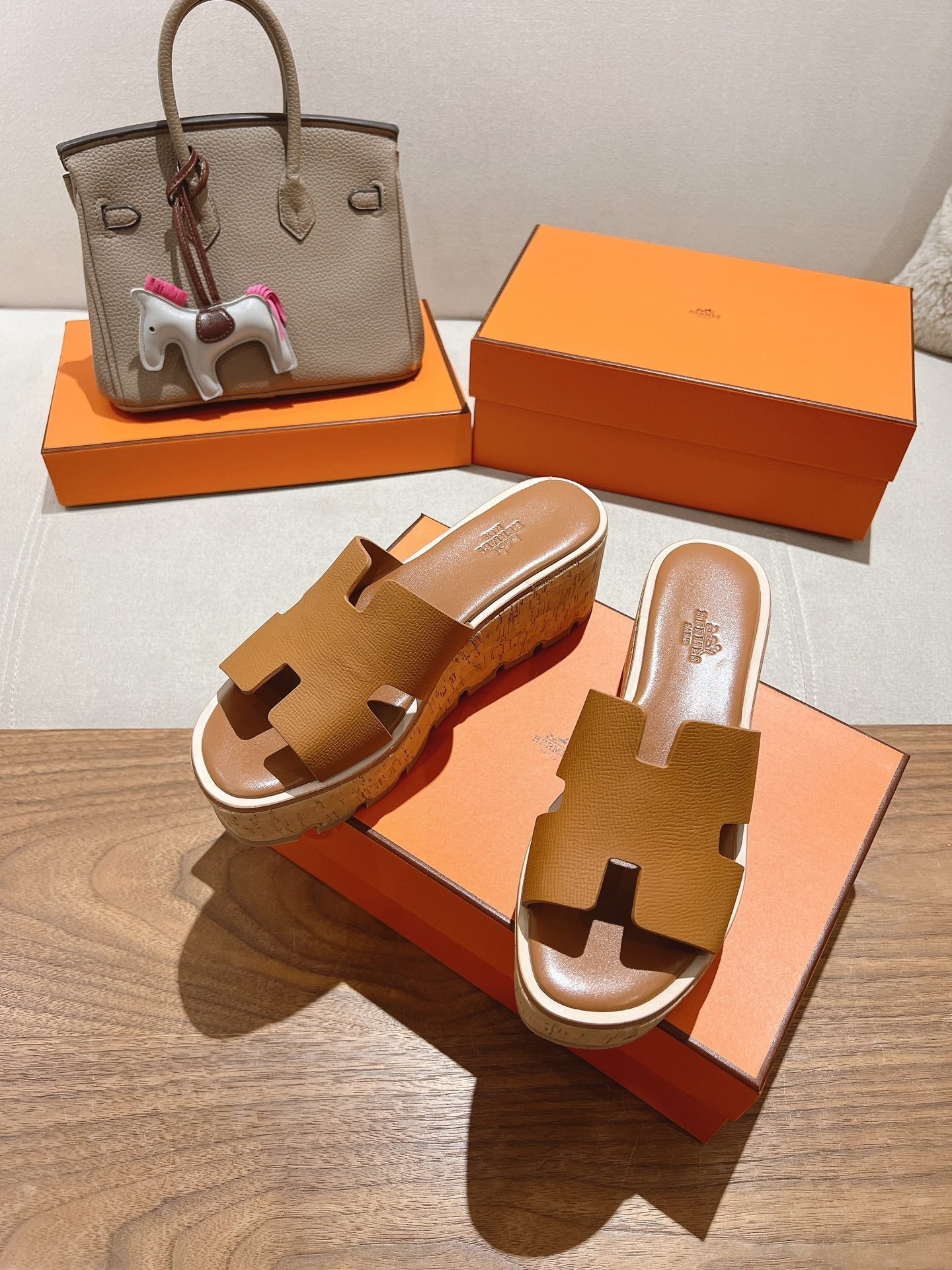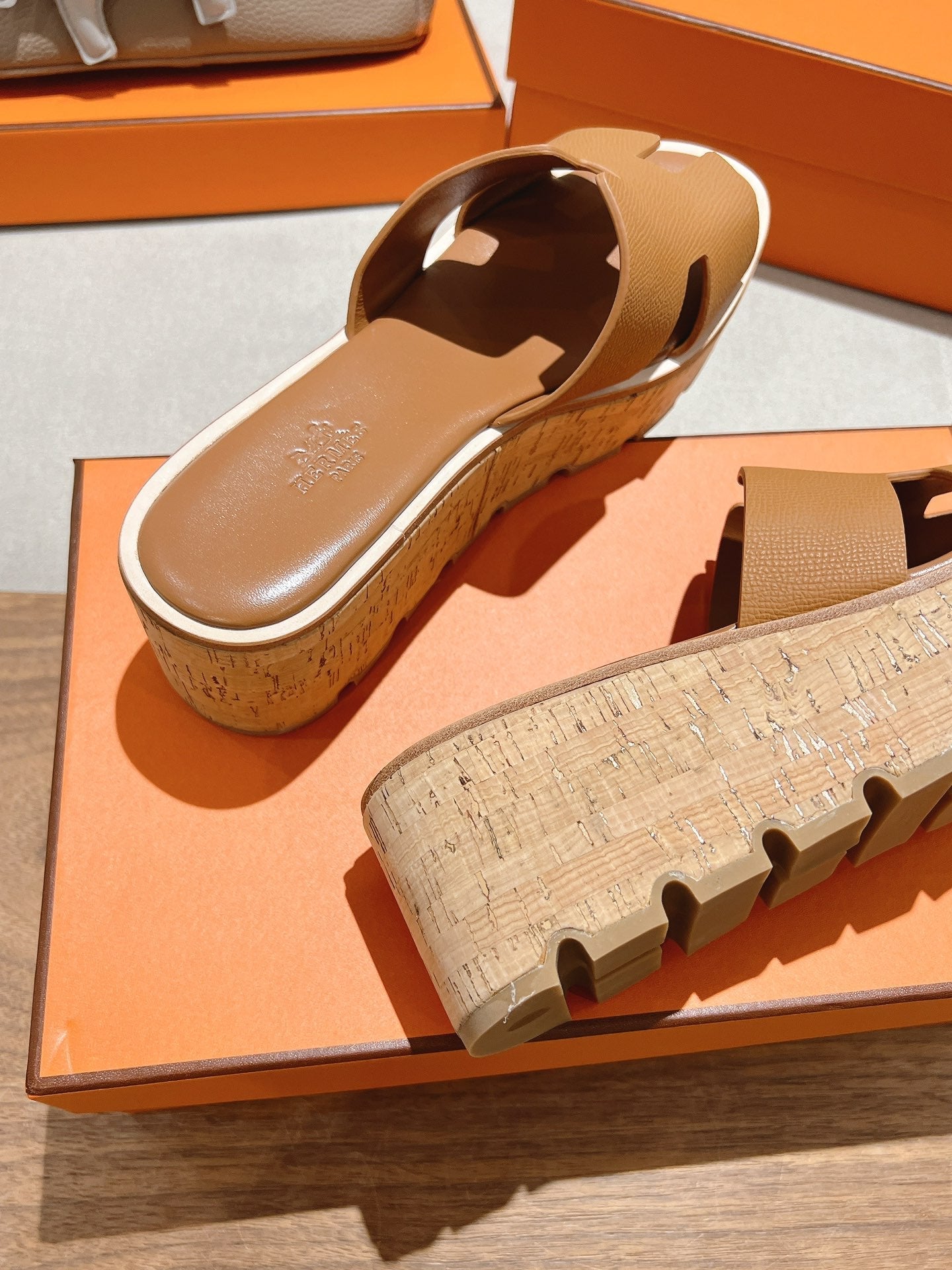 HM 25S HIGH WEDGE SANDALS IN BROWN LAMBSKIN STYLE 6