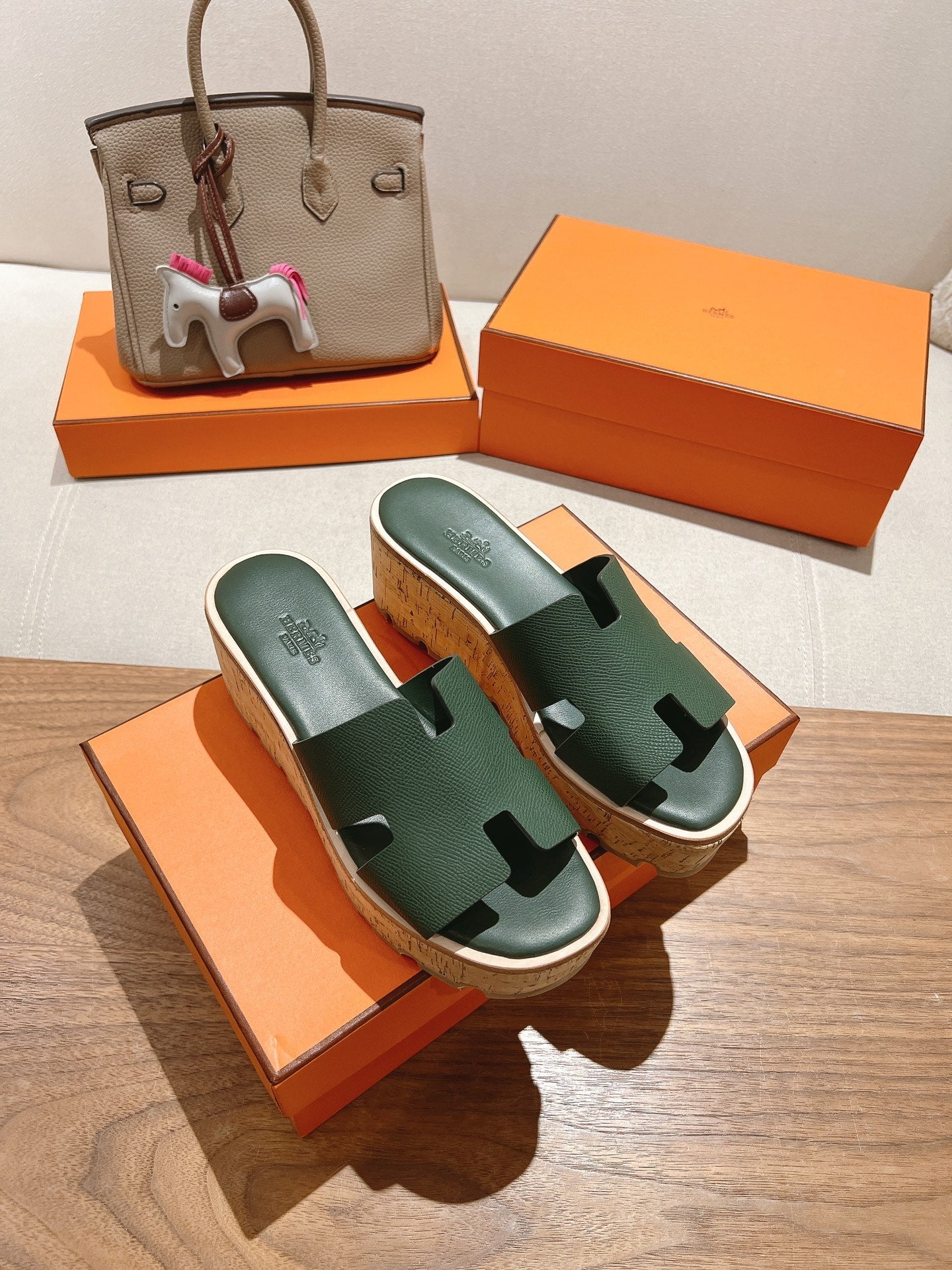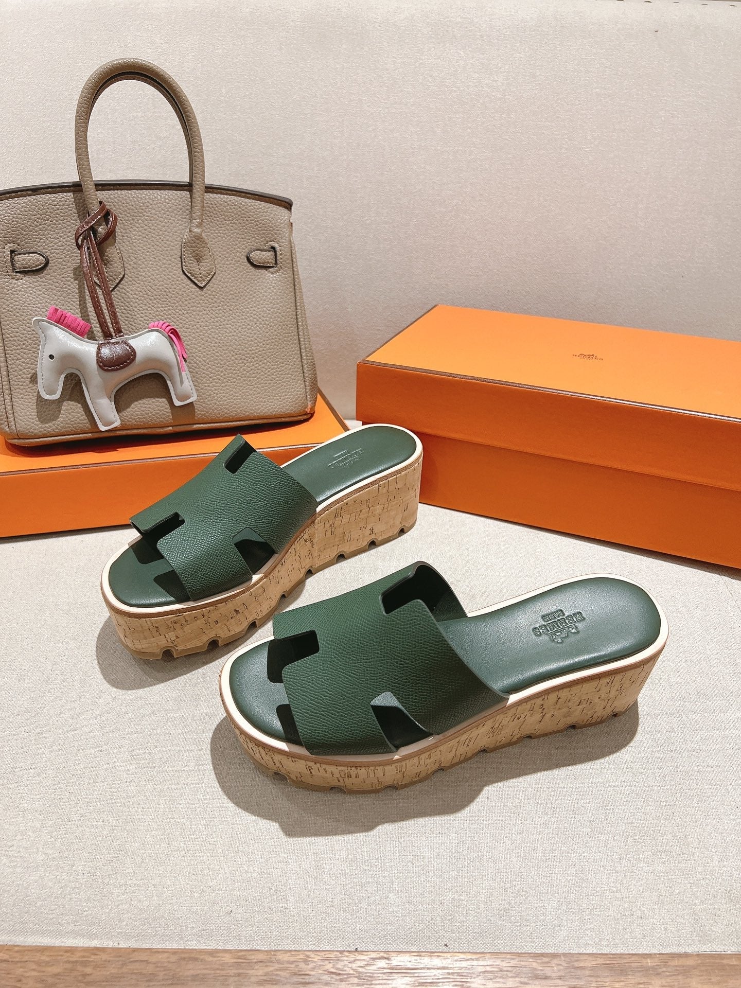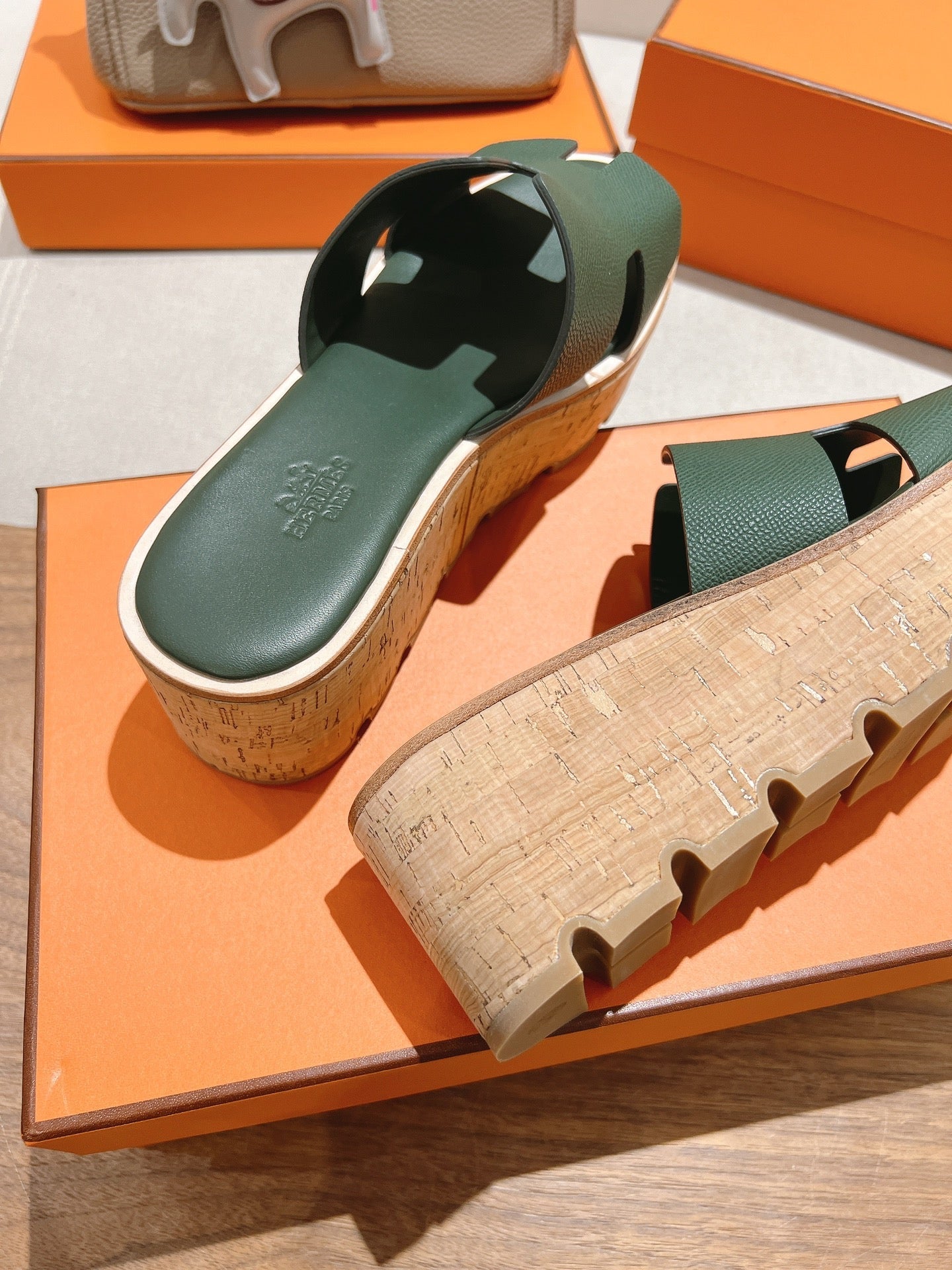 HM 25S HIGH WEDGE SANDALS IN DARK MOSS GREEN LAMBSKIN STYLE 32
