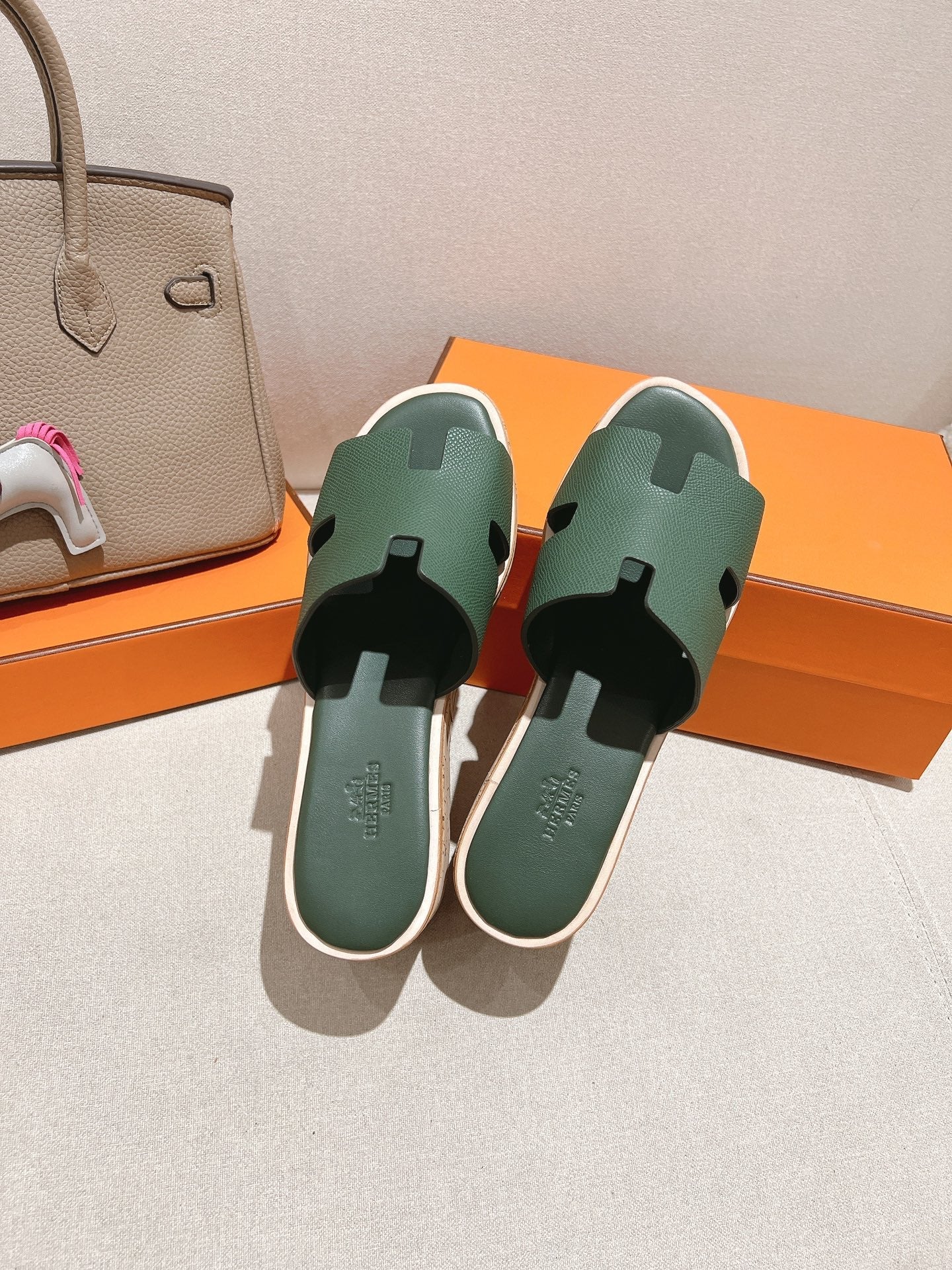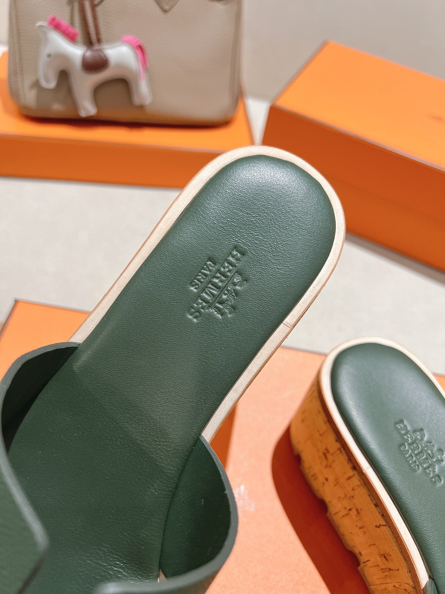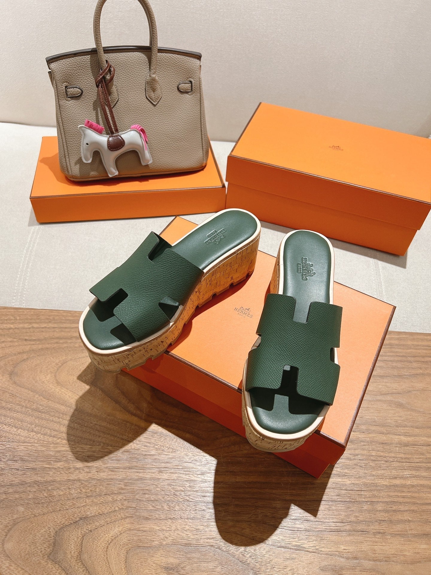 HM 25S HIGH WEDGE SANDALS IN DARK MOSS GREEN LAMBSKIN STYLE 32