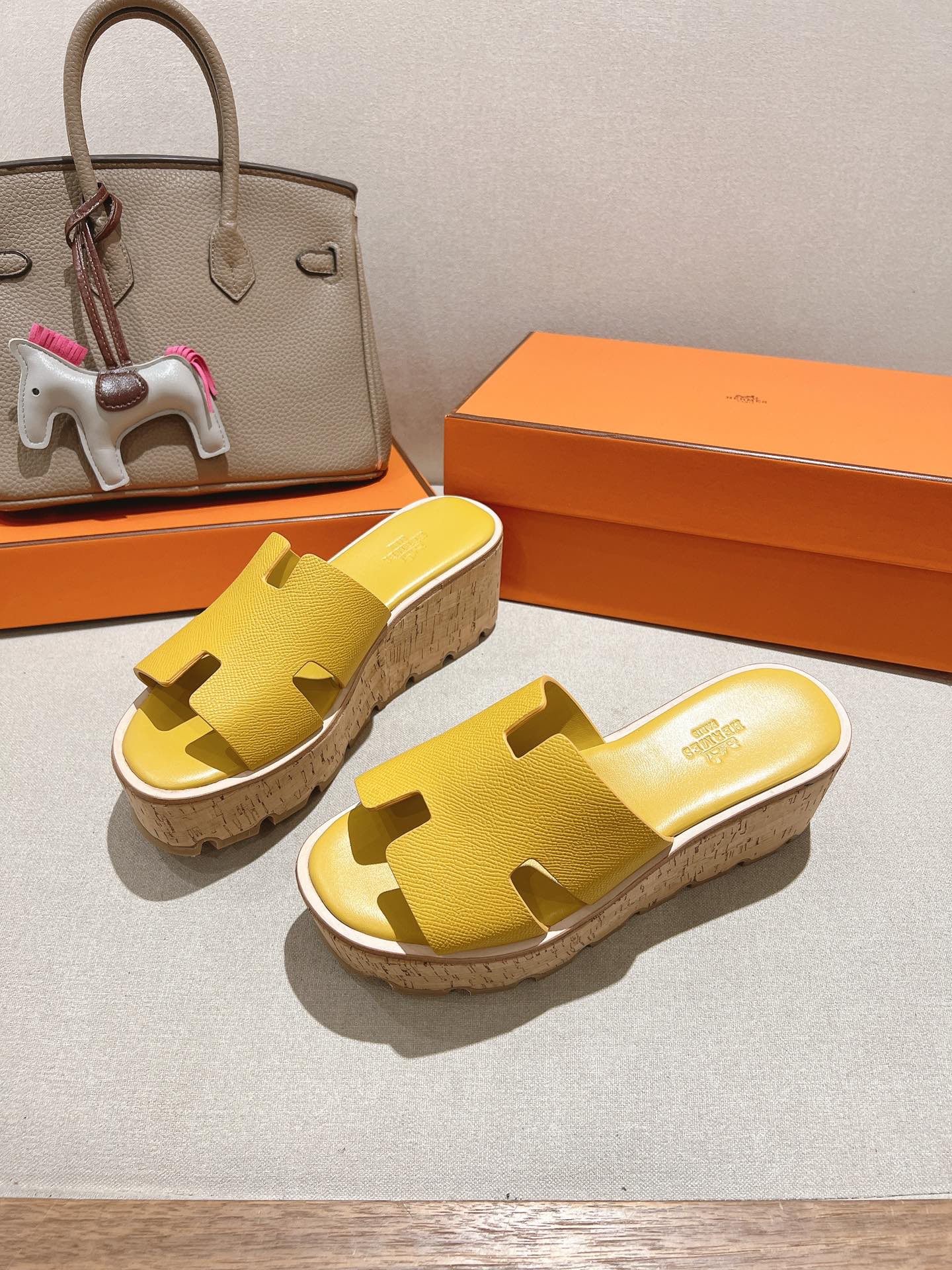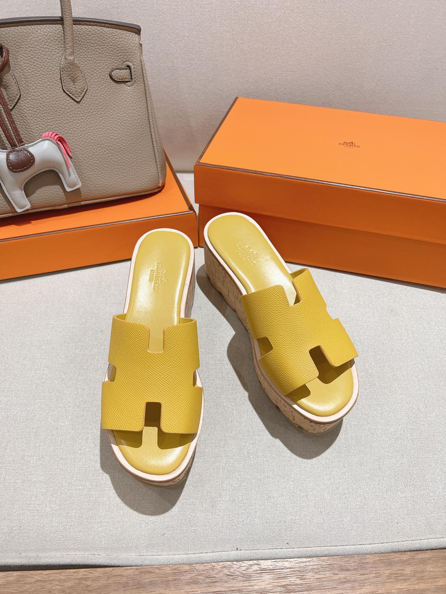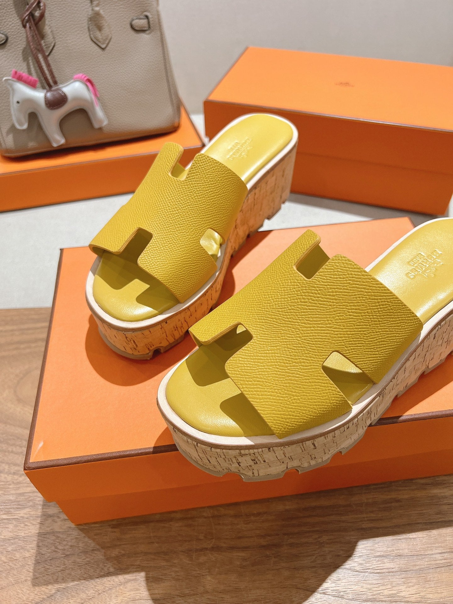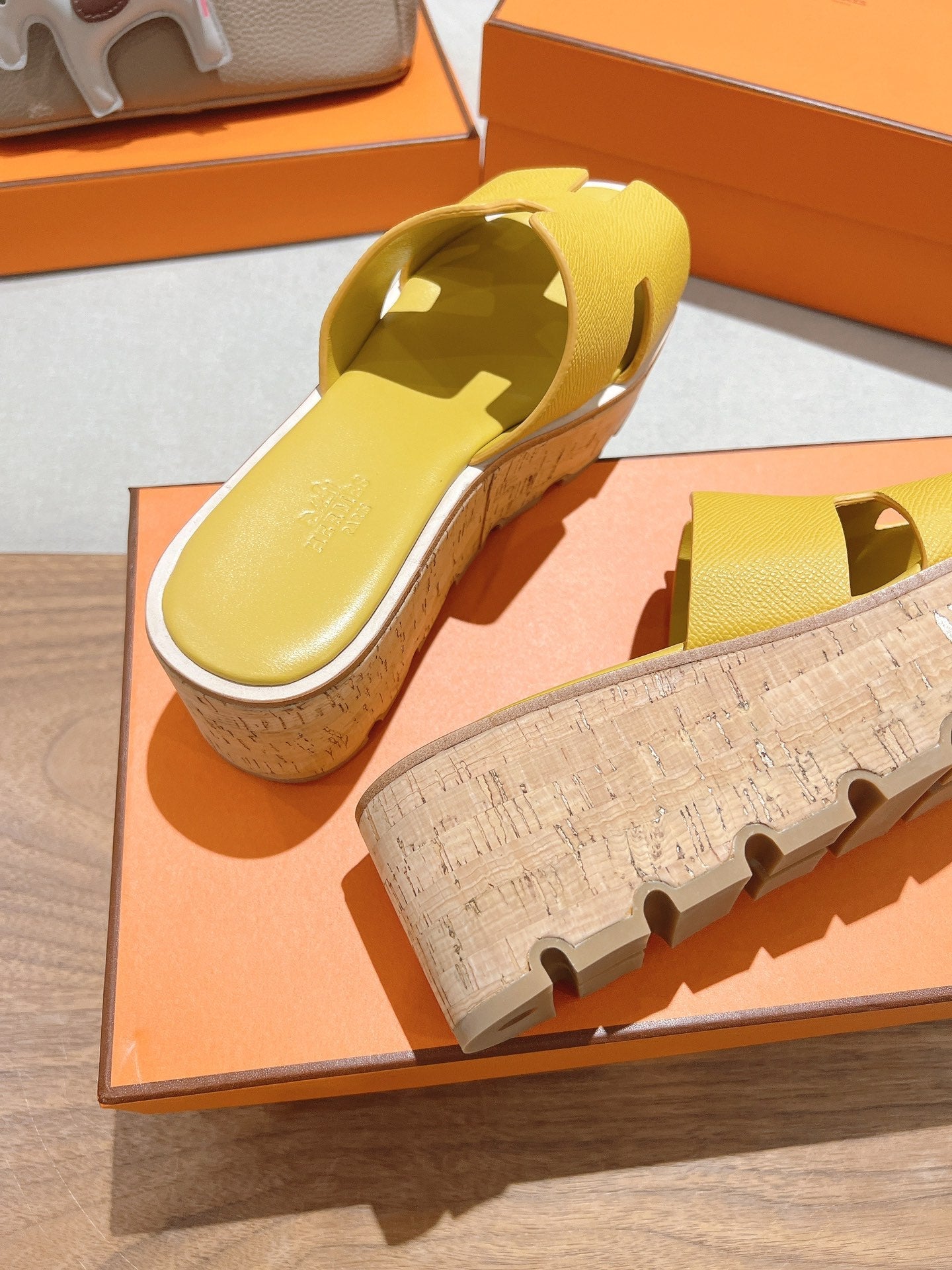 HM 25S HIGH WEDGE SANDALS IN DARK YELLOW LAMBSKIN STYLE 27