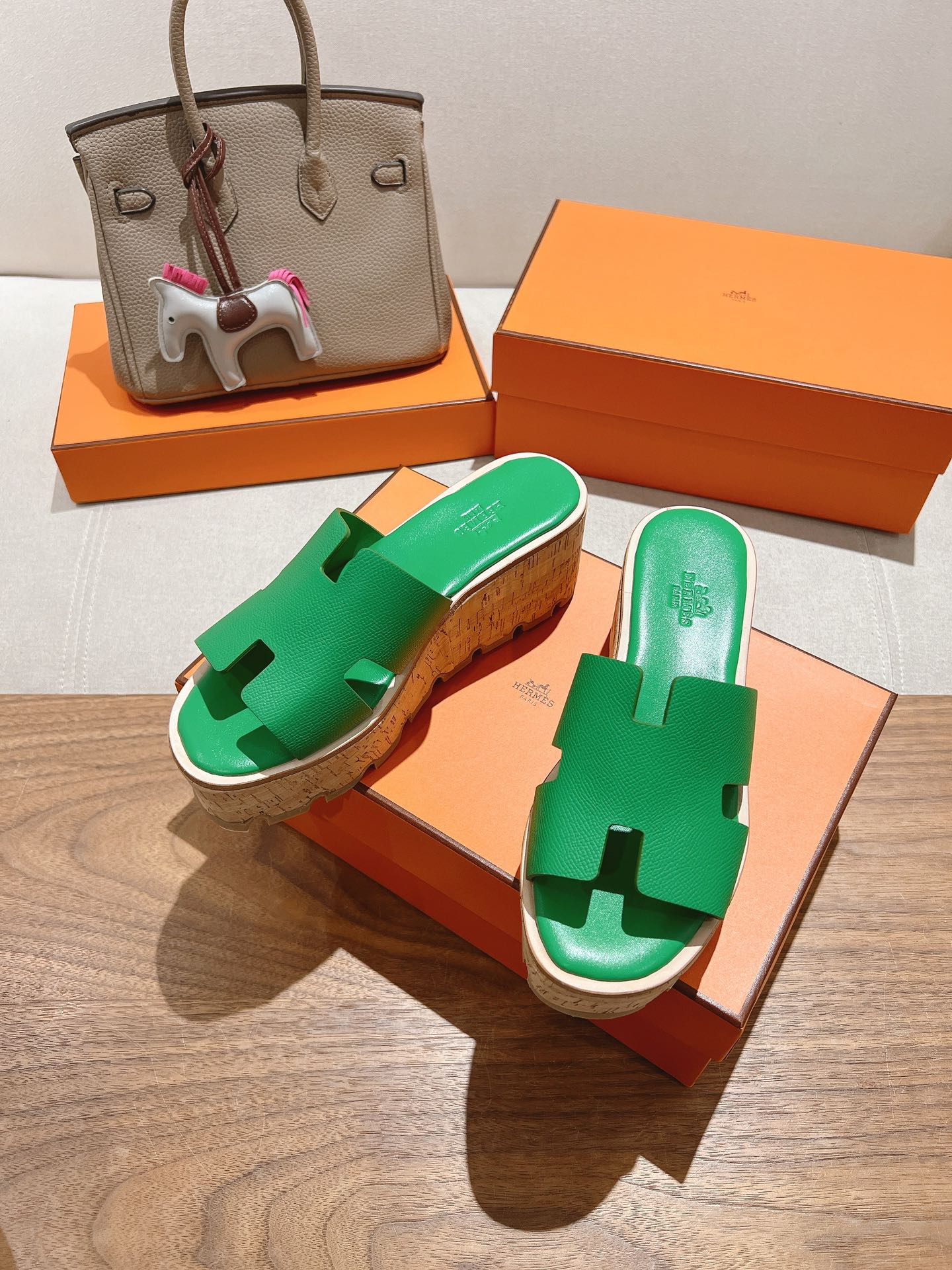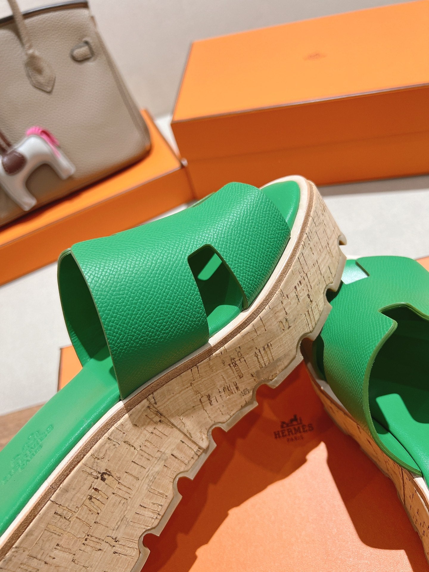 HM 25S HIGH WEDGE SANDALS IN GREEN LAMBSKIN STYLE 25