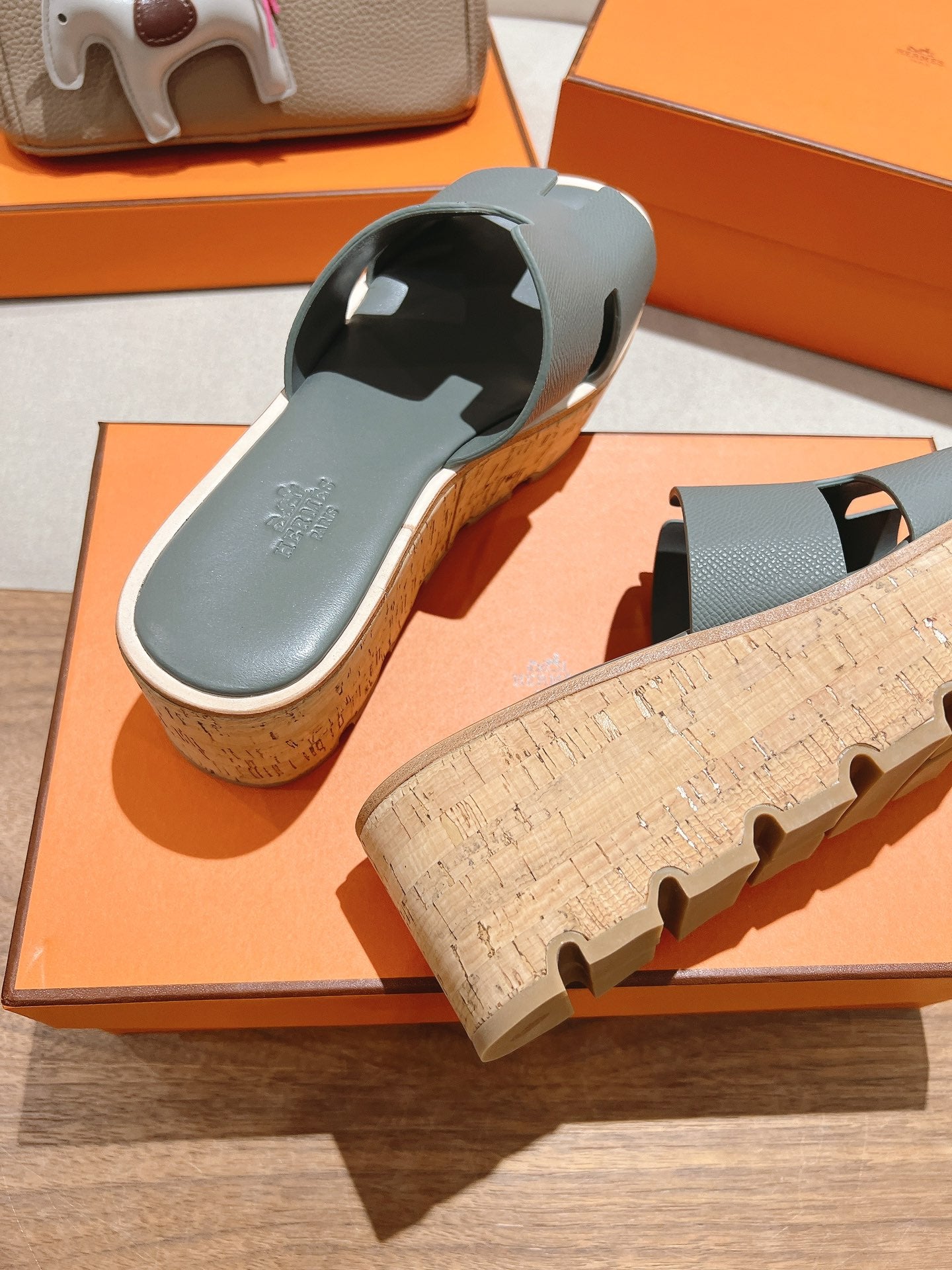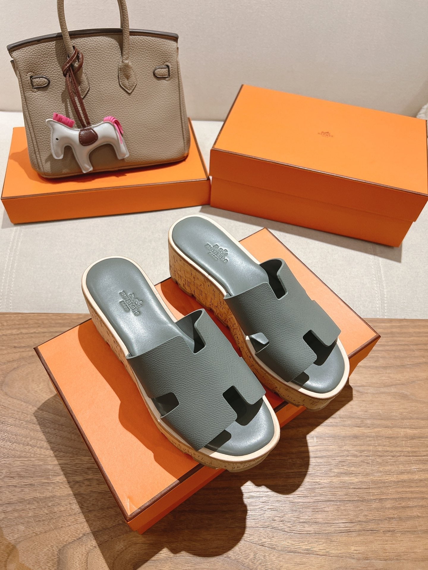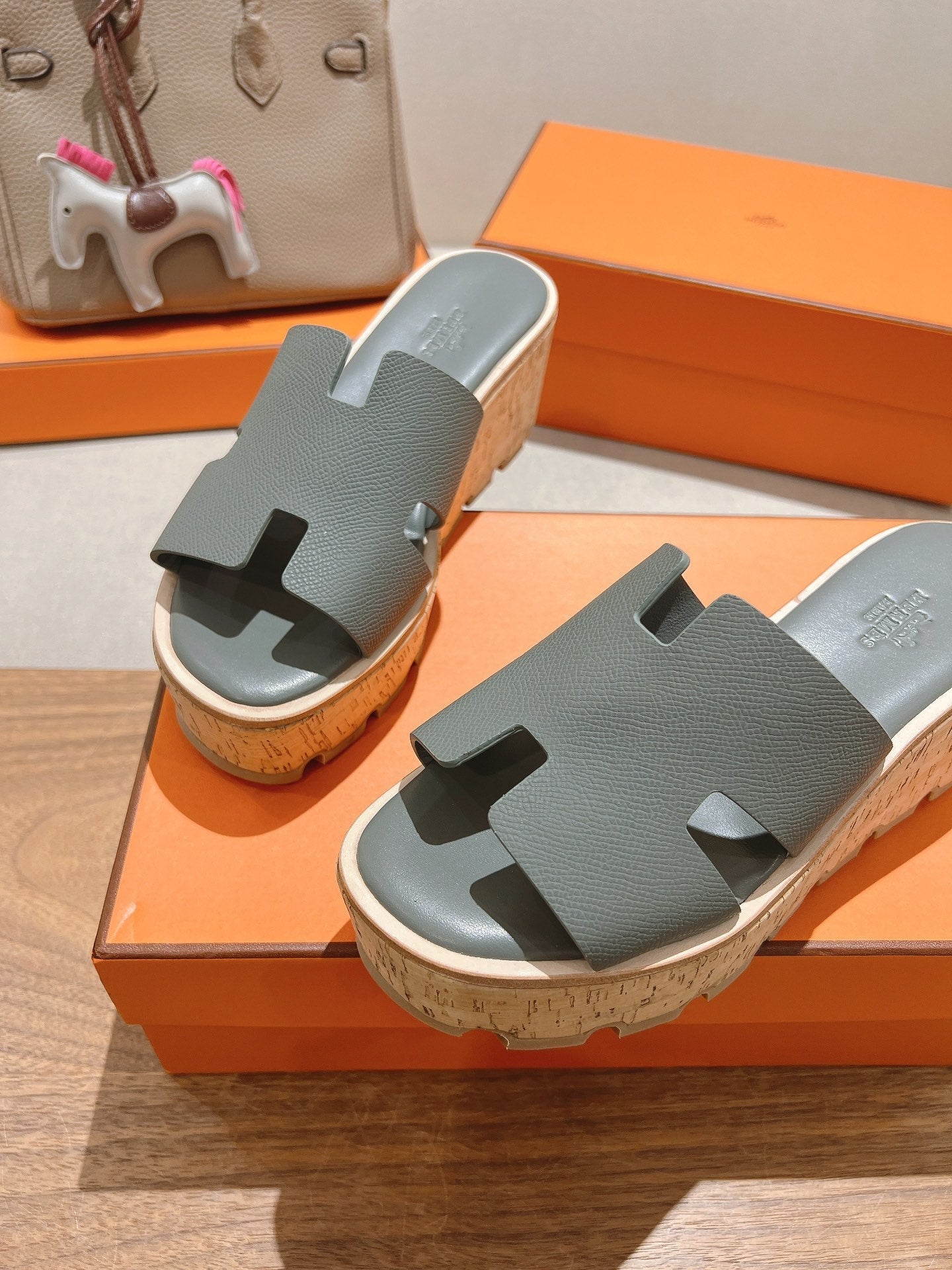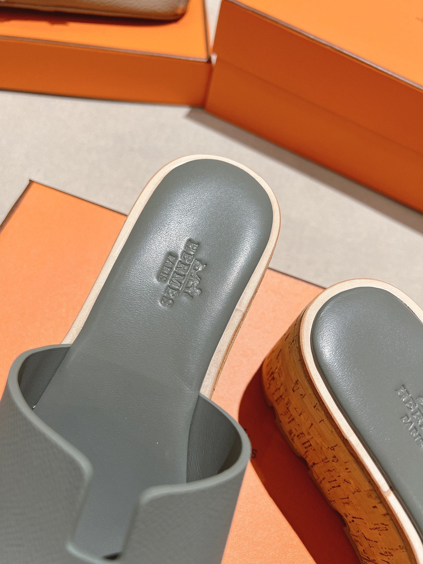 HM 25S HIGH WEDGE SANDALS IN GREY LAMBSKIN STYLE 7