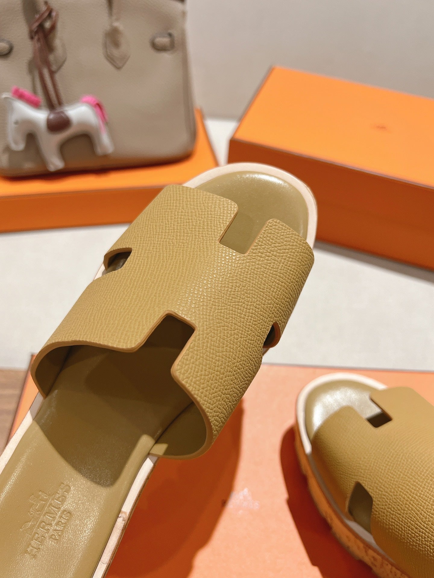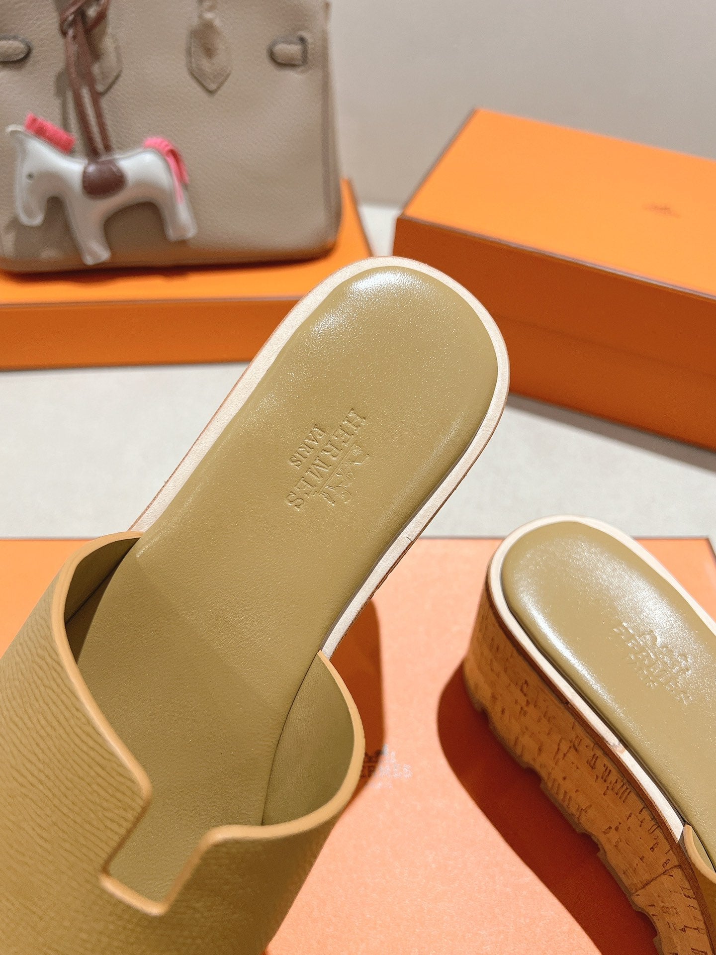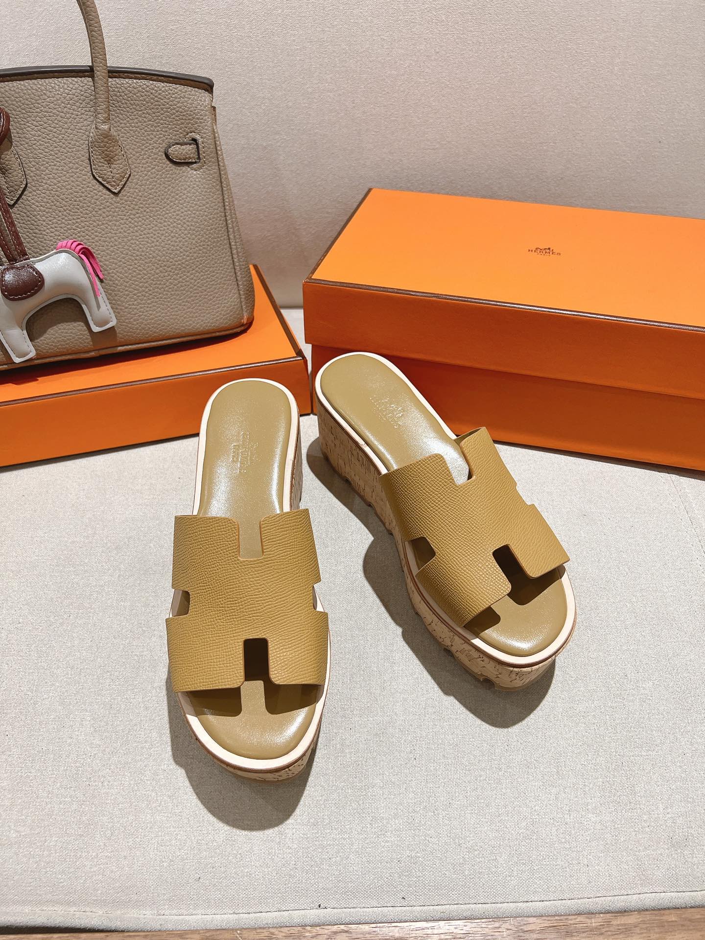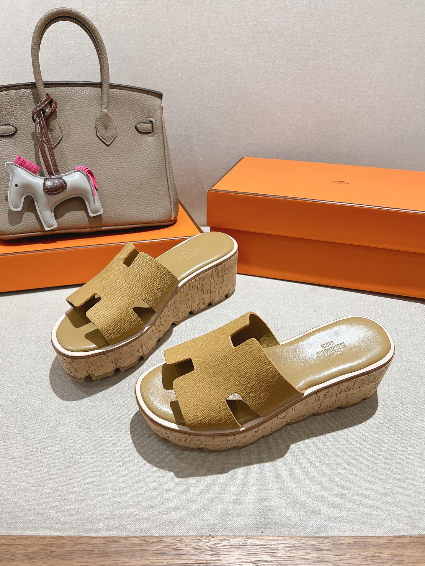 HM 25S HIGH WEDGE SANDALS IN LIGHT BROWN LAMBSKIN STYLE 2